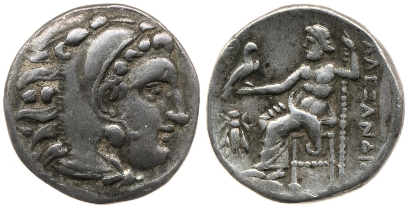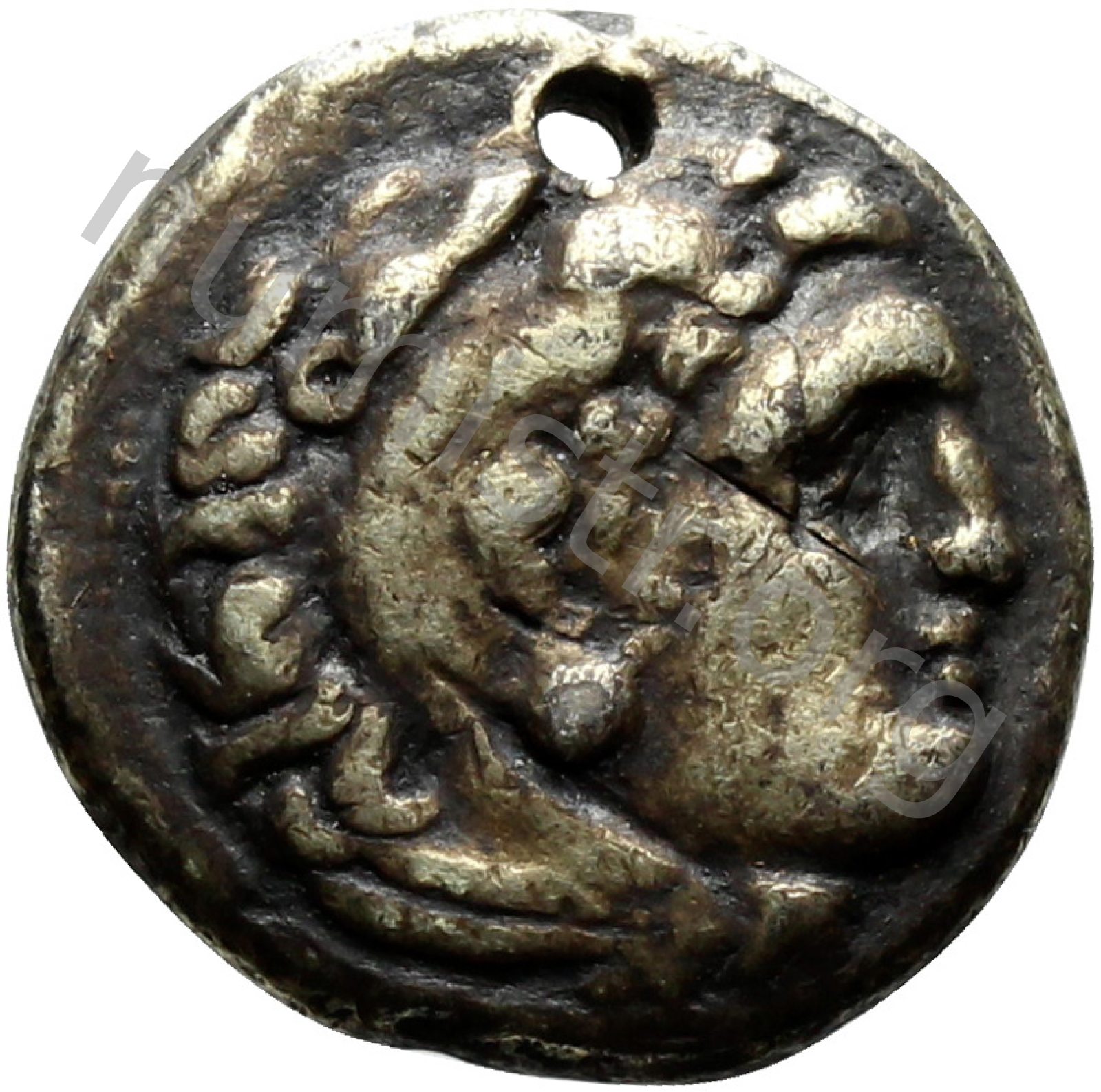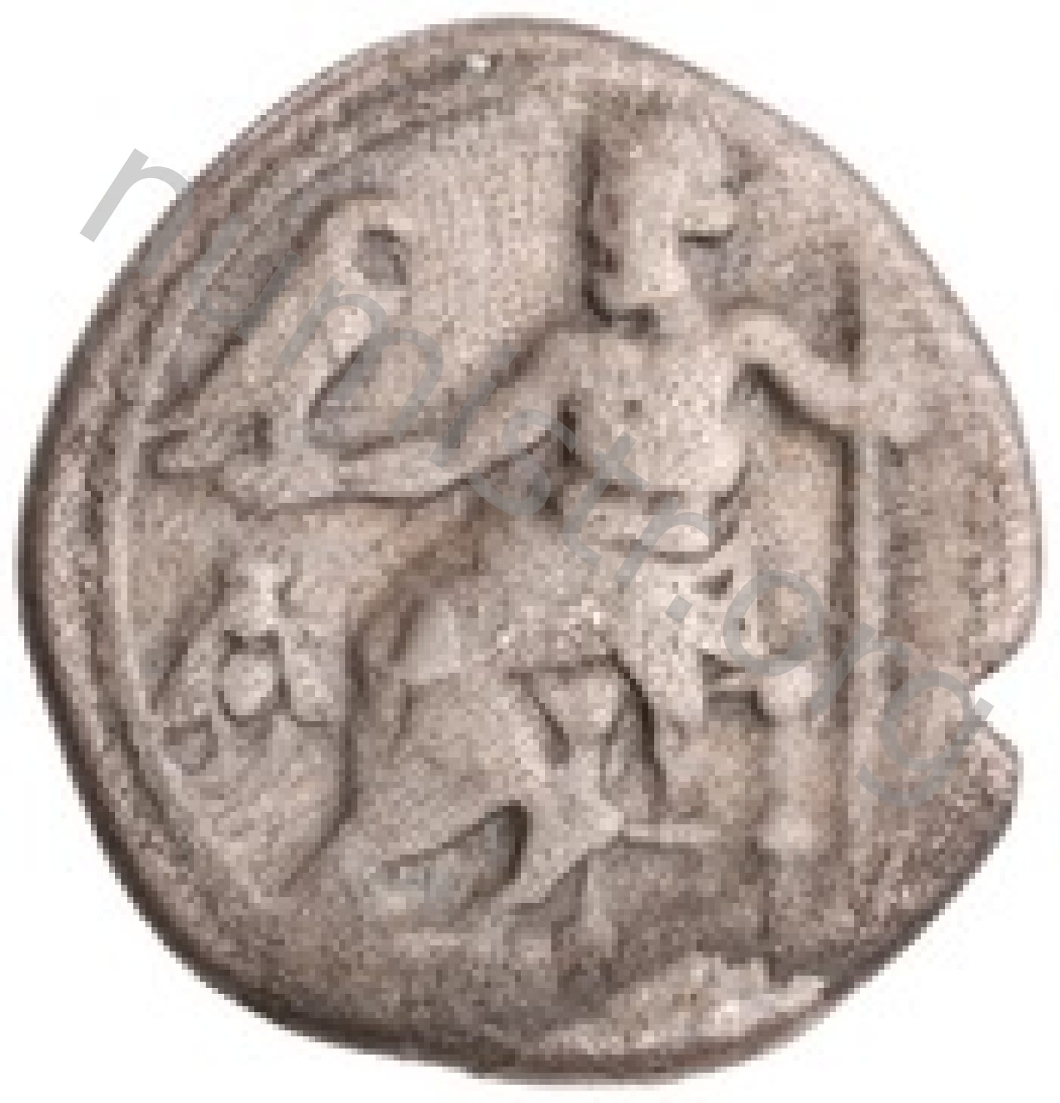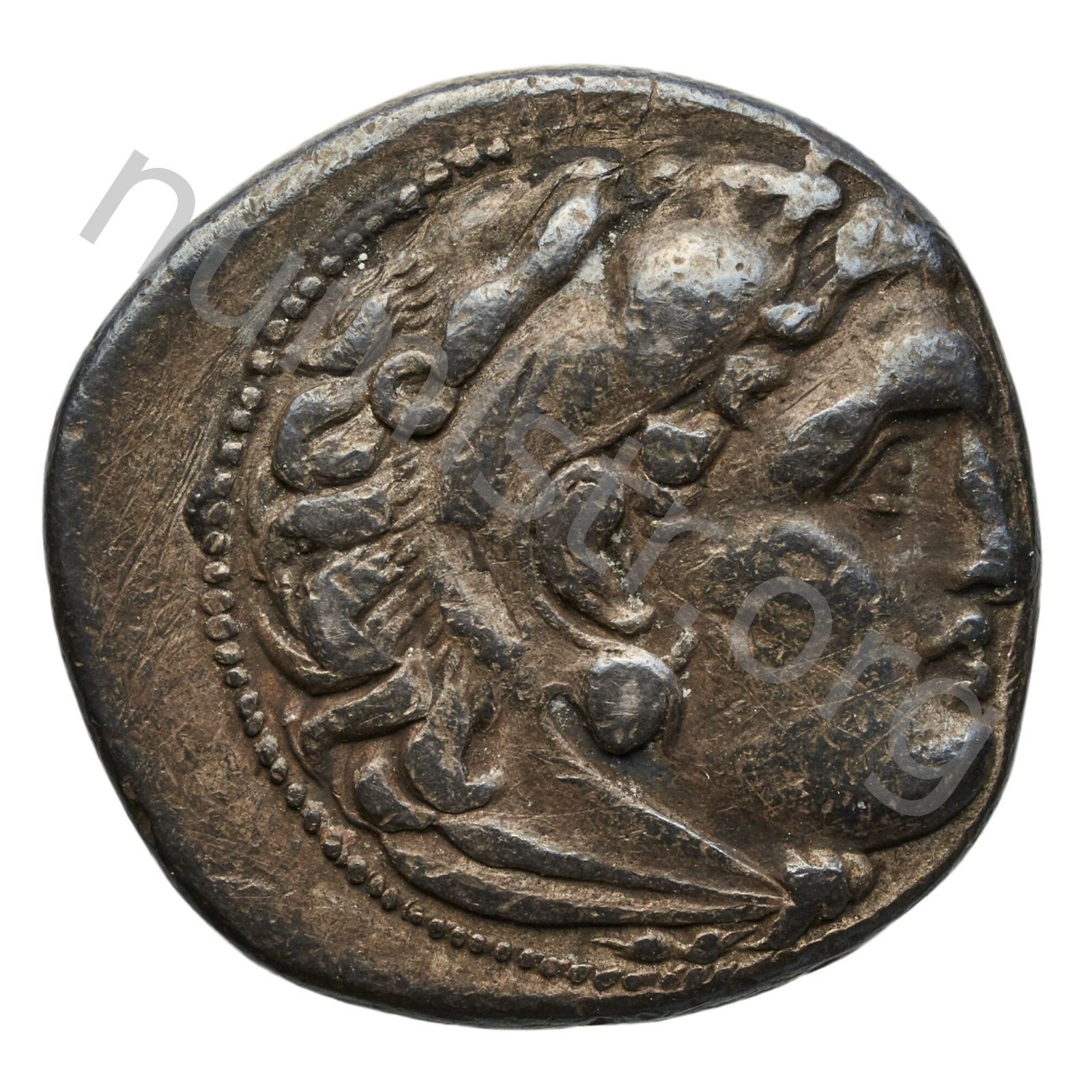 Head of beardless Heracles right wearing lion skin headdress -[en]
