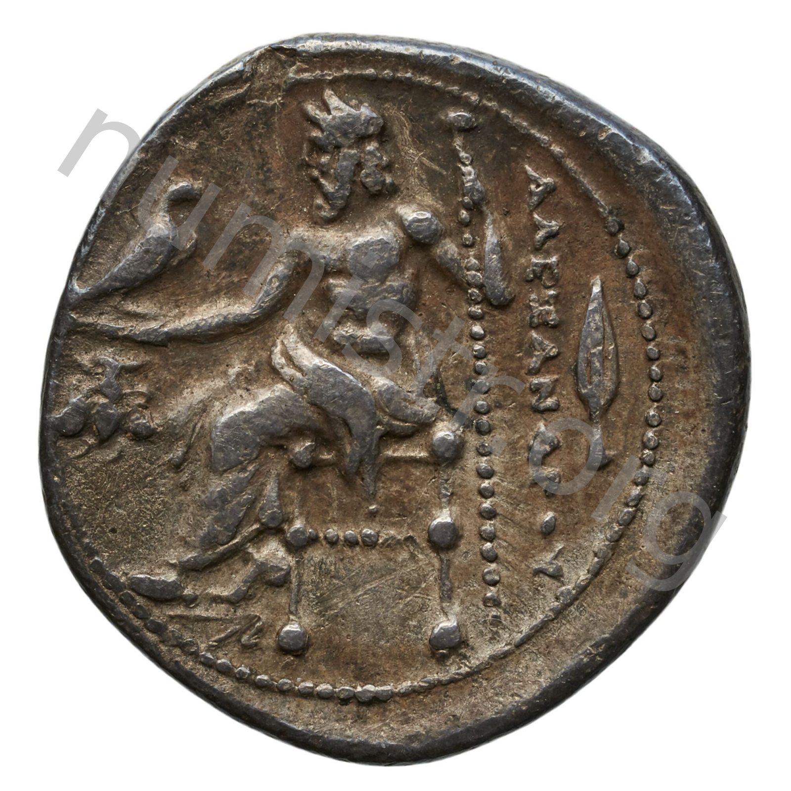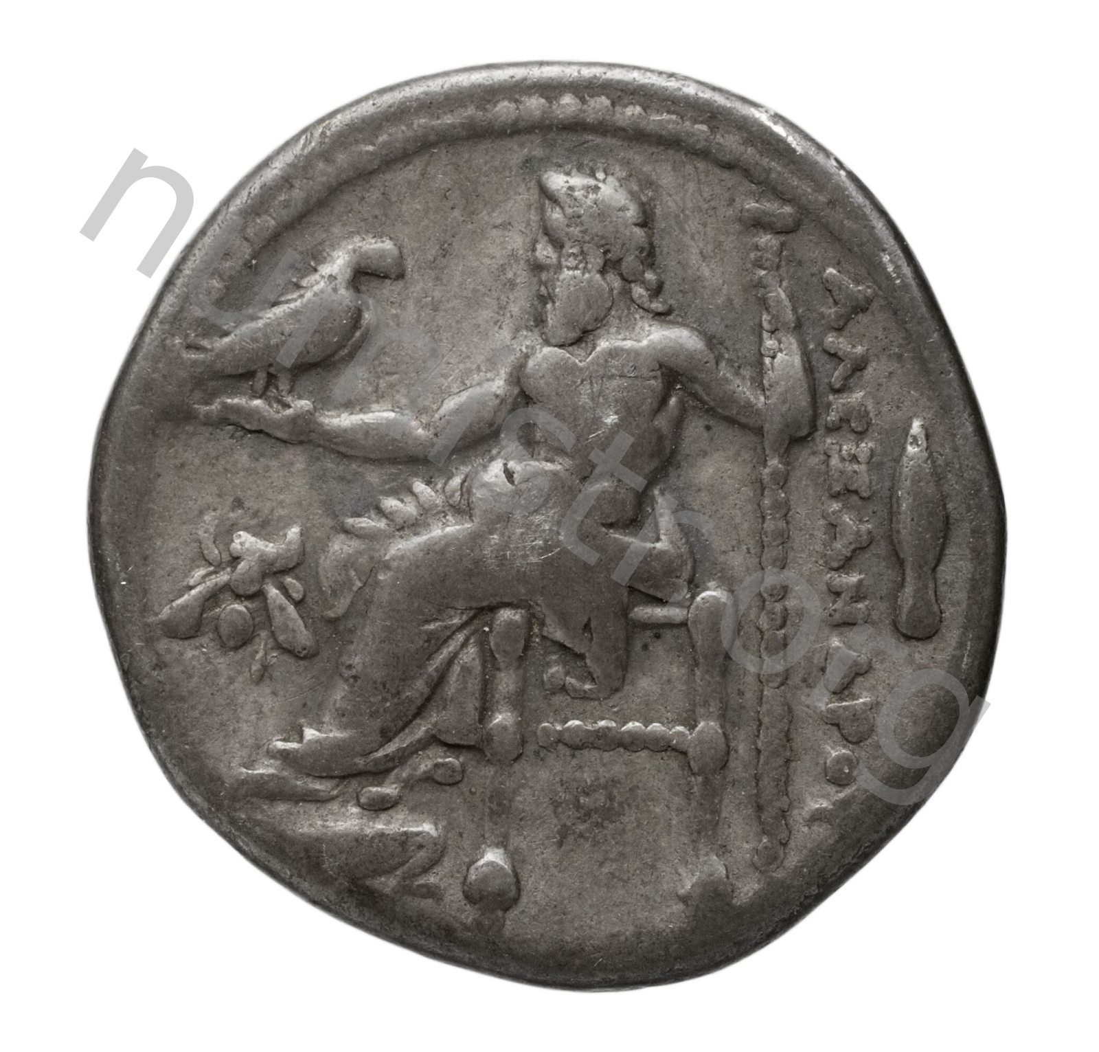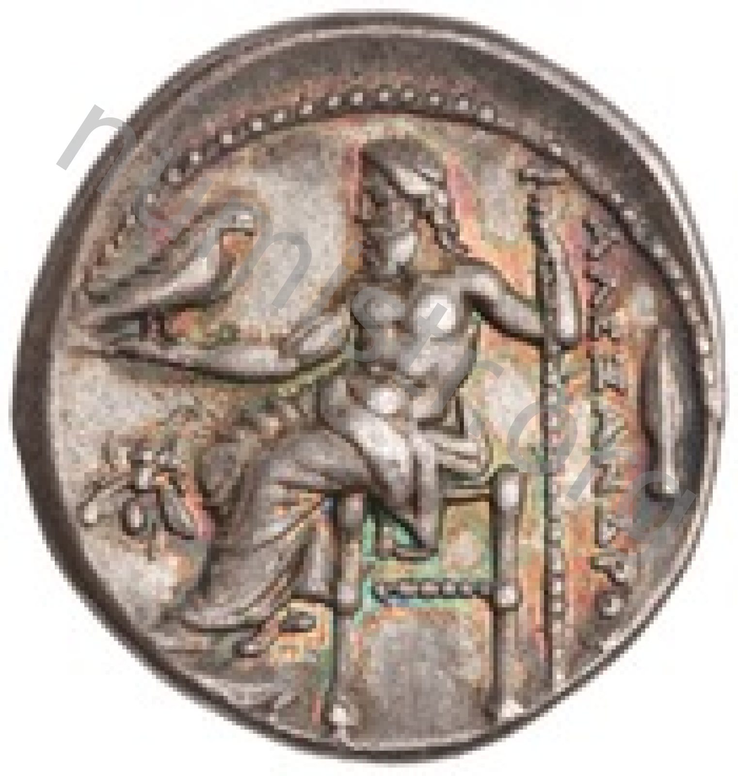 Zeus tabure-tahtta oturuyor sol elinde kartal sağ elinde asa var.