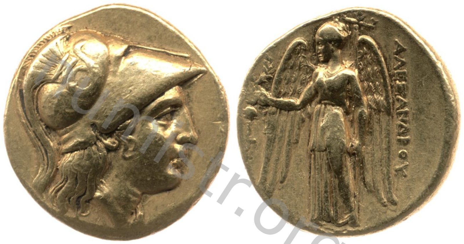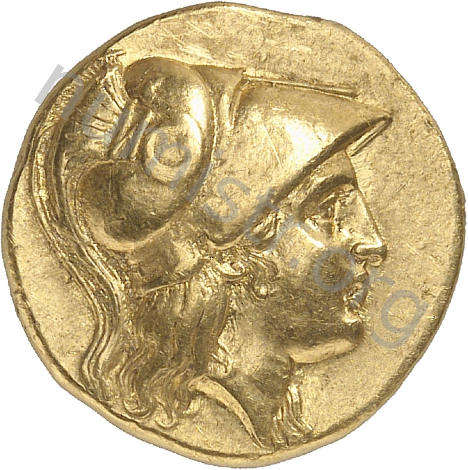 Head of Athena right wearing Corinthian helmet with crest -[en]