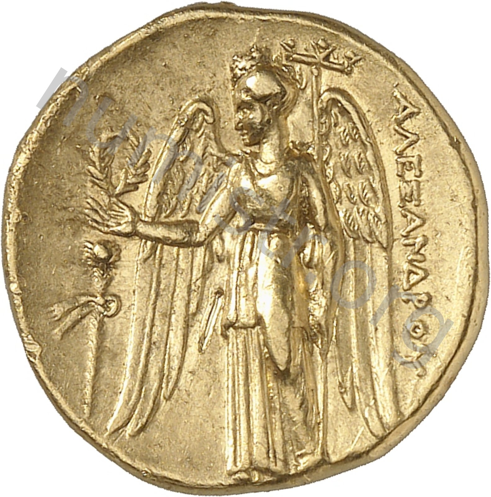 Nike standing left holding wreath in right hand and stylis in her left hand -[en]