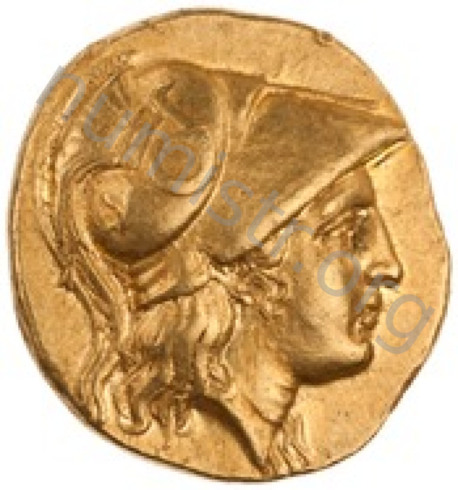 Sağda armalı Korint miğferi takan Athena başı