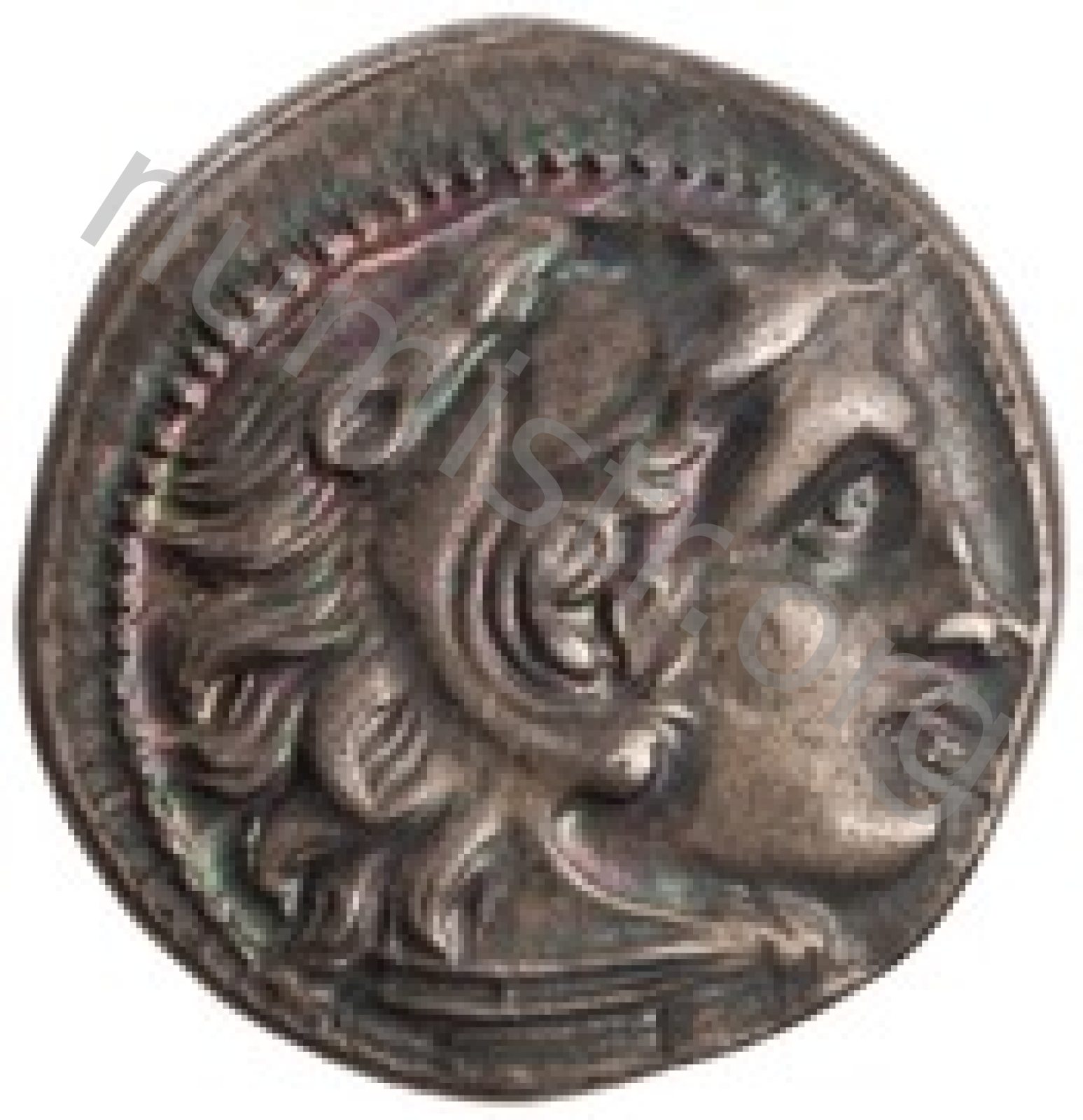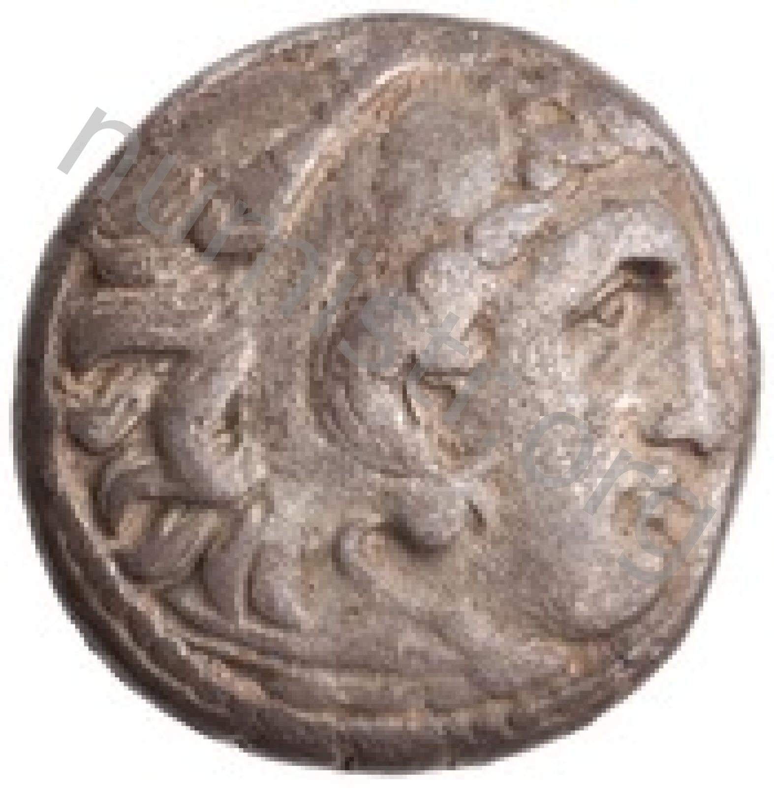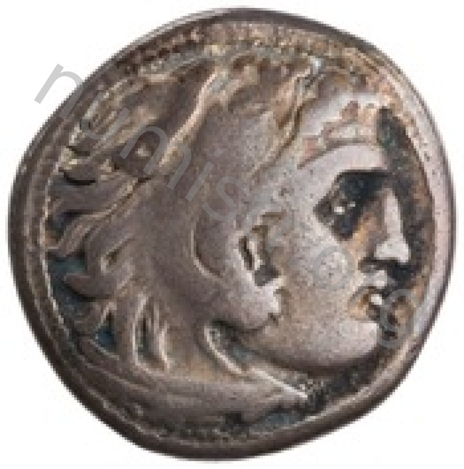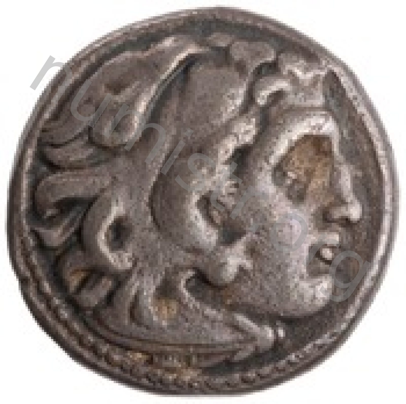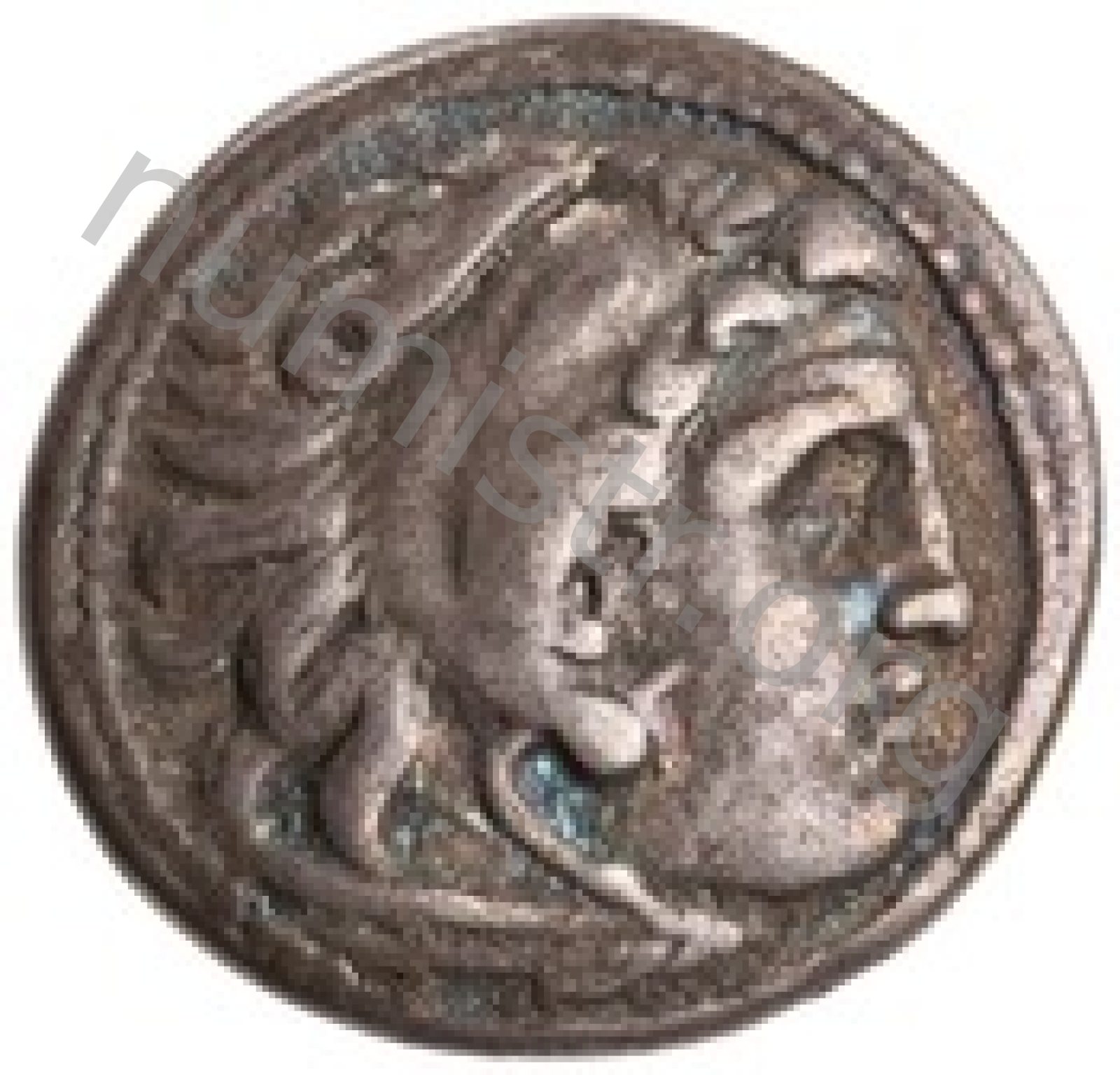 Head of beardless Heracles right wearing lion skin headdress -[en]