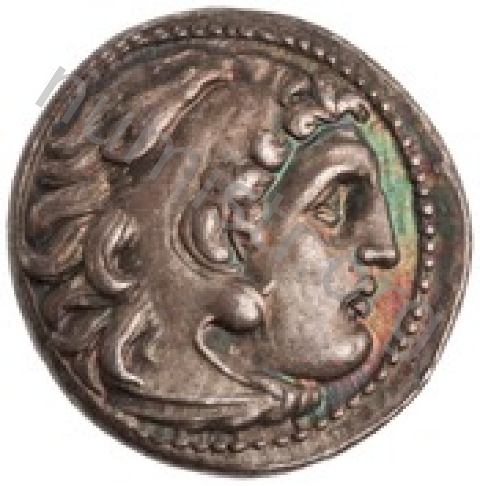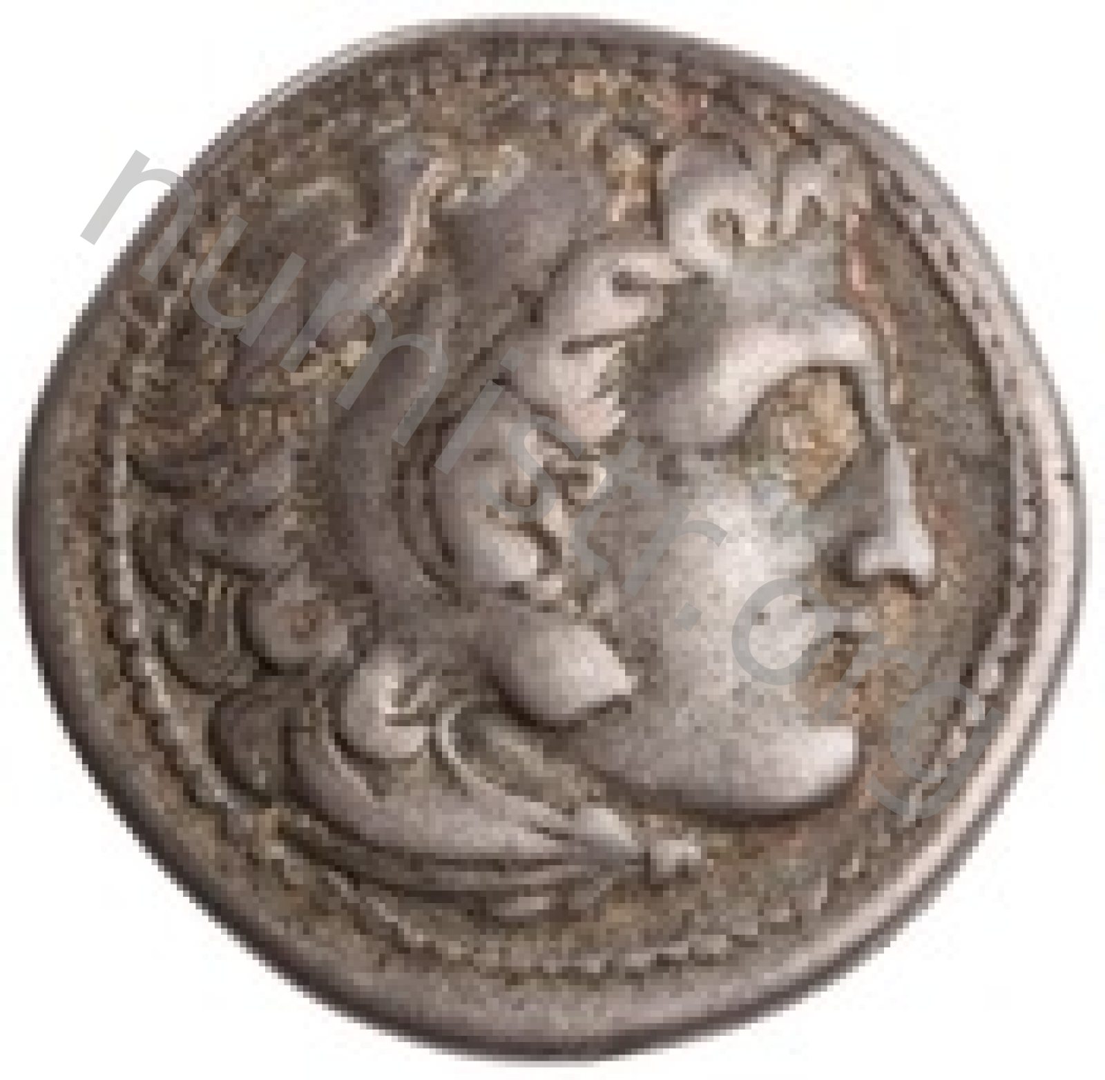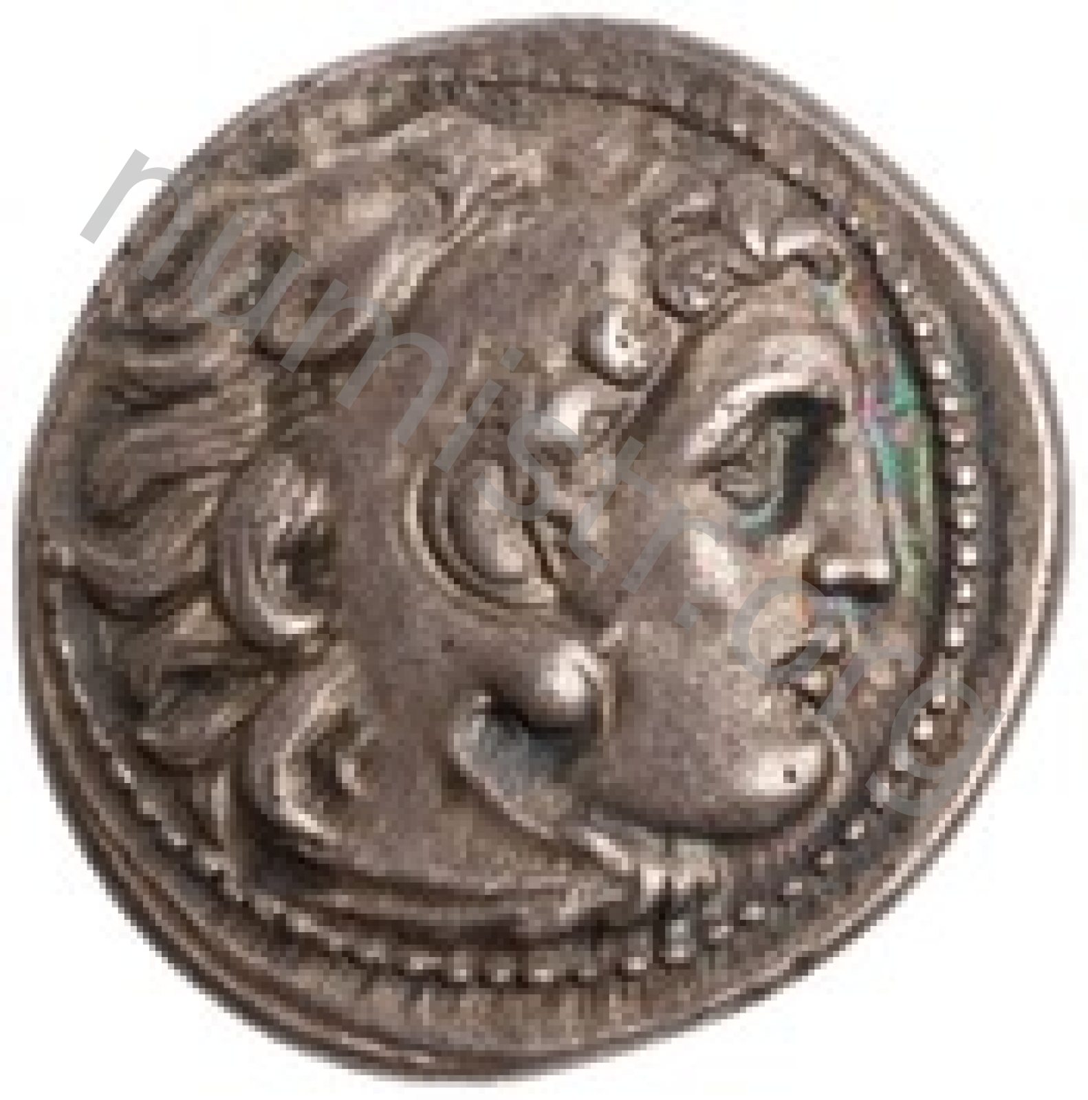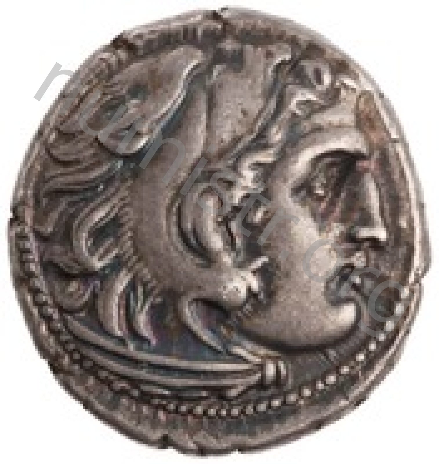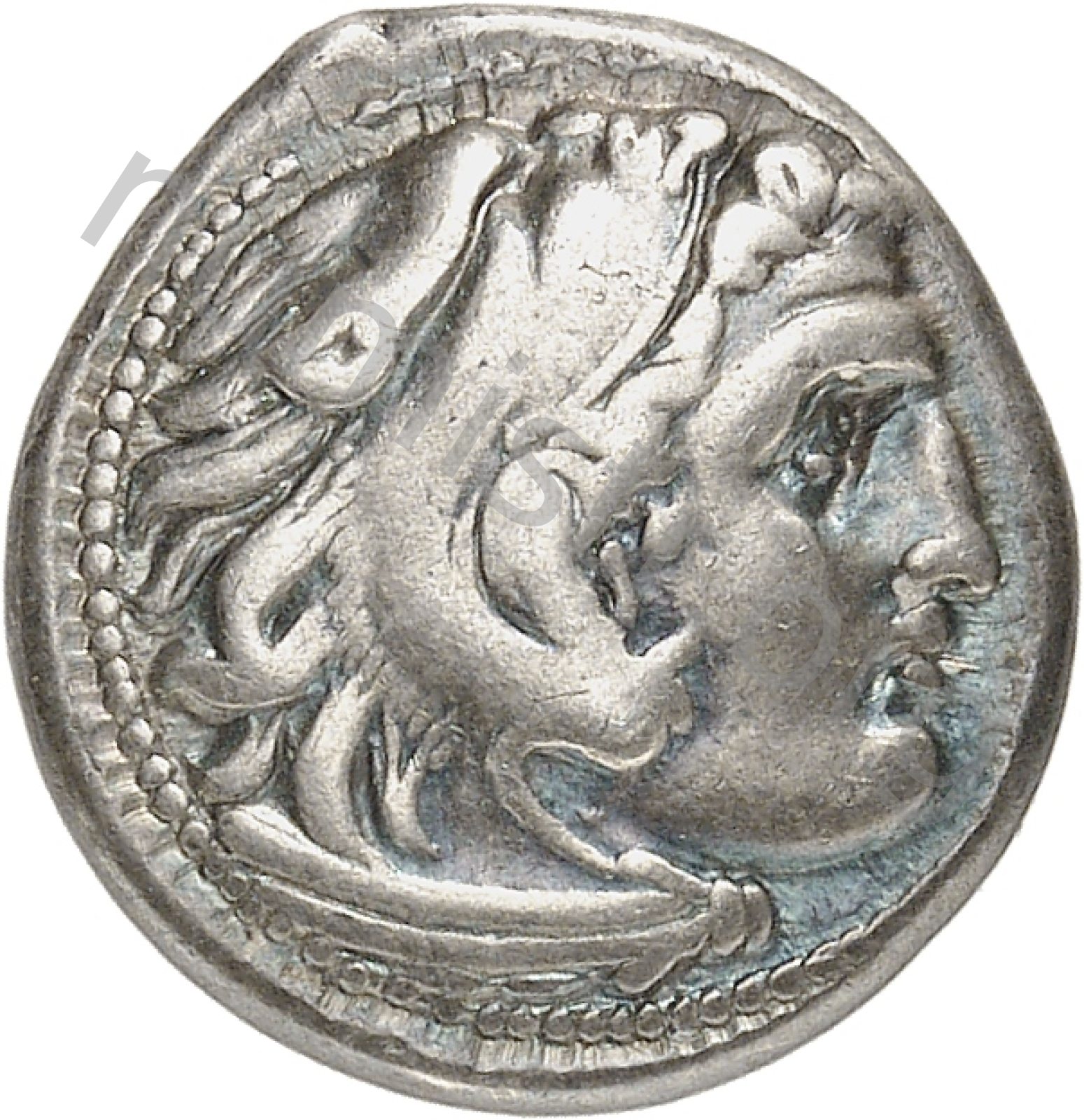 Head of beardless Heracles right wearing lion skin headdress -[en]