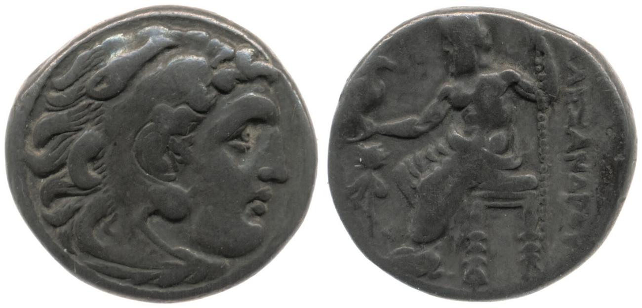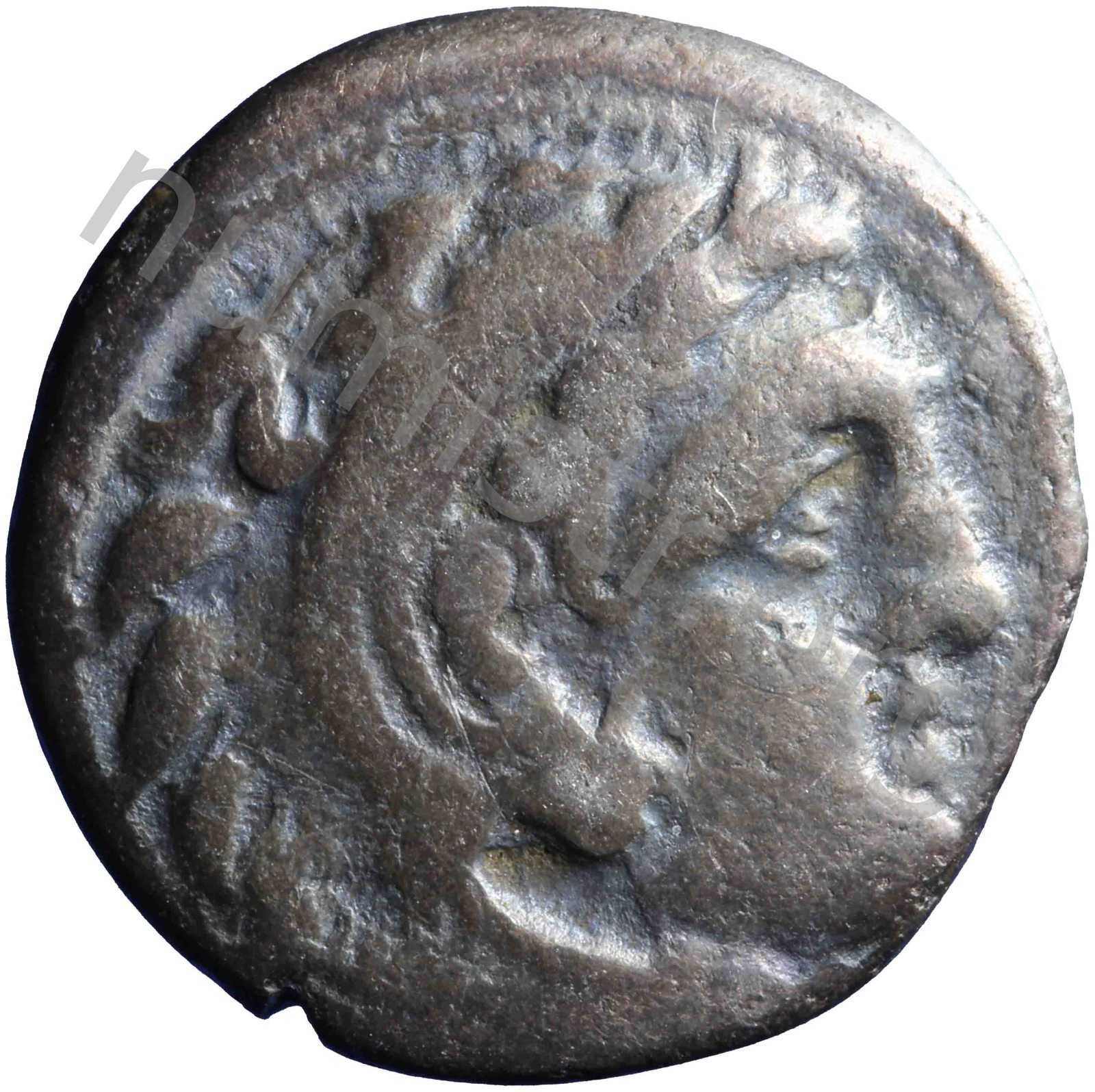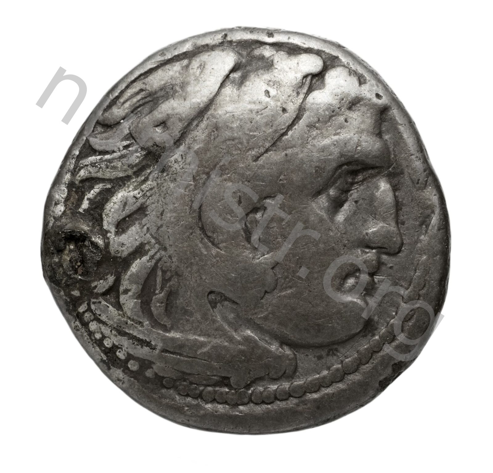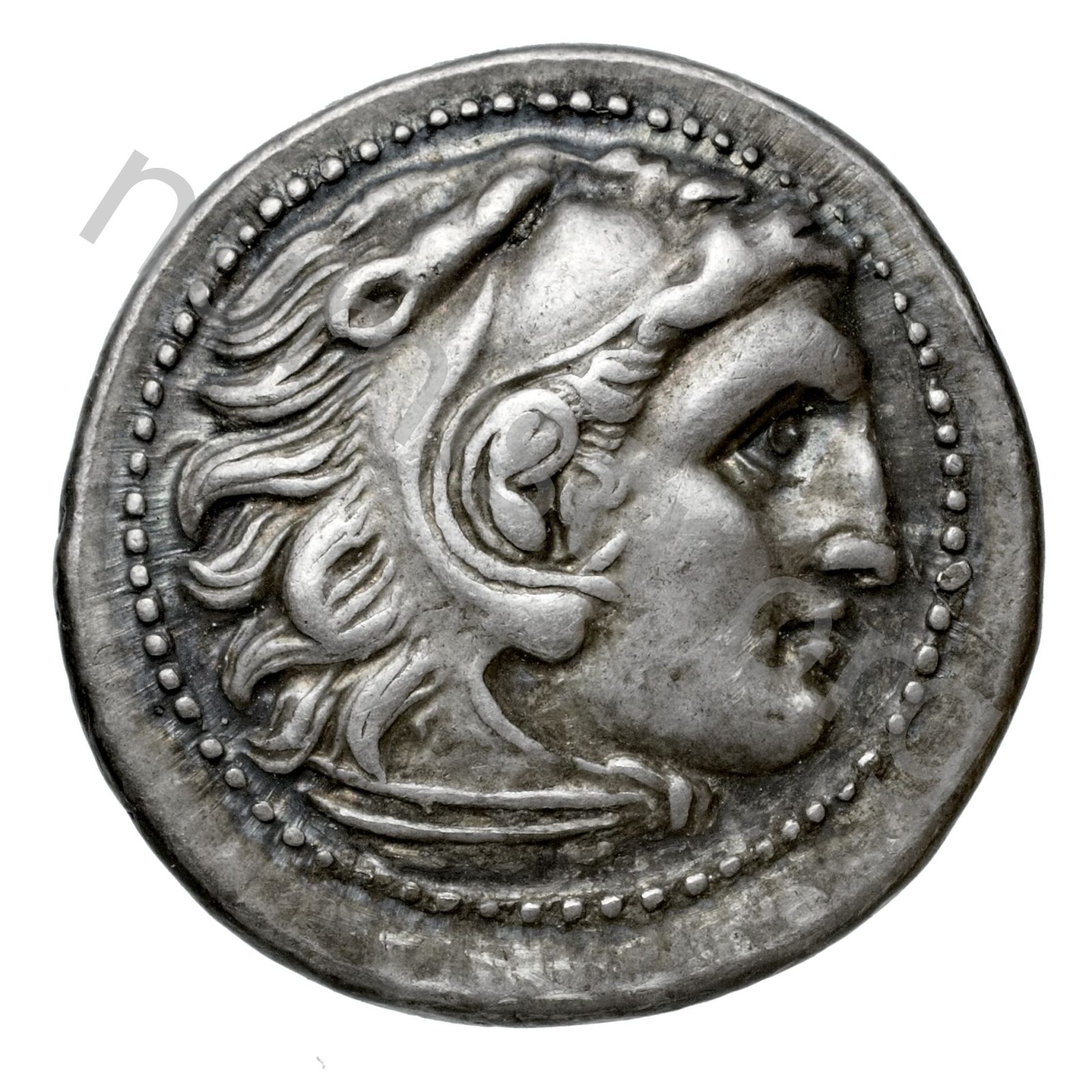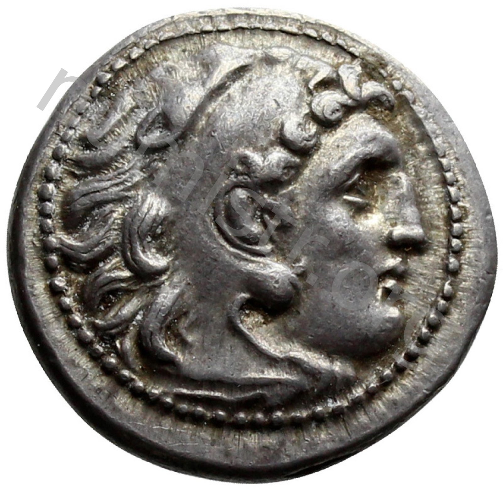 Head of beardless Heracles right wearing lion skin headdress -[en]