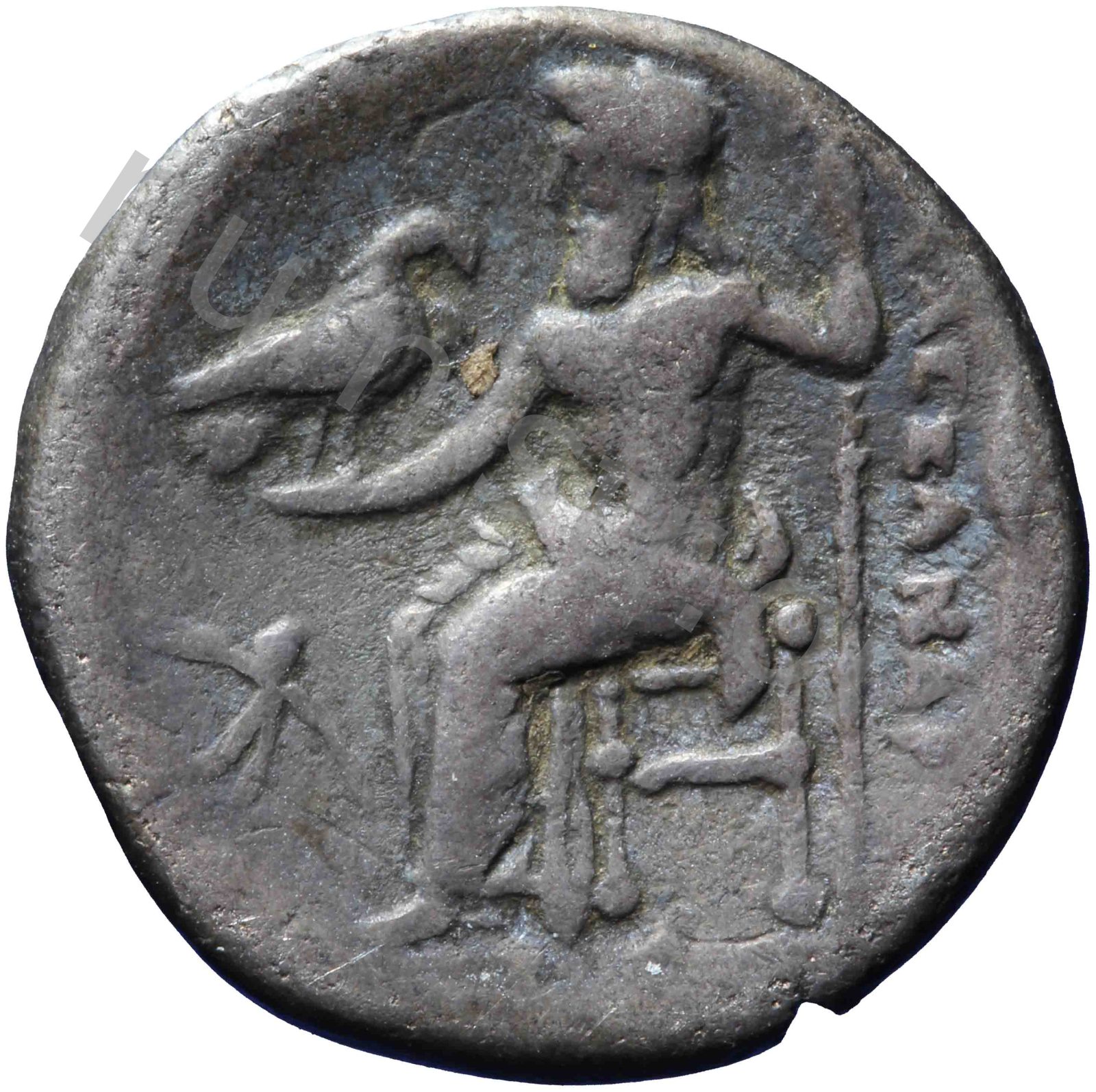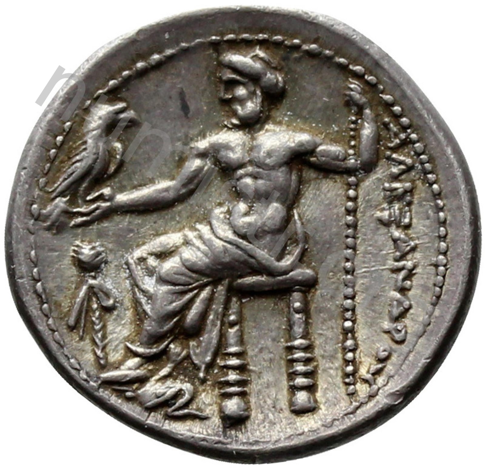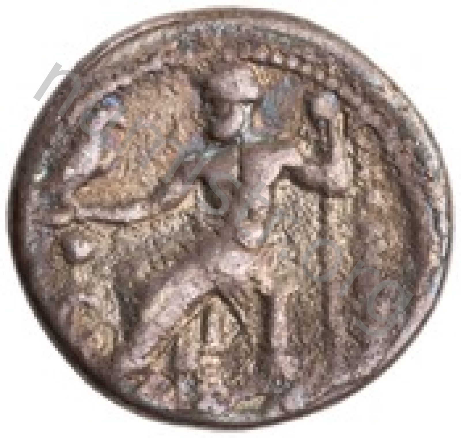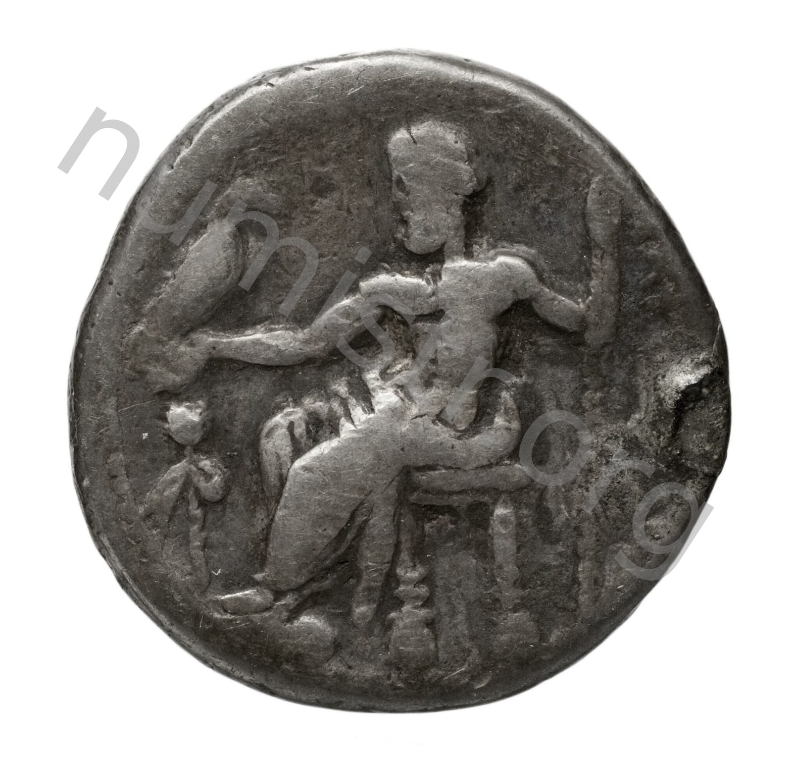 Zeus tabure-tahtta oturuyor sol elinde kartal sağ elinde asa var.