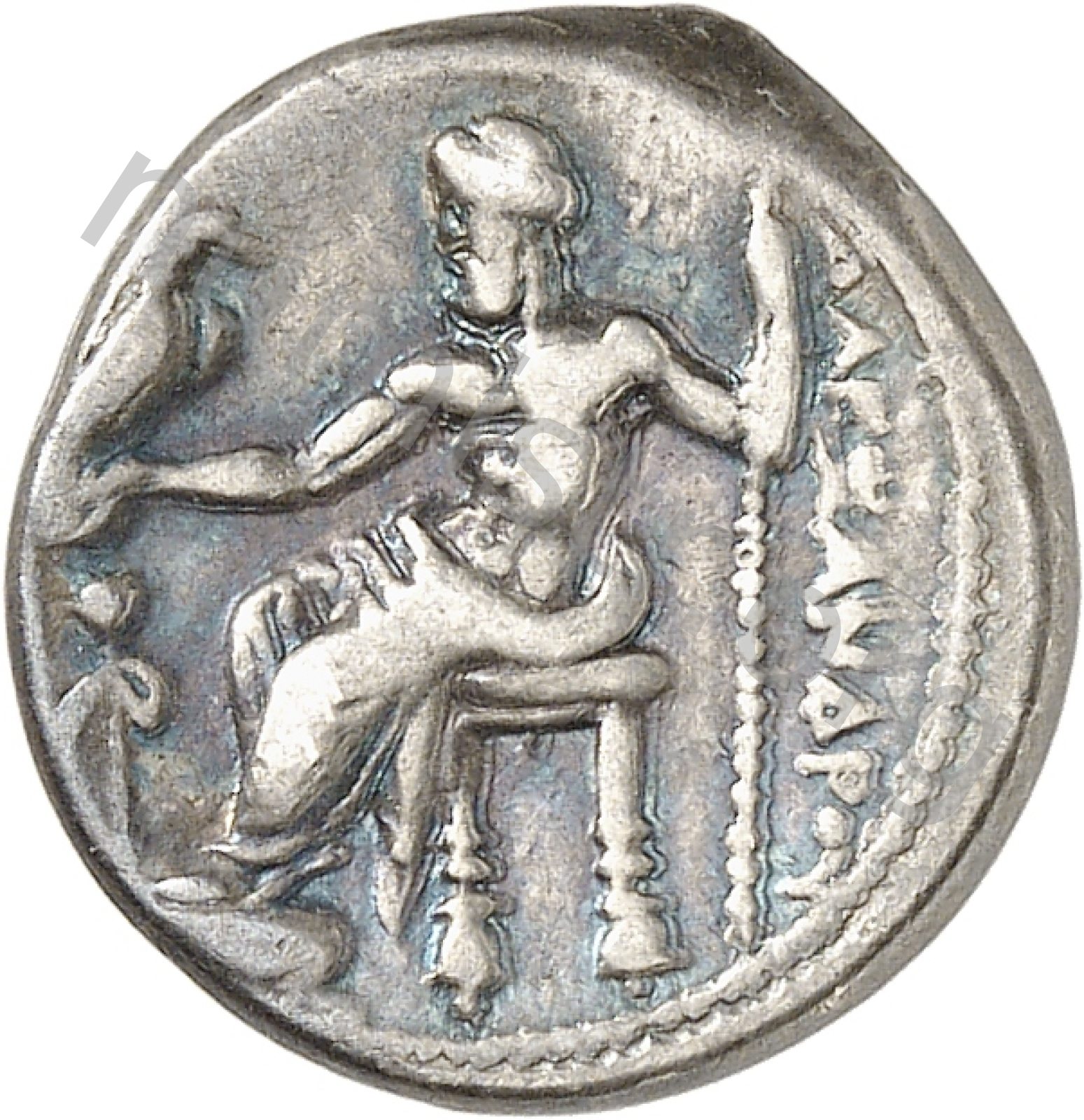 Zeus seated on stool-throne left eagle on outstretched right hand sceptre in left hand -[en]
