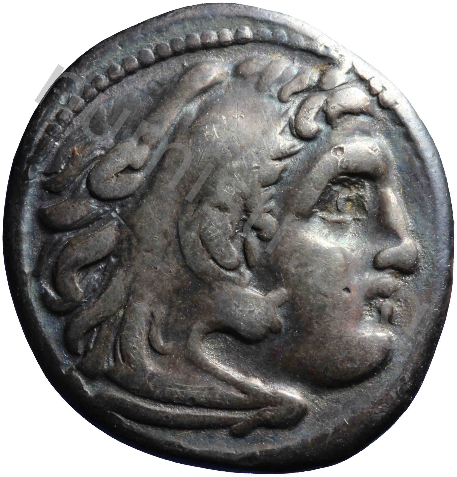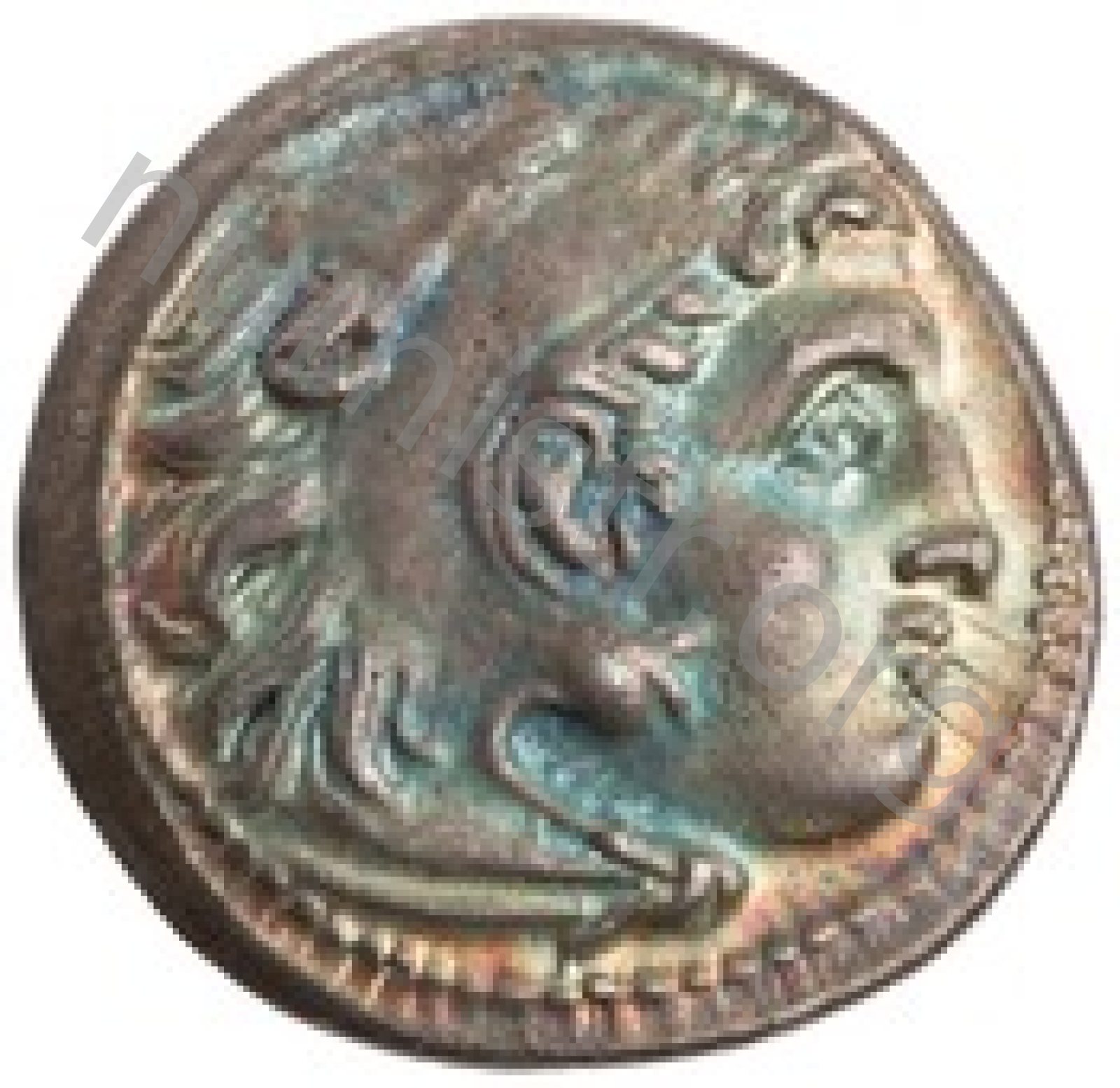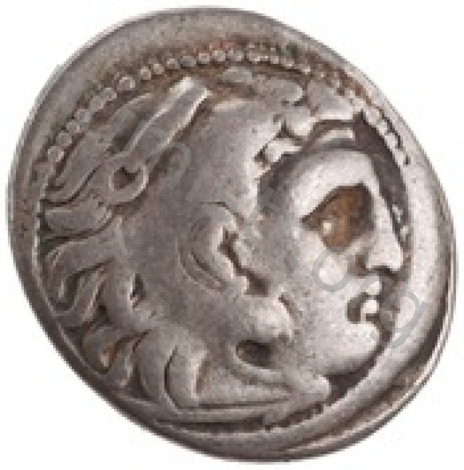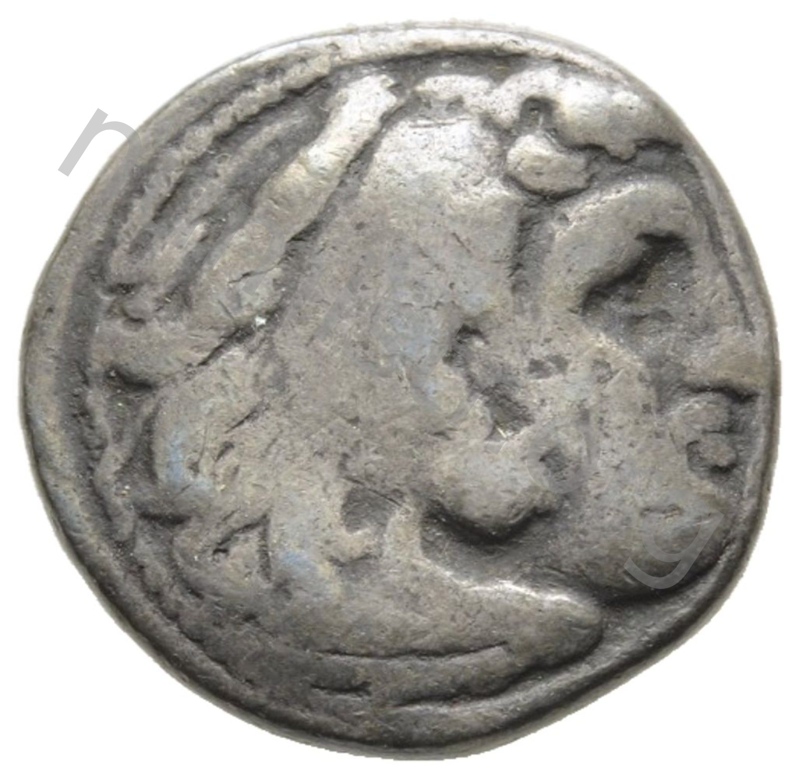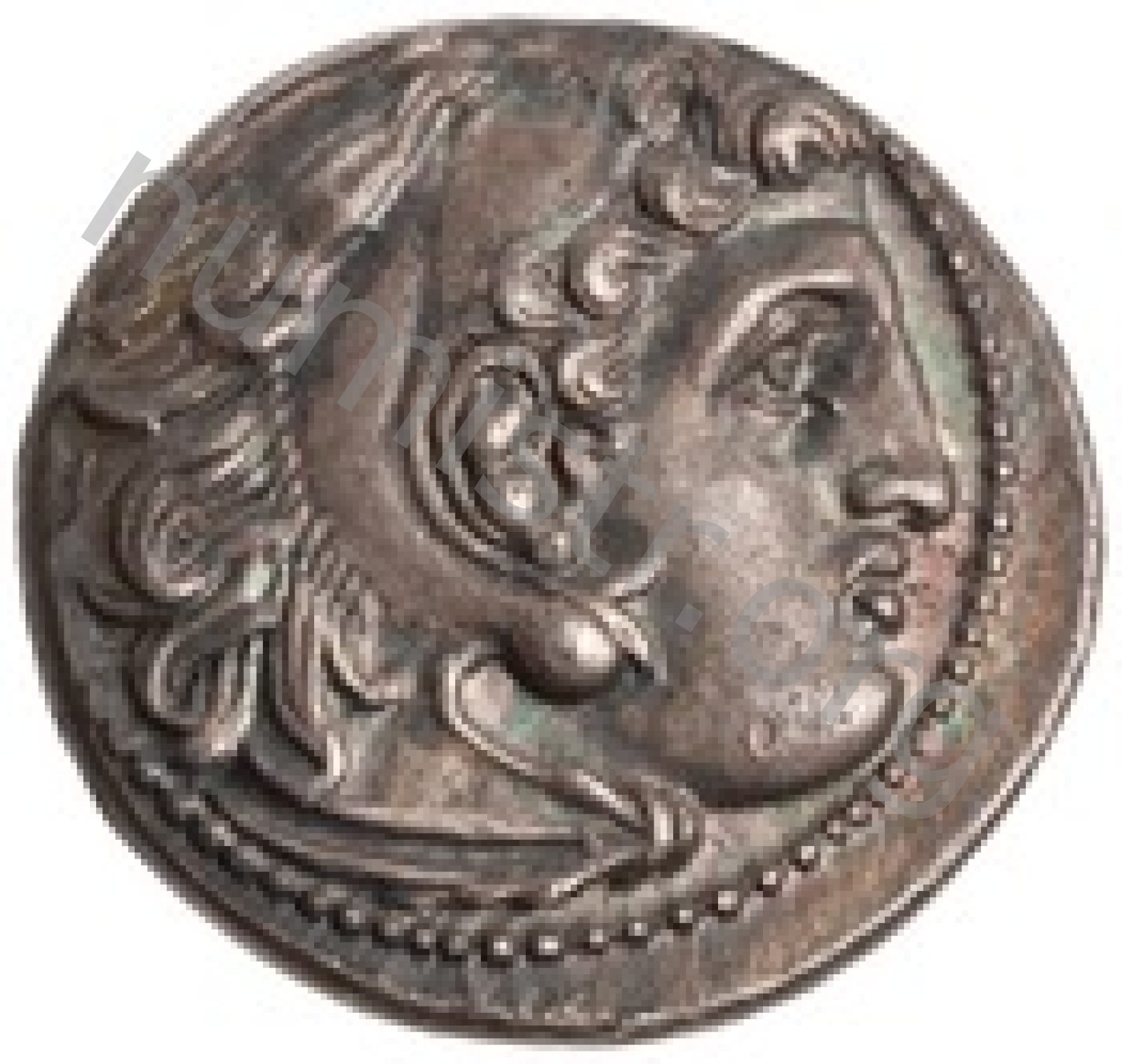 Head of beardless Heracles right wearing lion skin headdress -[en]