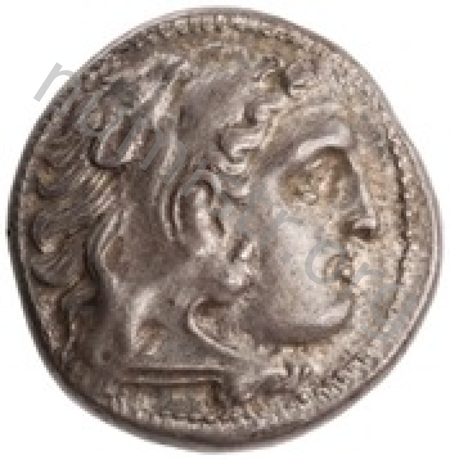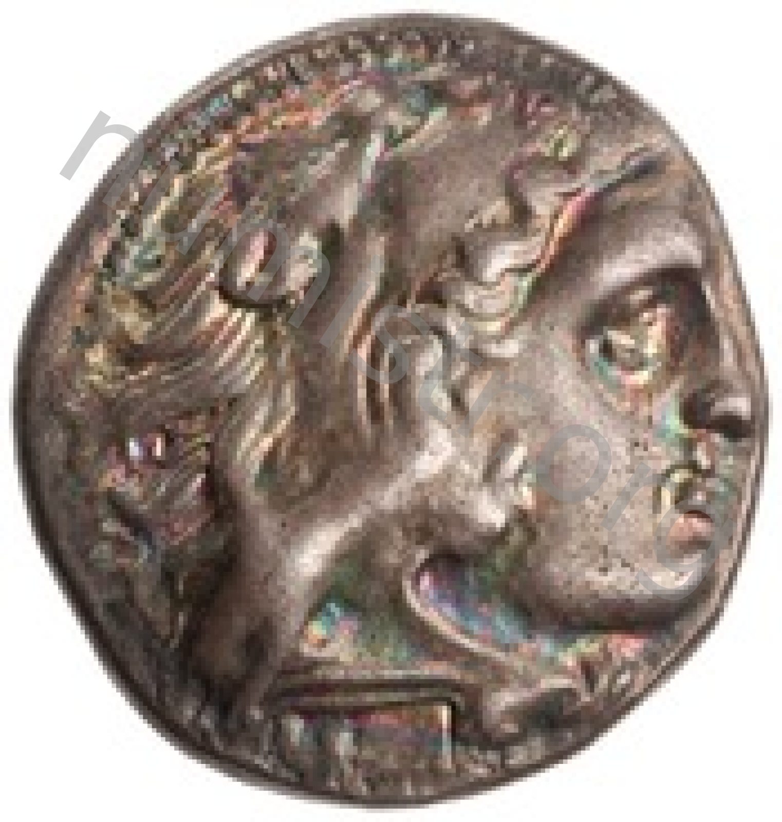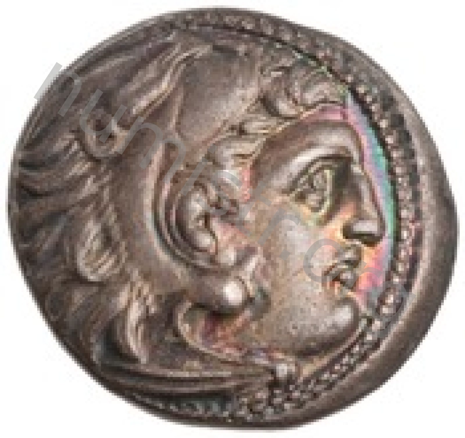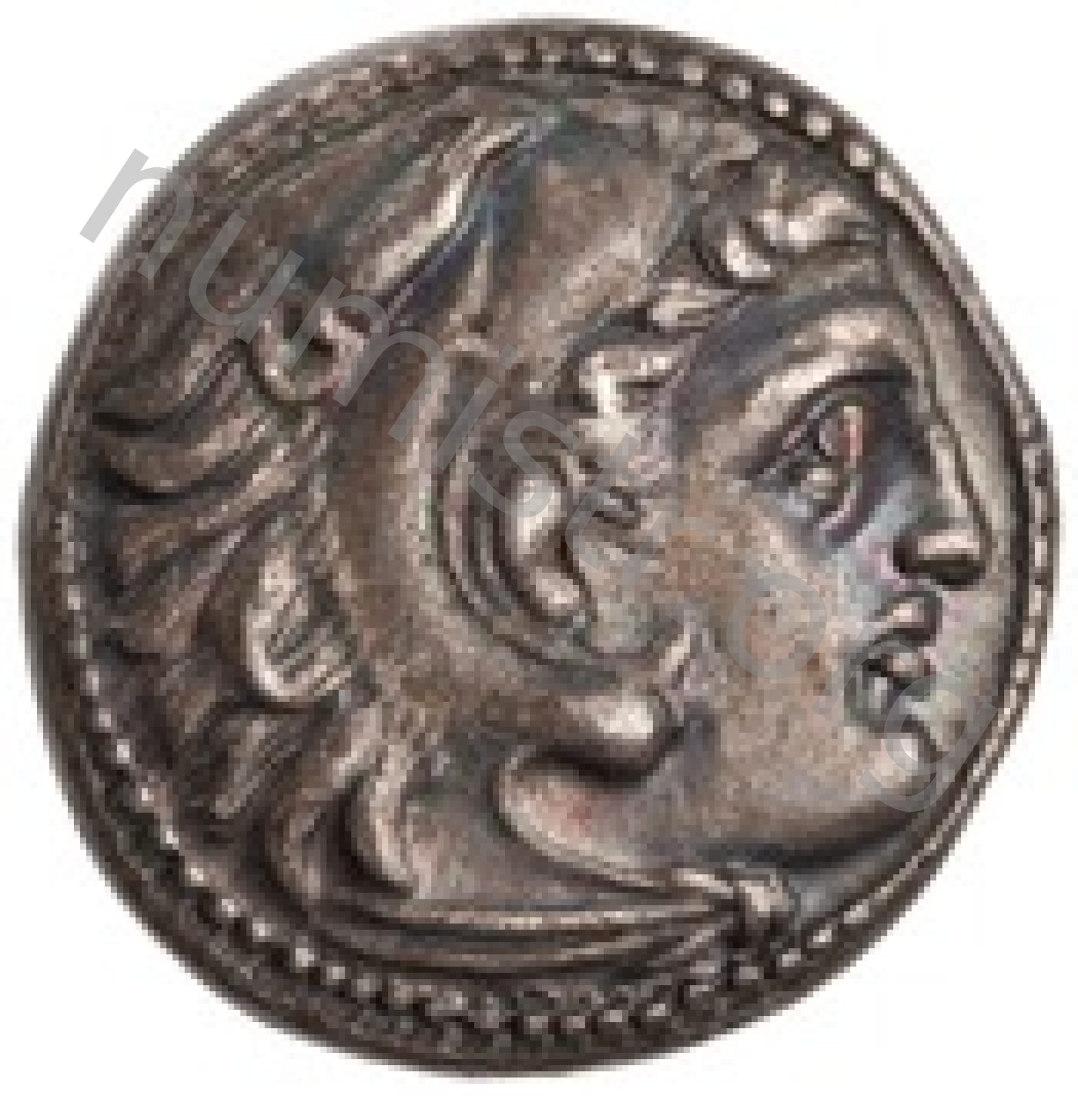 Head of beardless Heracles right wearing lion skin headdress -[en]