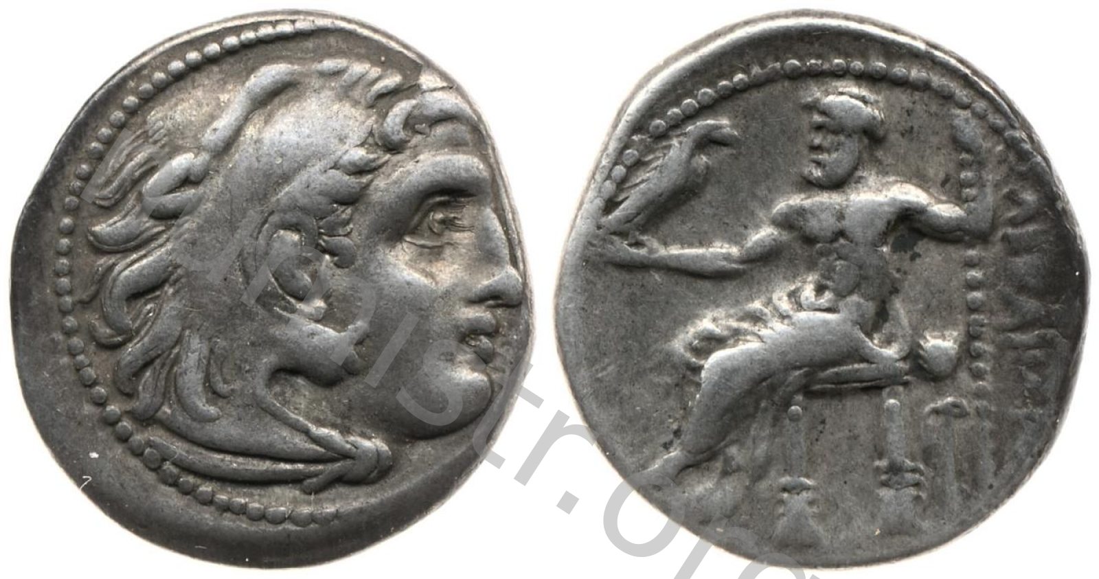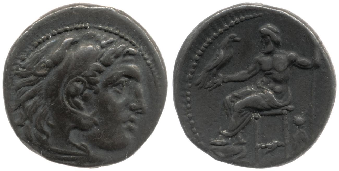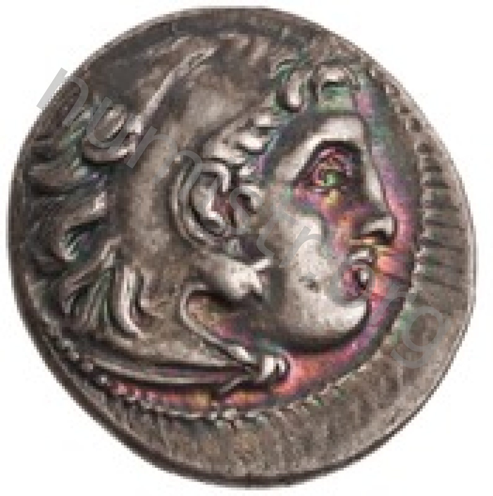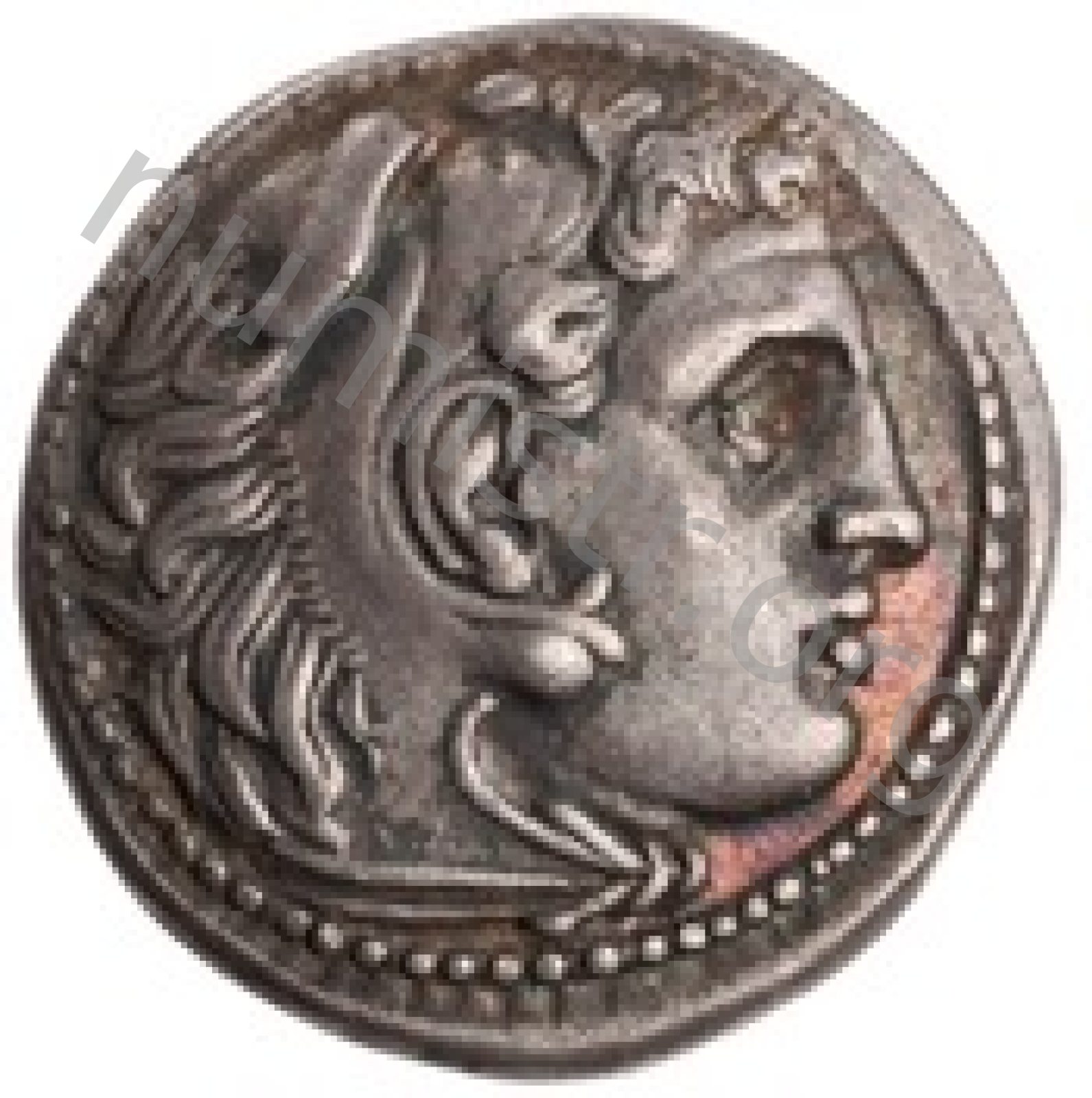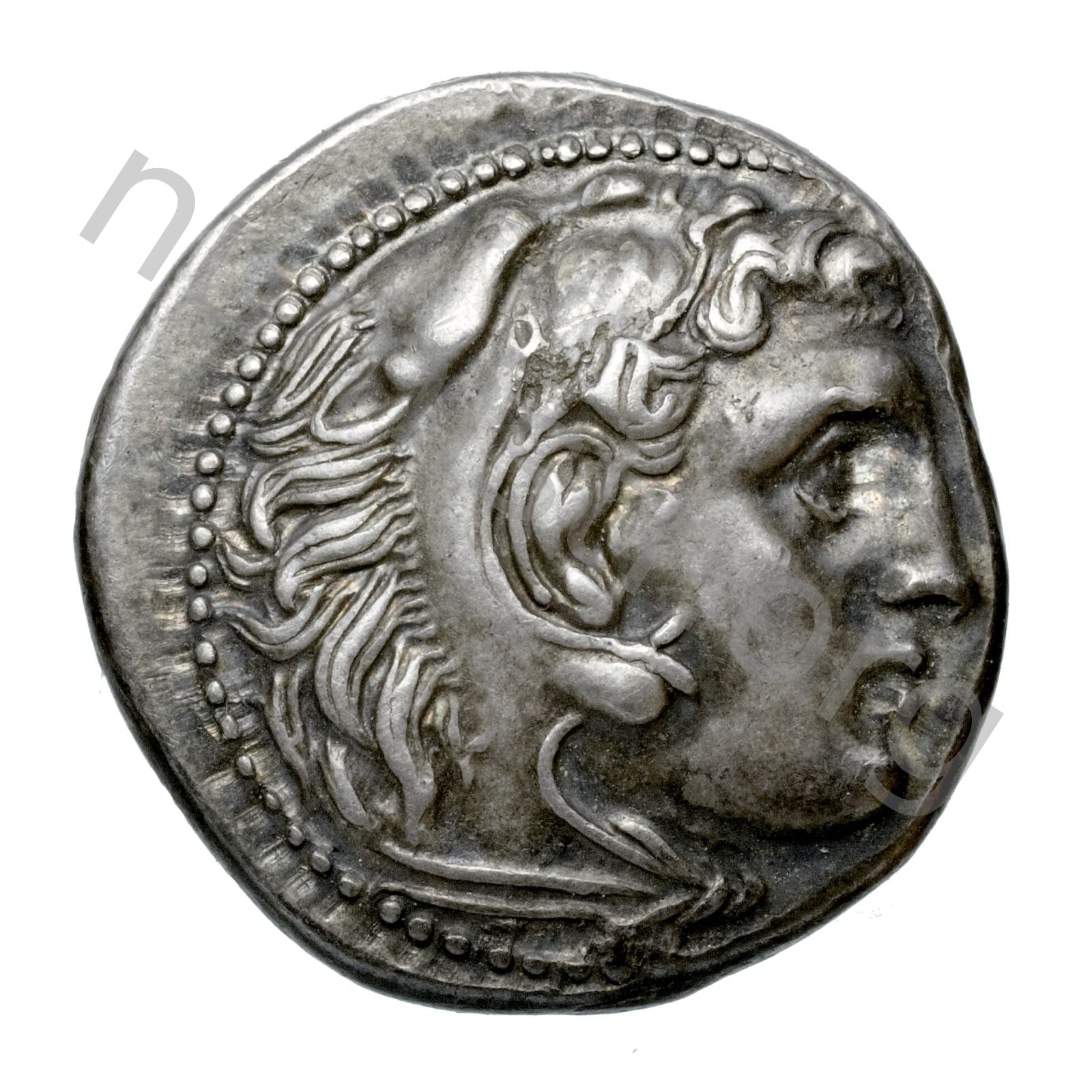 Head of beardless Heracles right wearing lion skin headdress -[en]