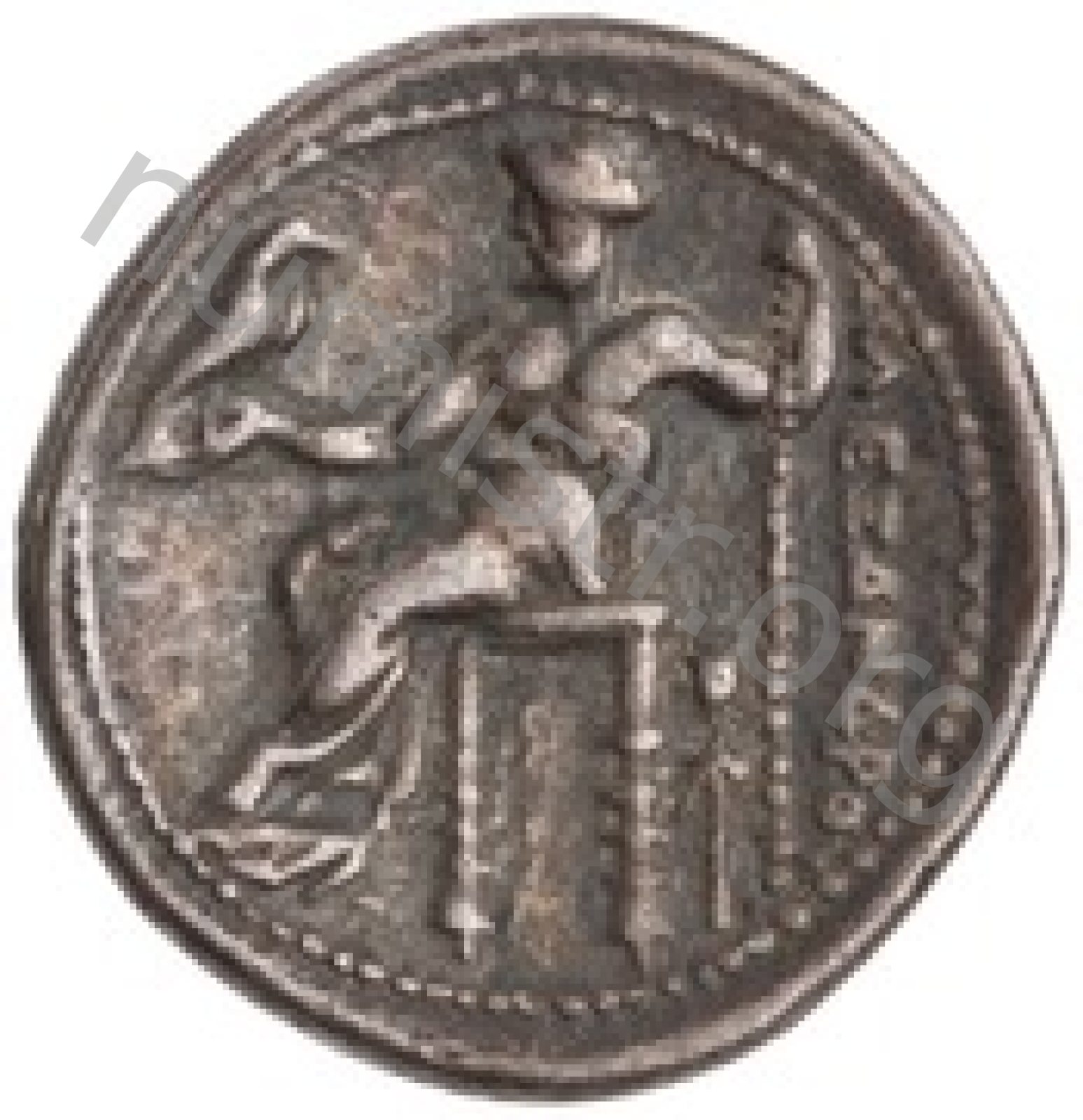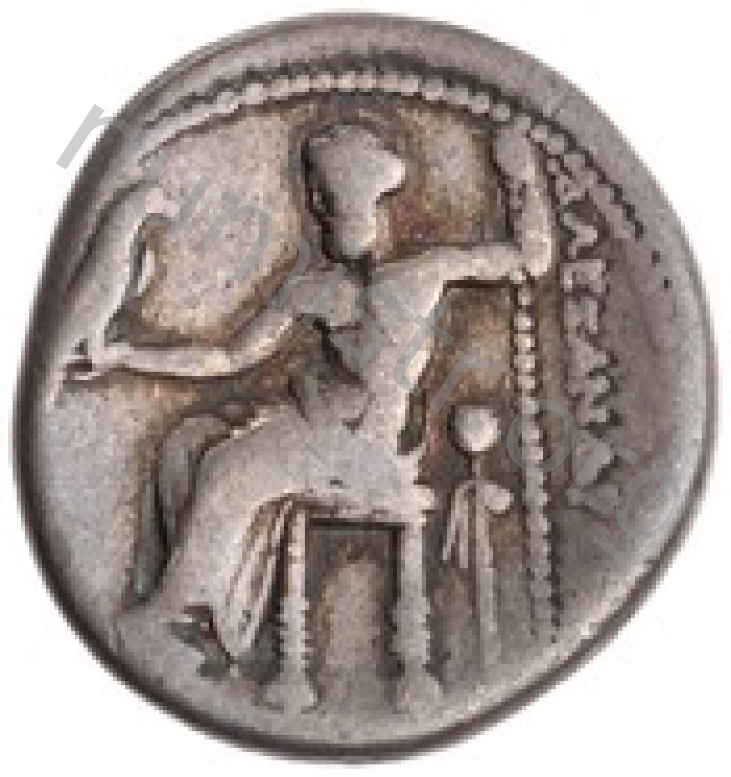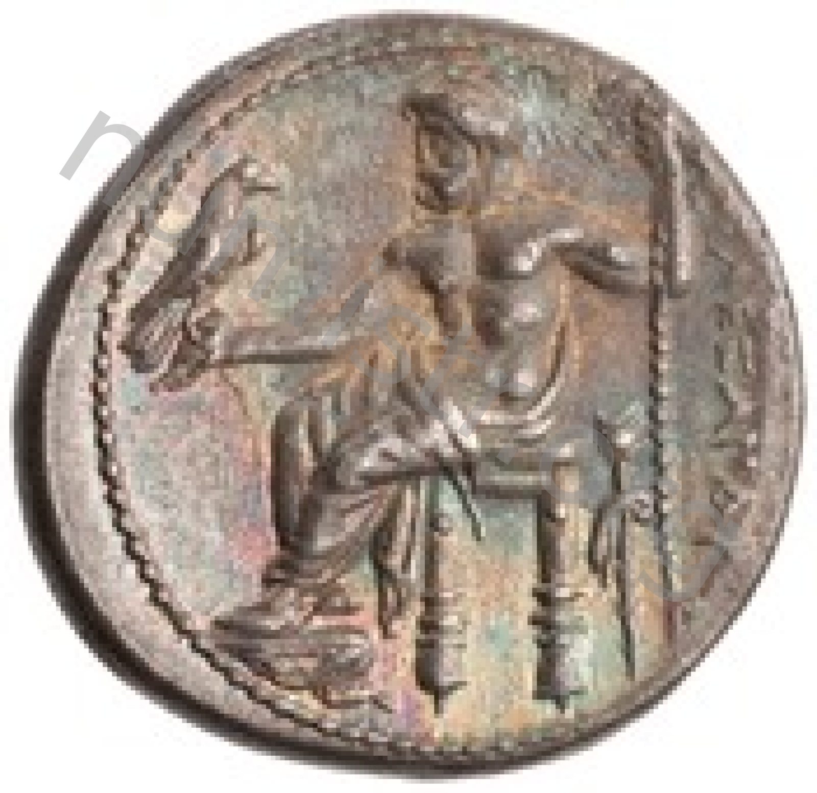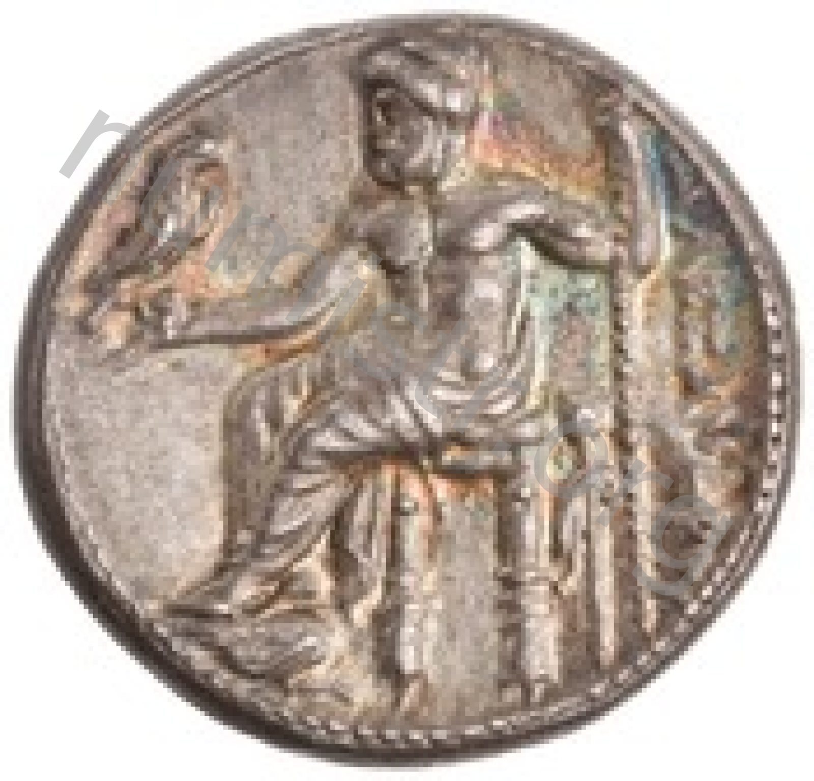 Zeus tabure-tahtta oturuyor sol elinde kartal sağ elinde asa var.