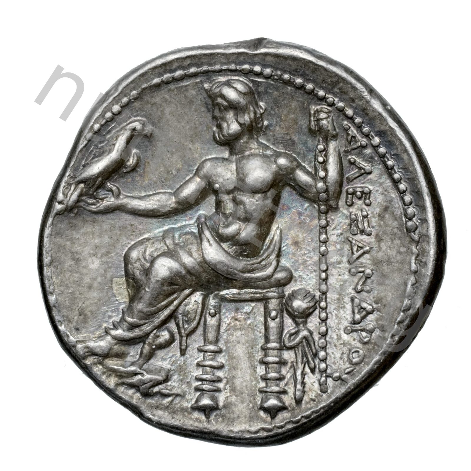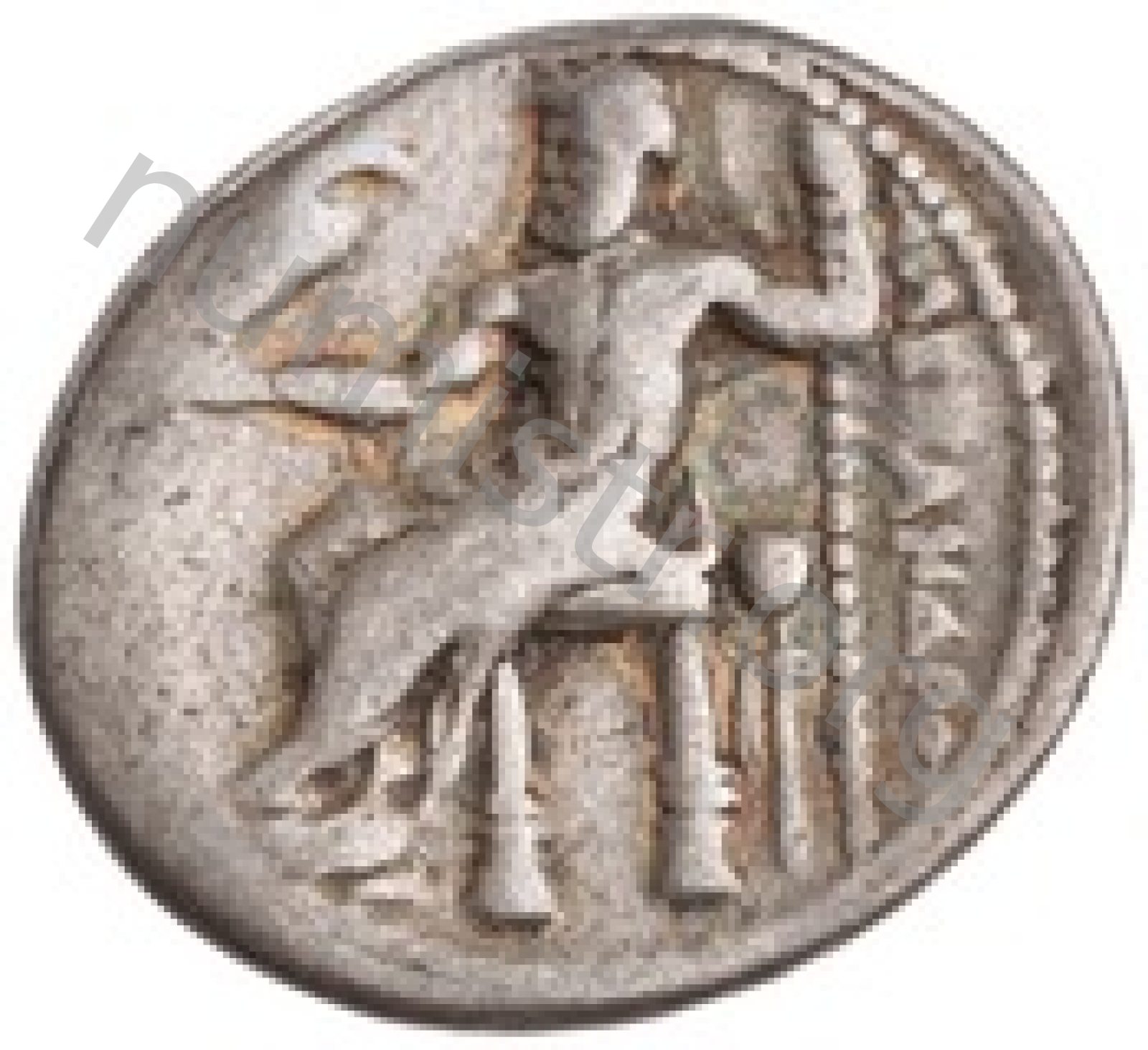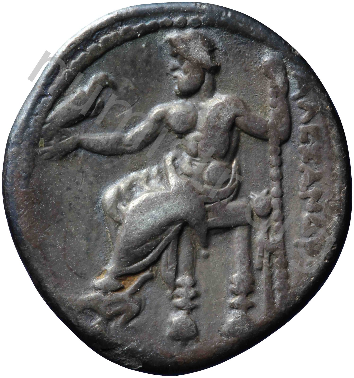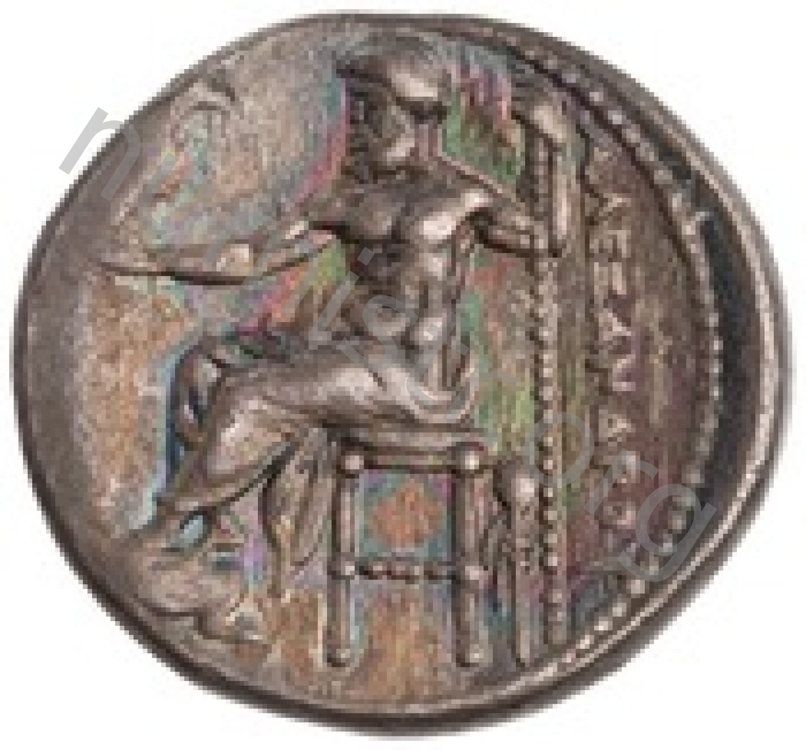 Zeus tabure-tahtta oturuyor sol elinde kartal sağ elinde asa var.