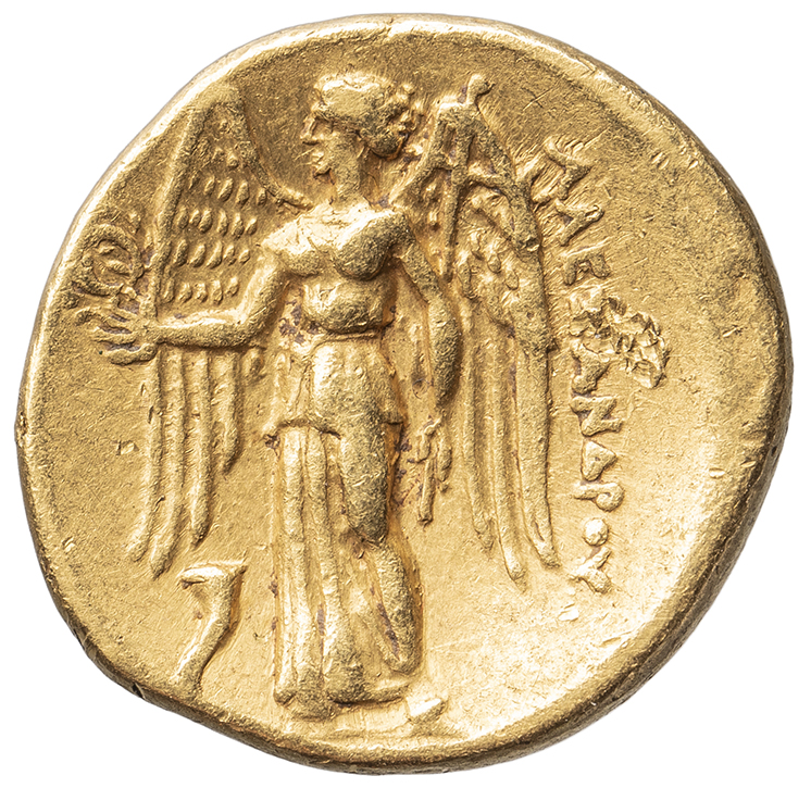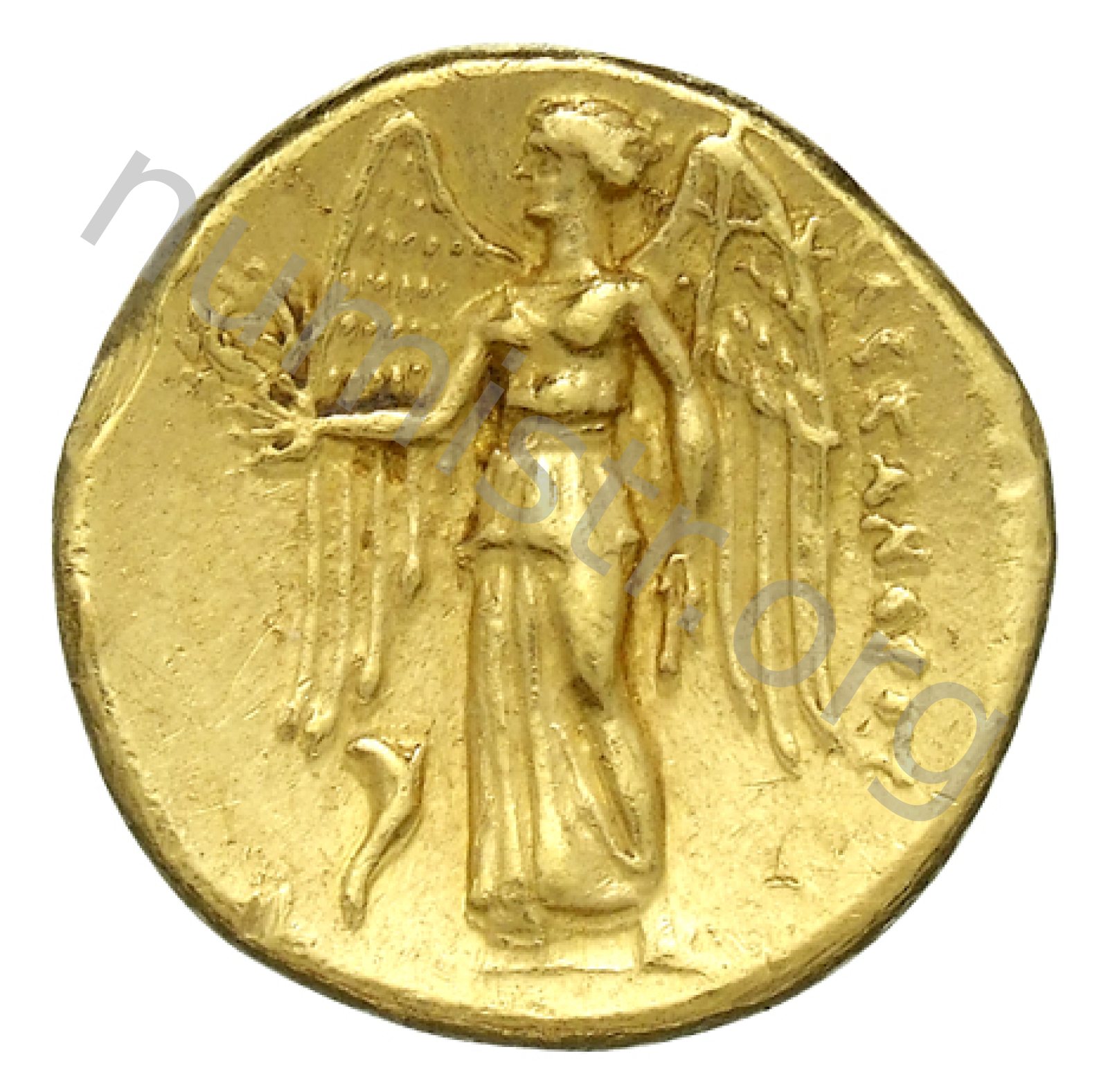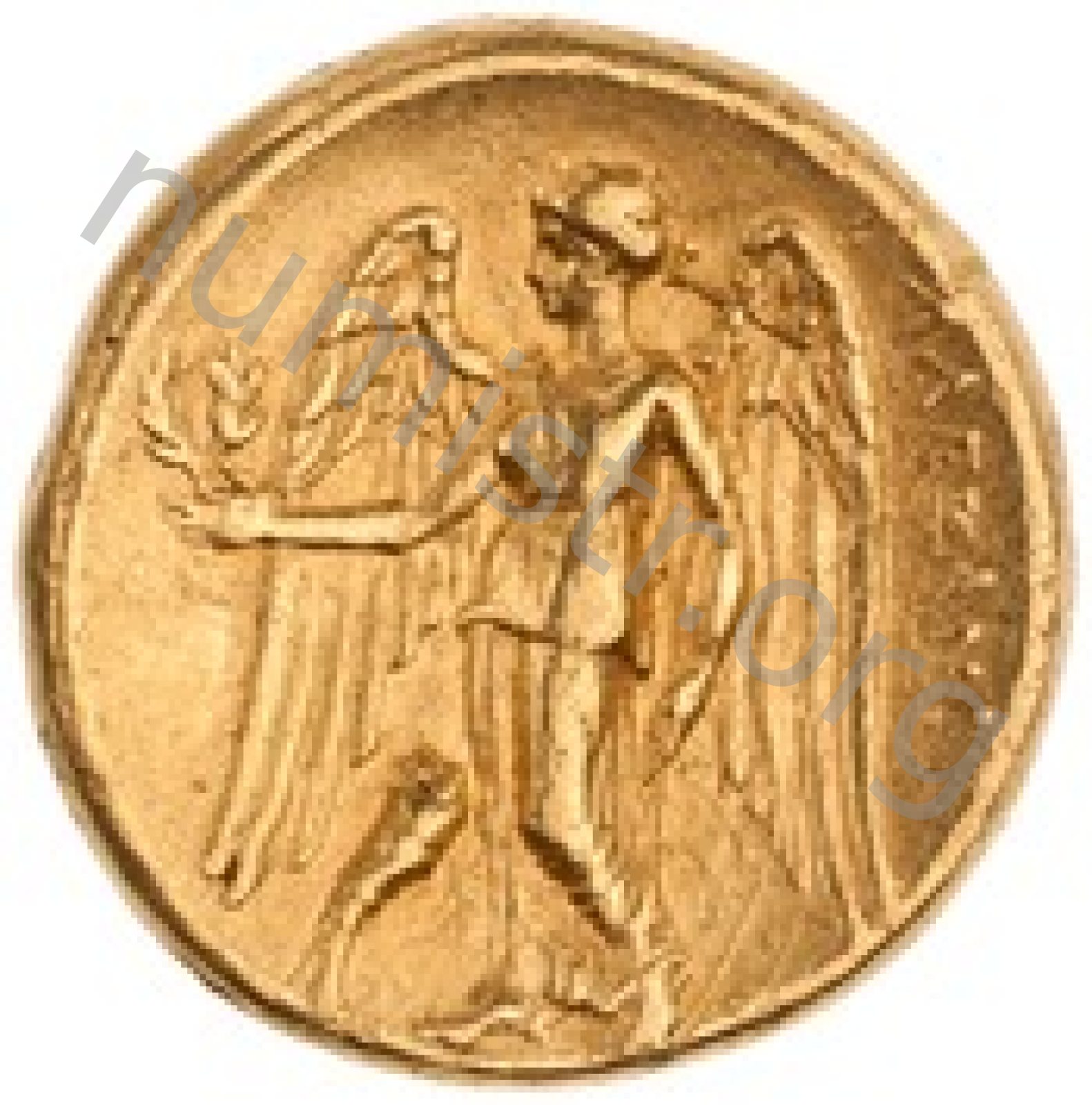 Nike standing left holding wreath in right hand and stylis in her left hand -[en]