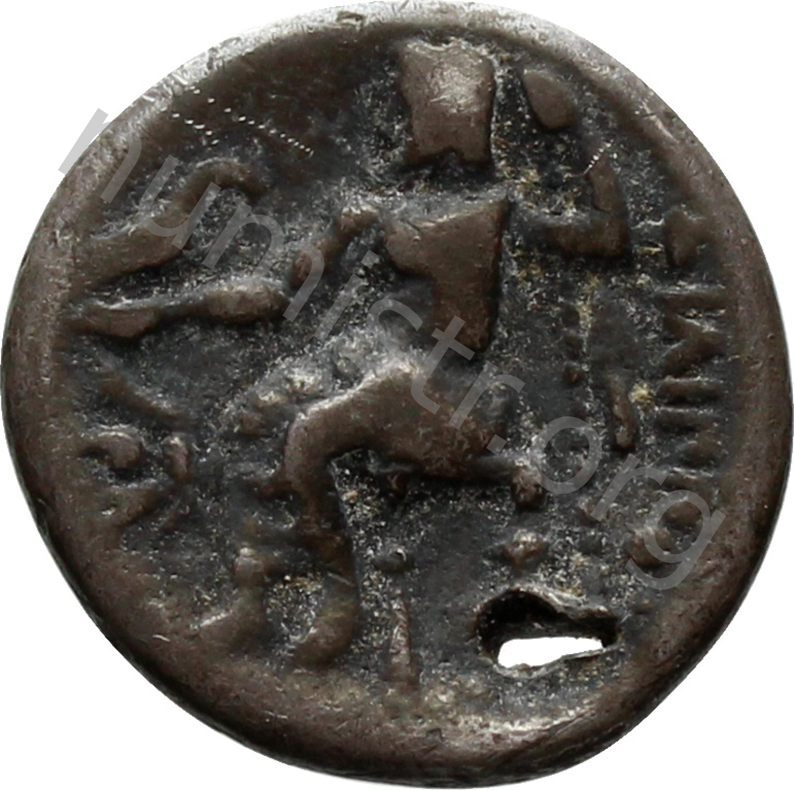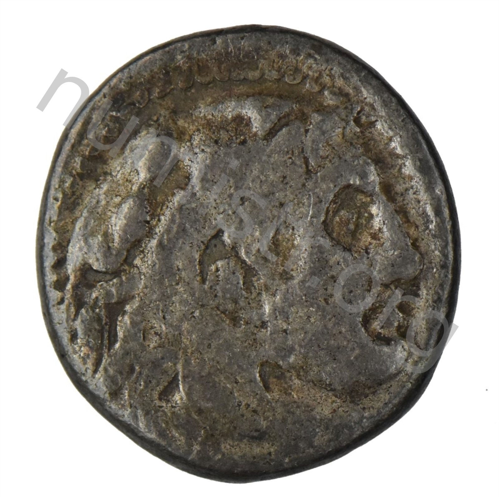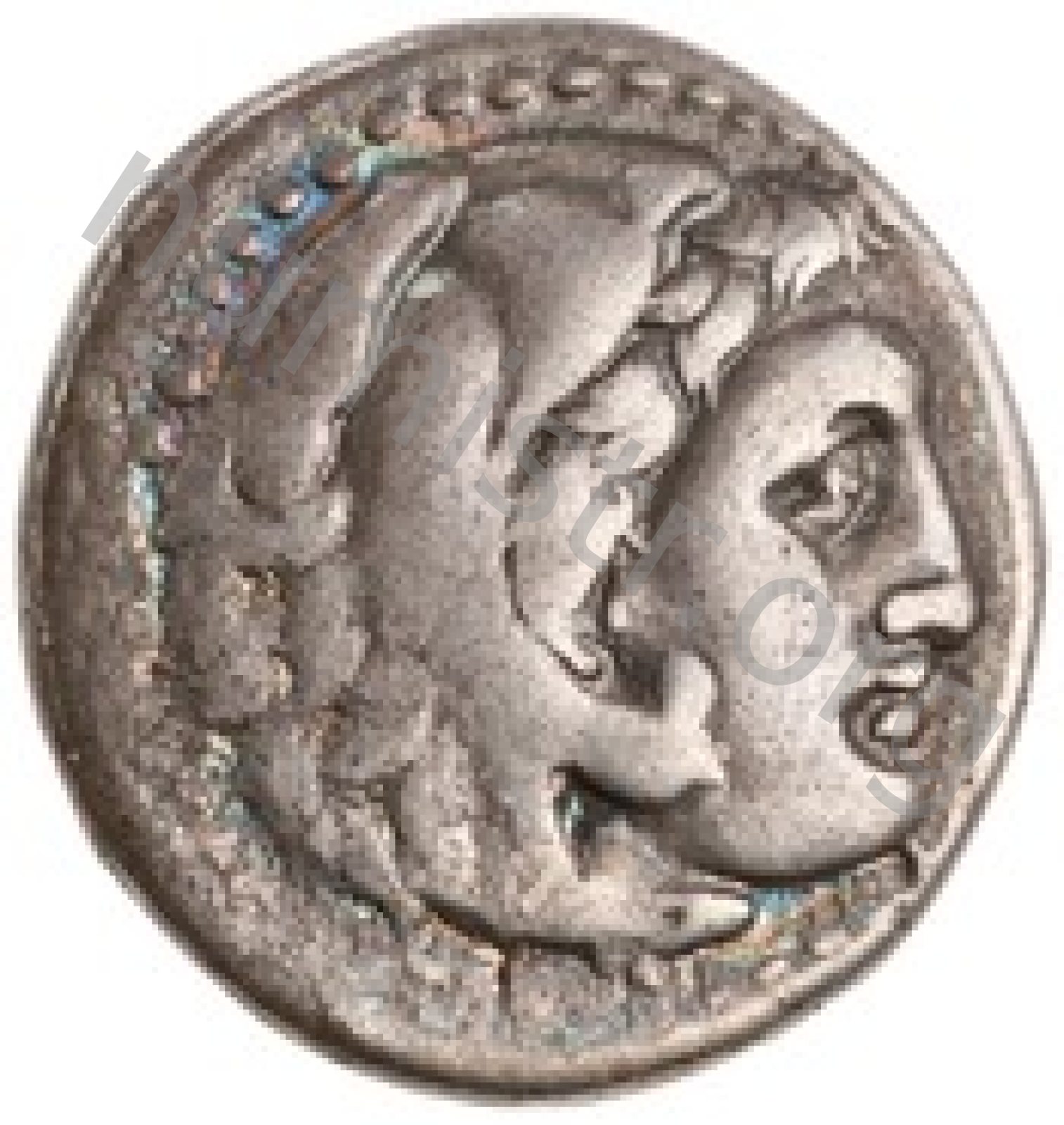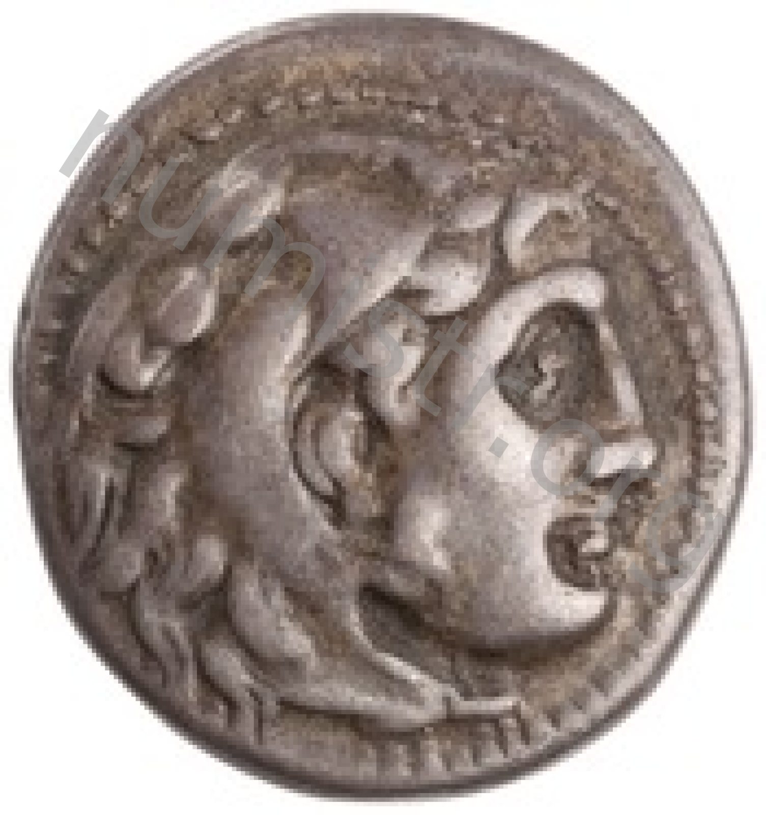 Head of beardless Heracles right wearing lion skin headdress -[en]