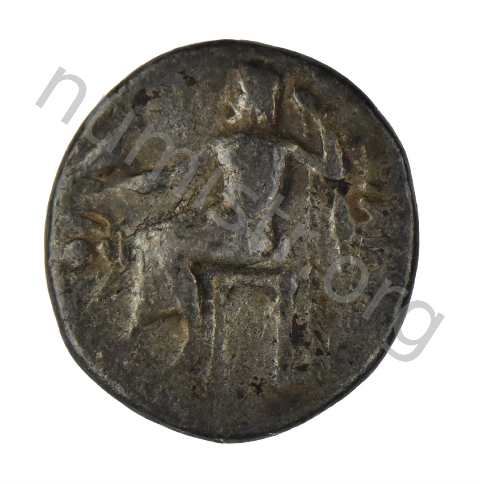 Zeus tabure-tahtta oturuyor sol elinde kartal sağ elinde asa var.