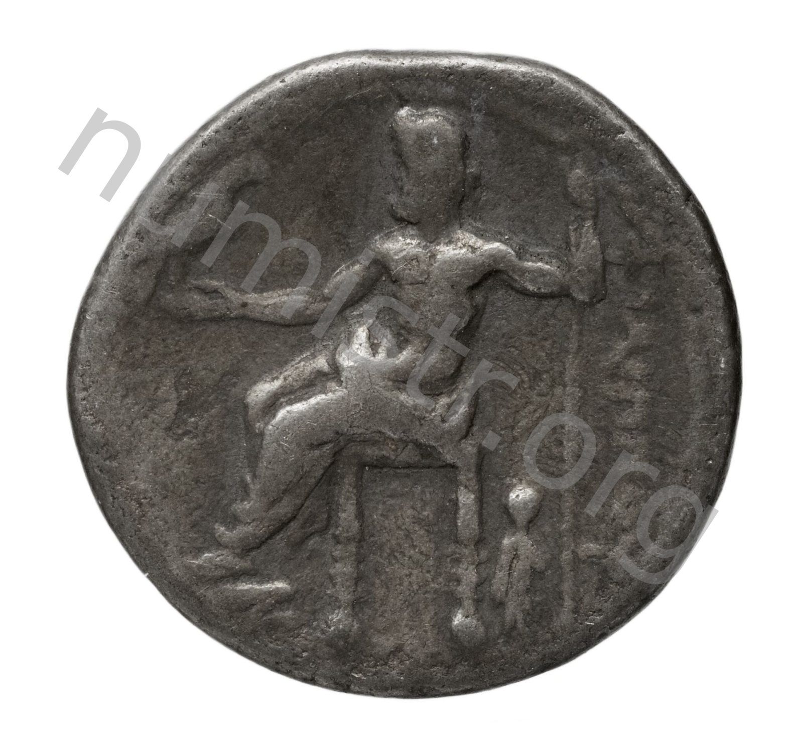 Zeus tabure-tahtta oturuyor sol elinde kartal sağ elinde asa var.