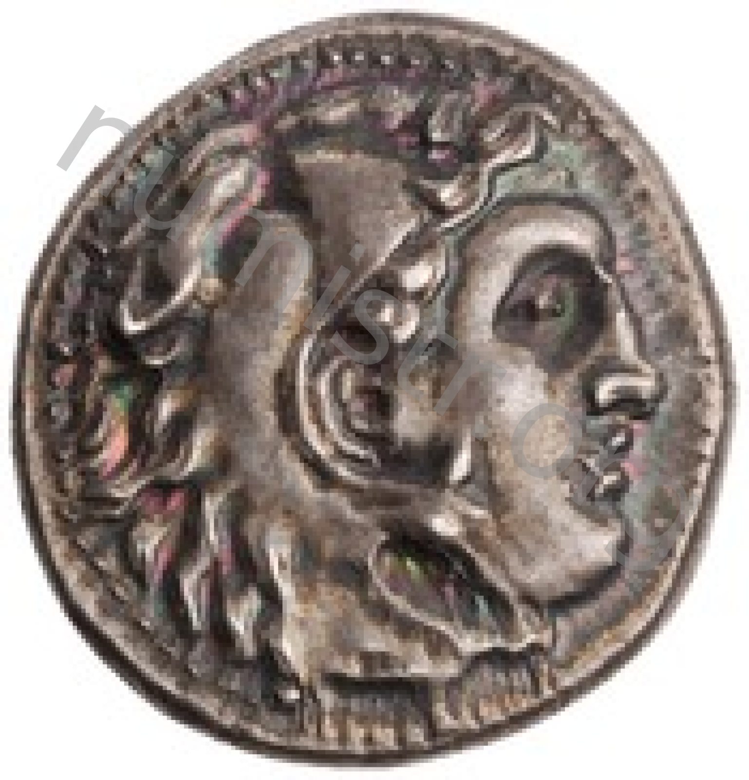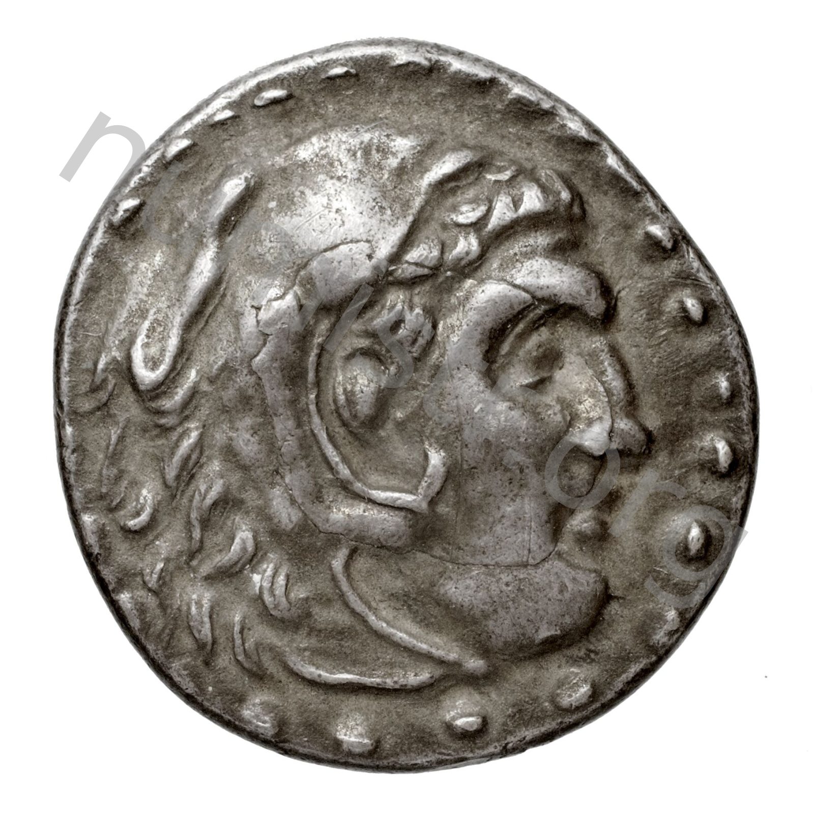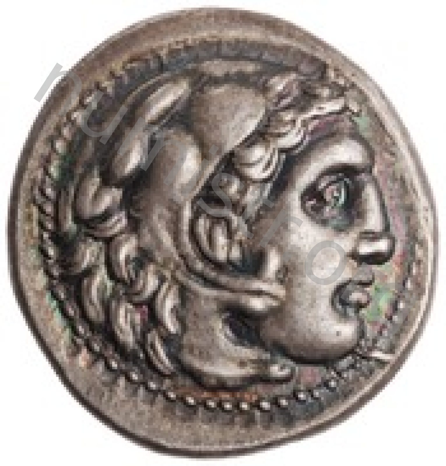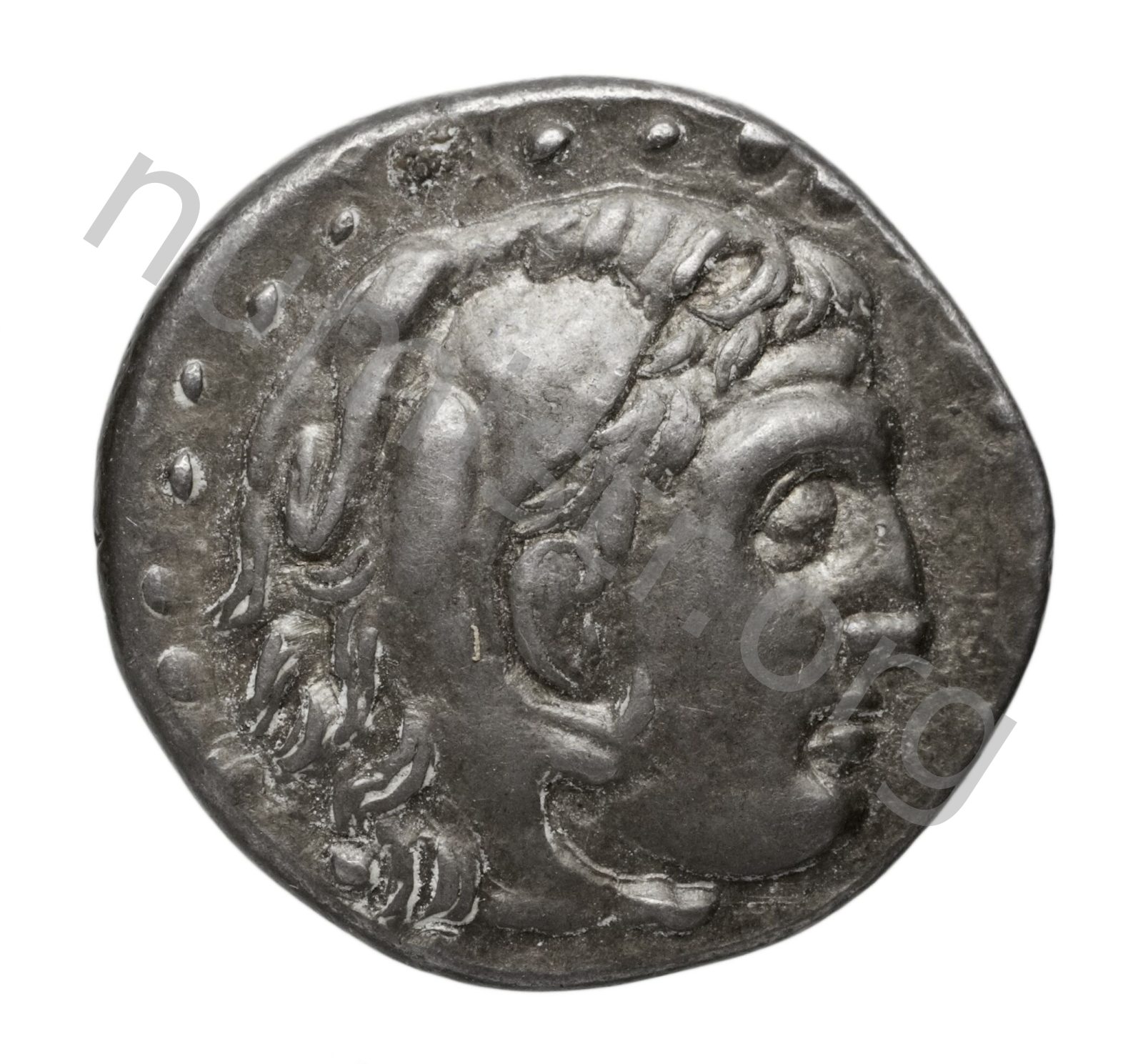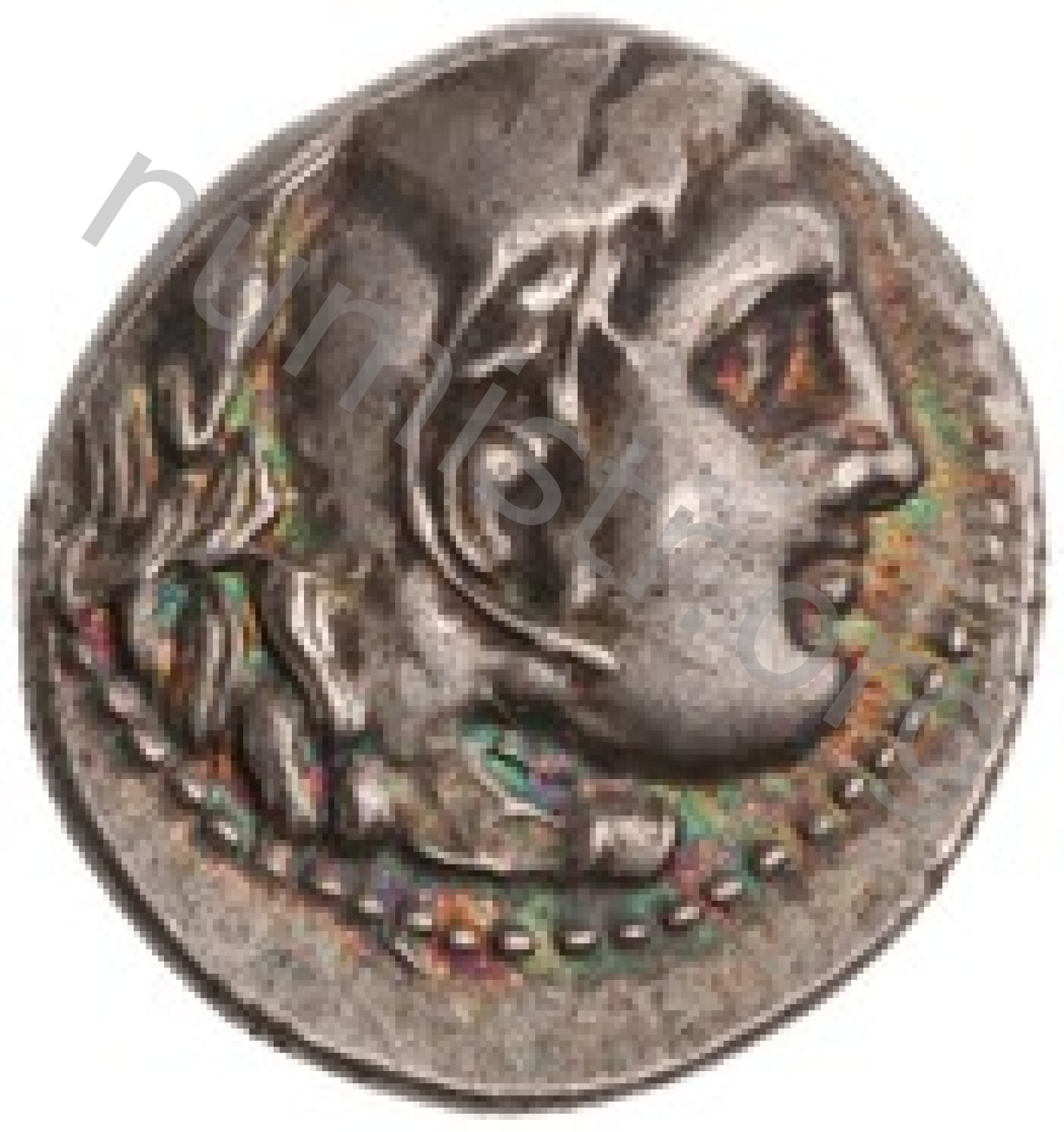 Head of beardless Heracles right wearing lion skin headdress -[en]