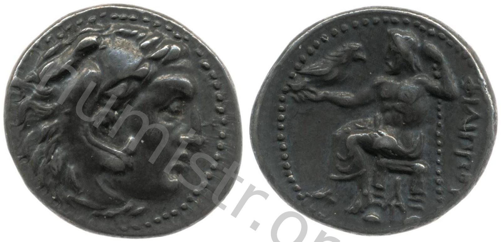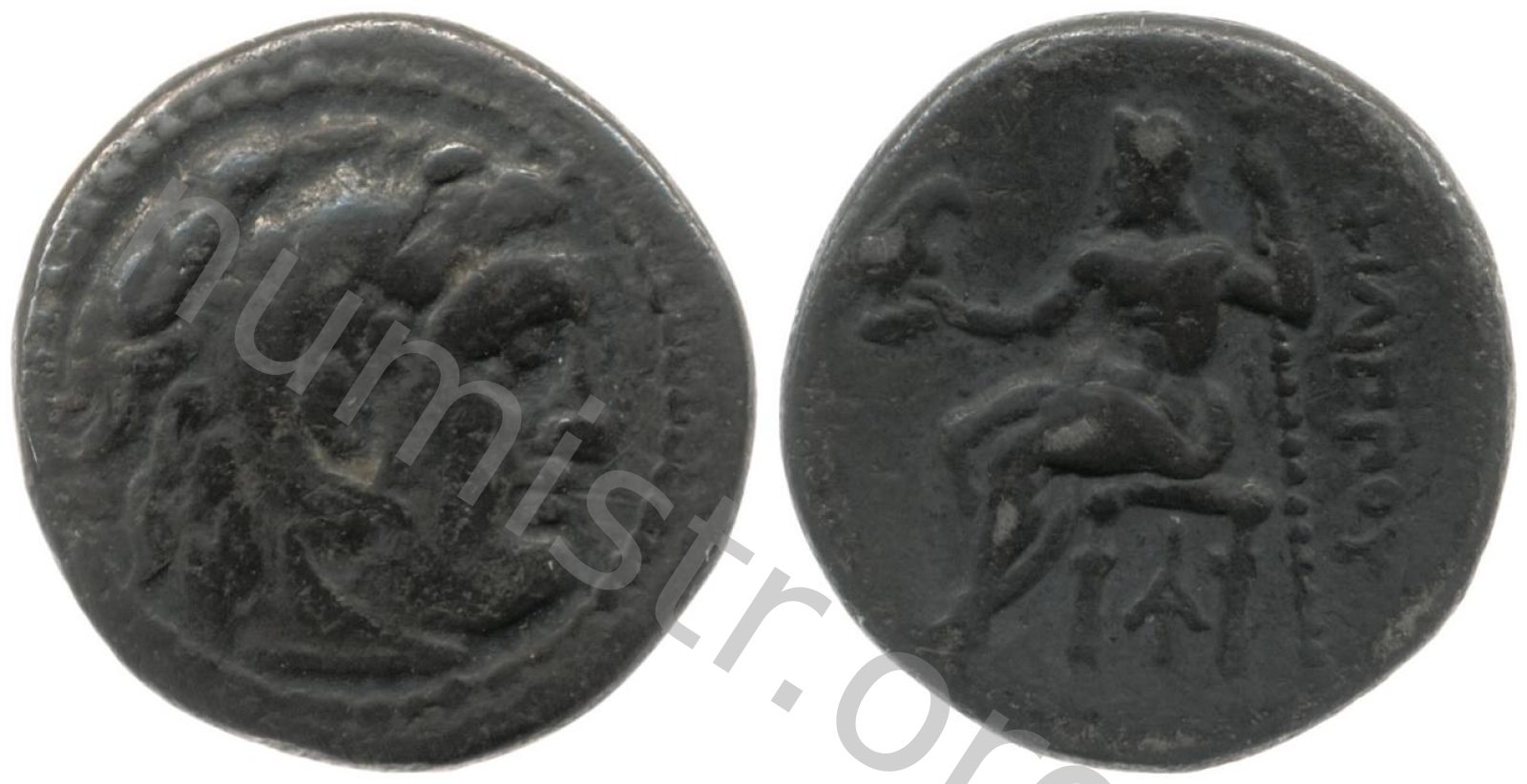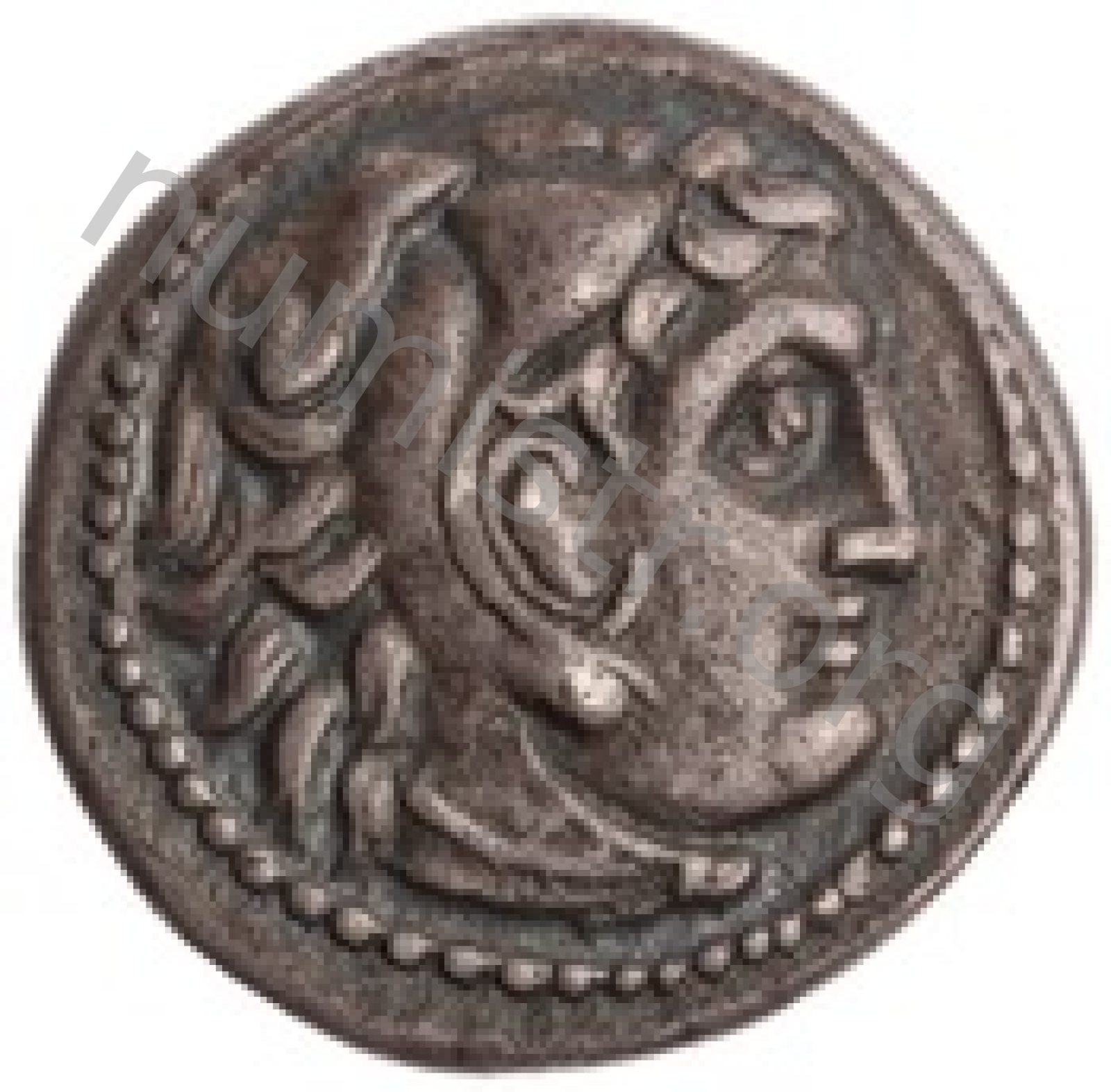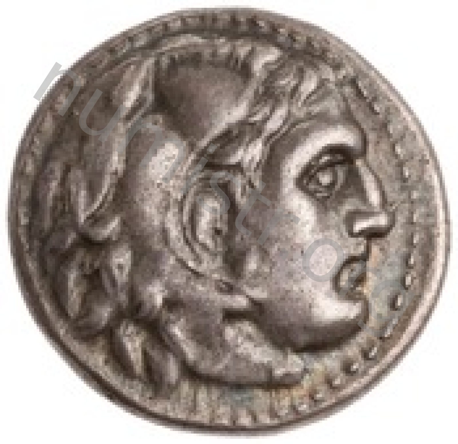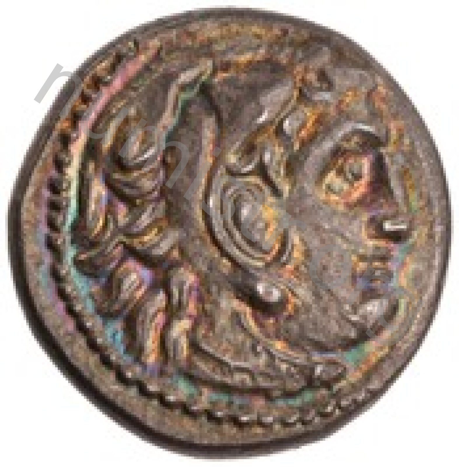 Head of beardless Heracles right wearing lion skin headdress -[en]
