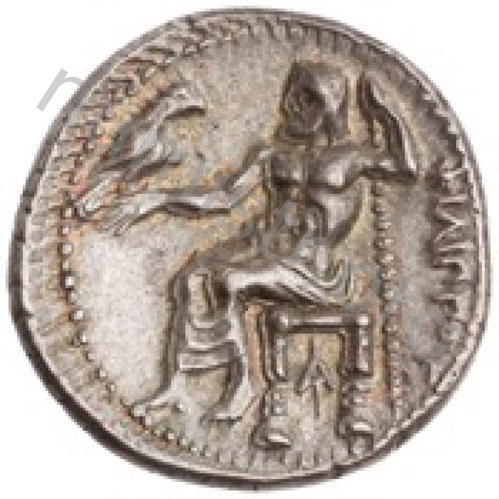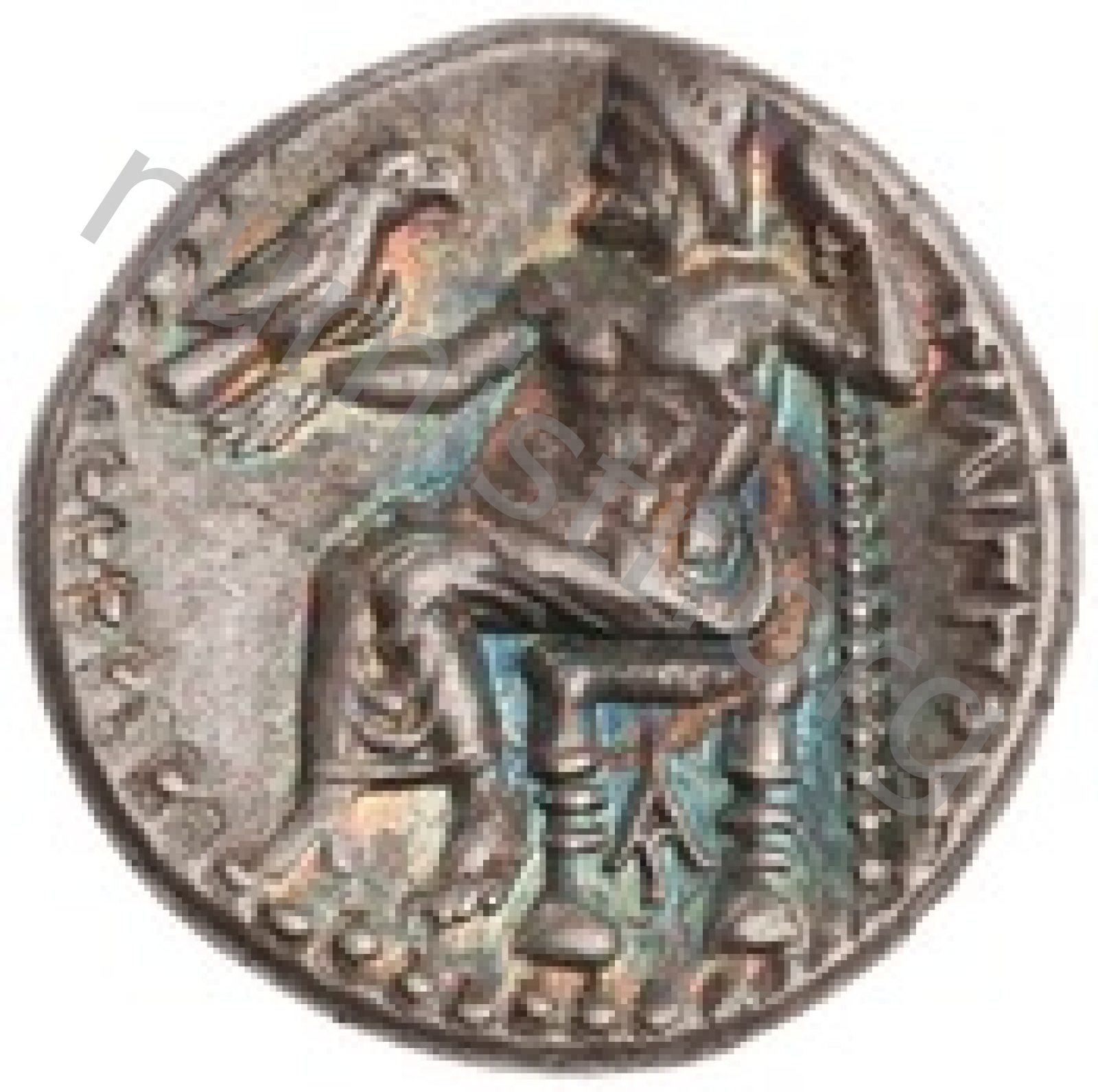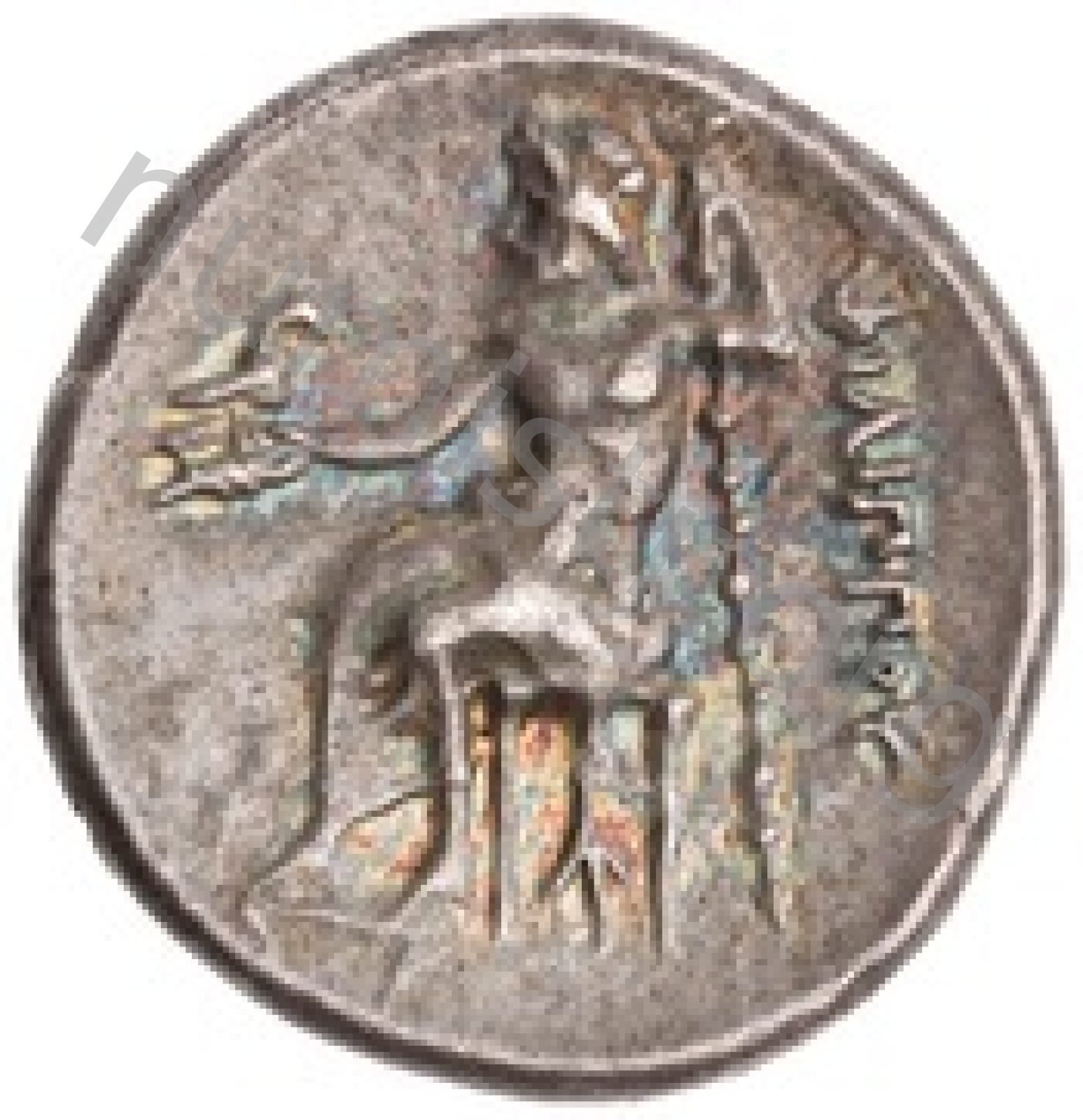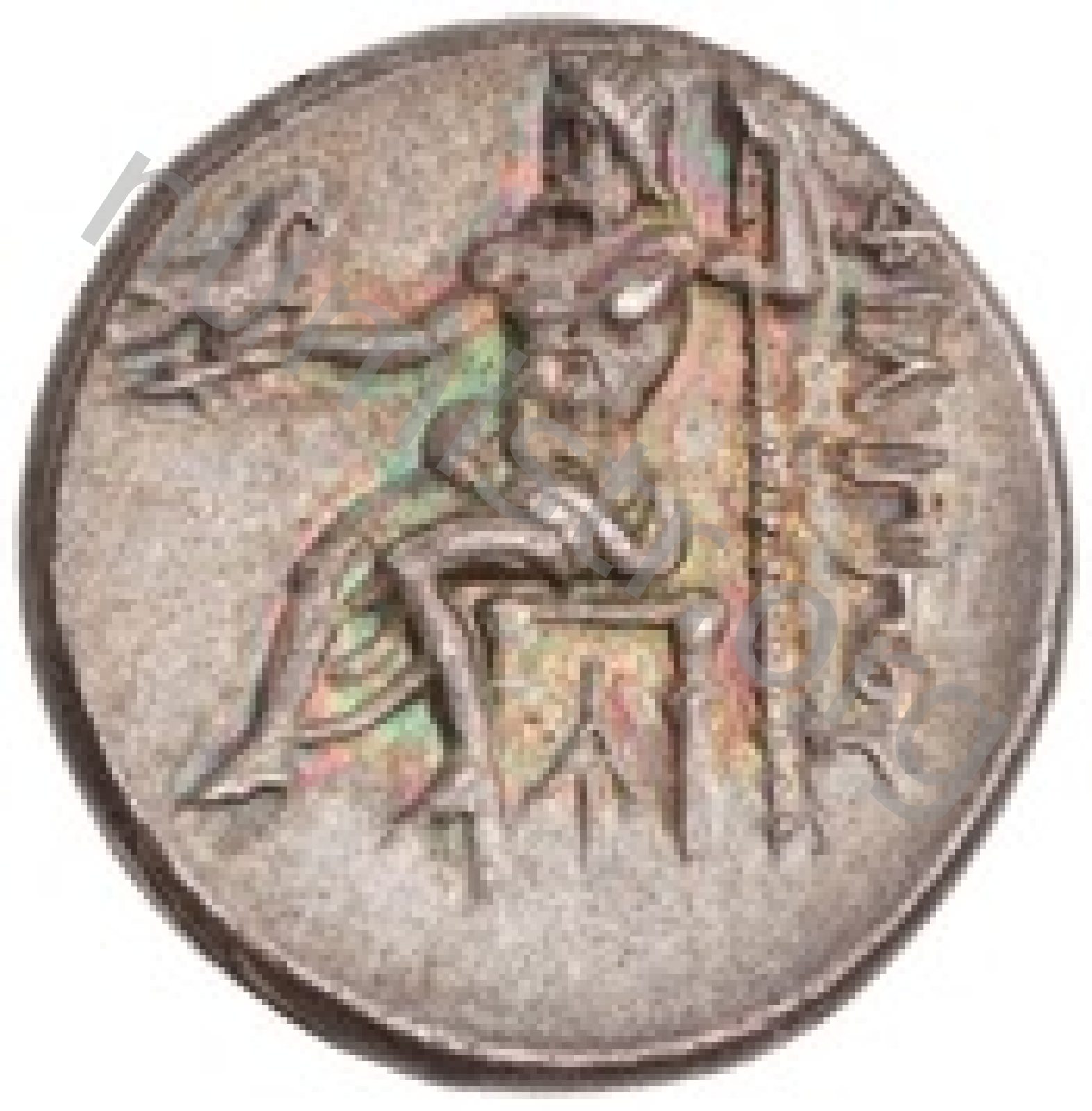 Zeus tabure-tahtta oturuyor sol elinde kartal sağ elinde asa var.