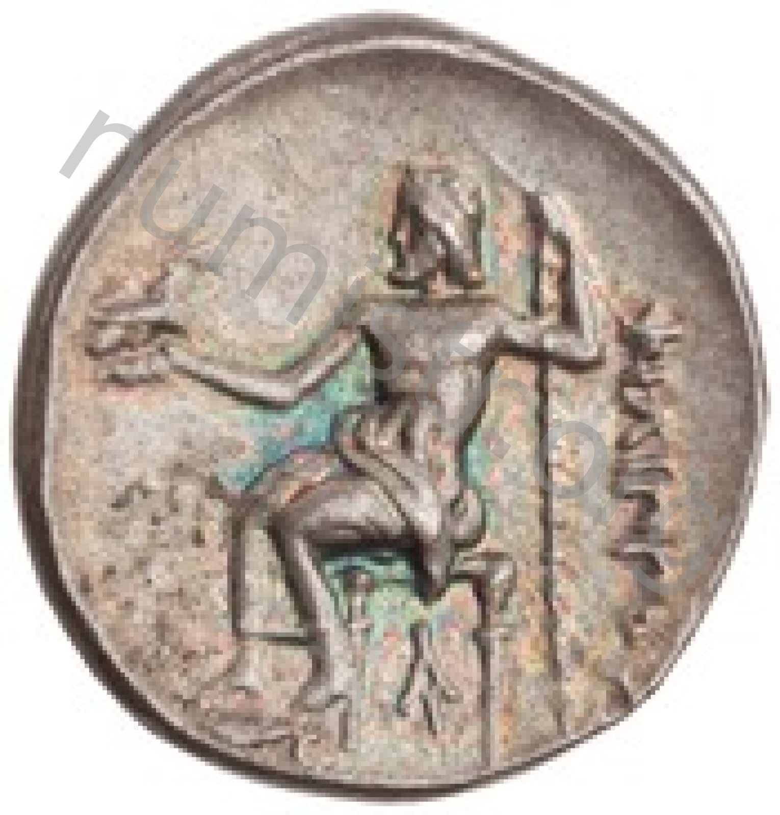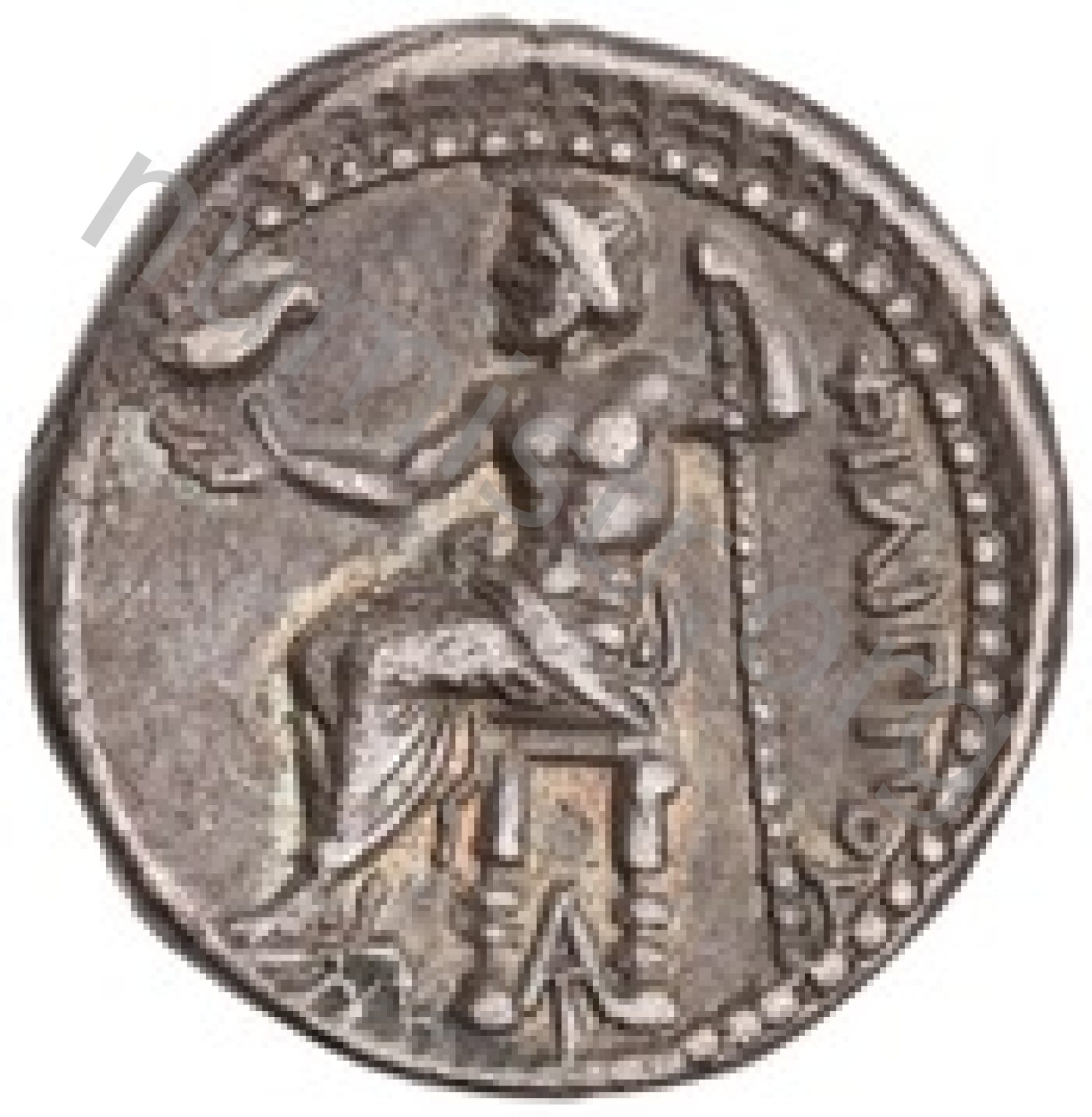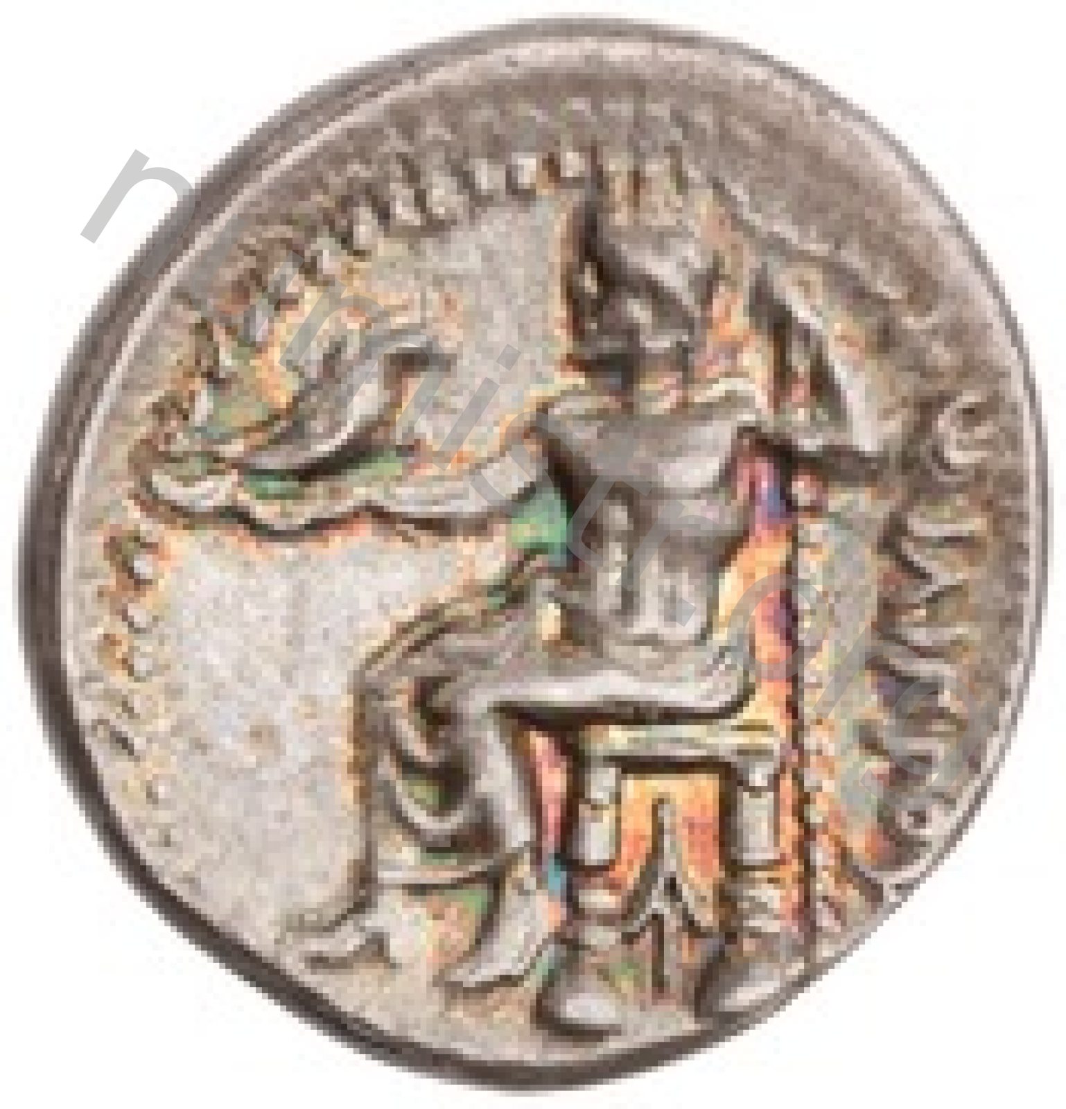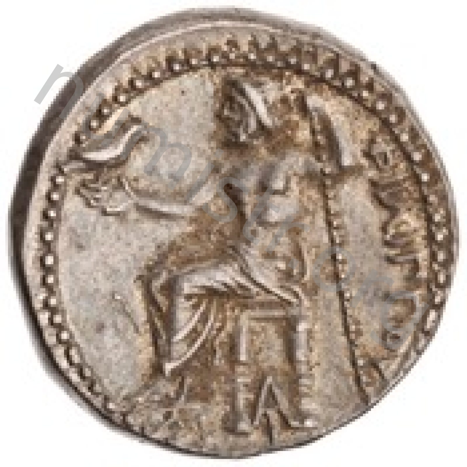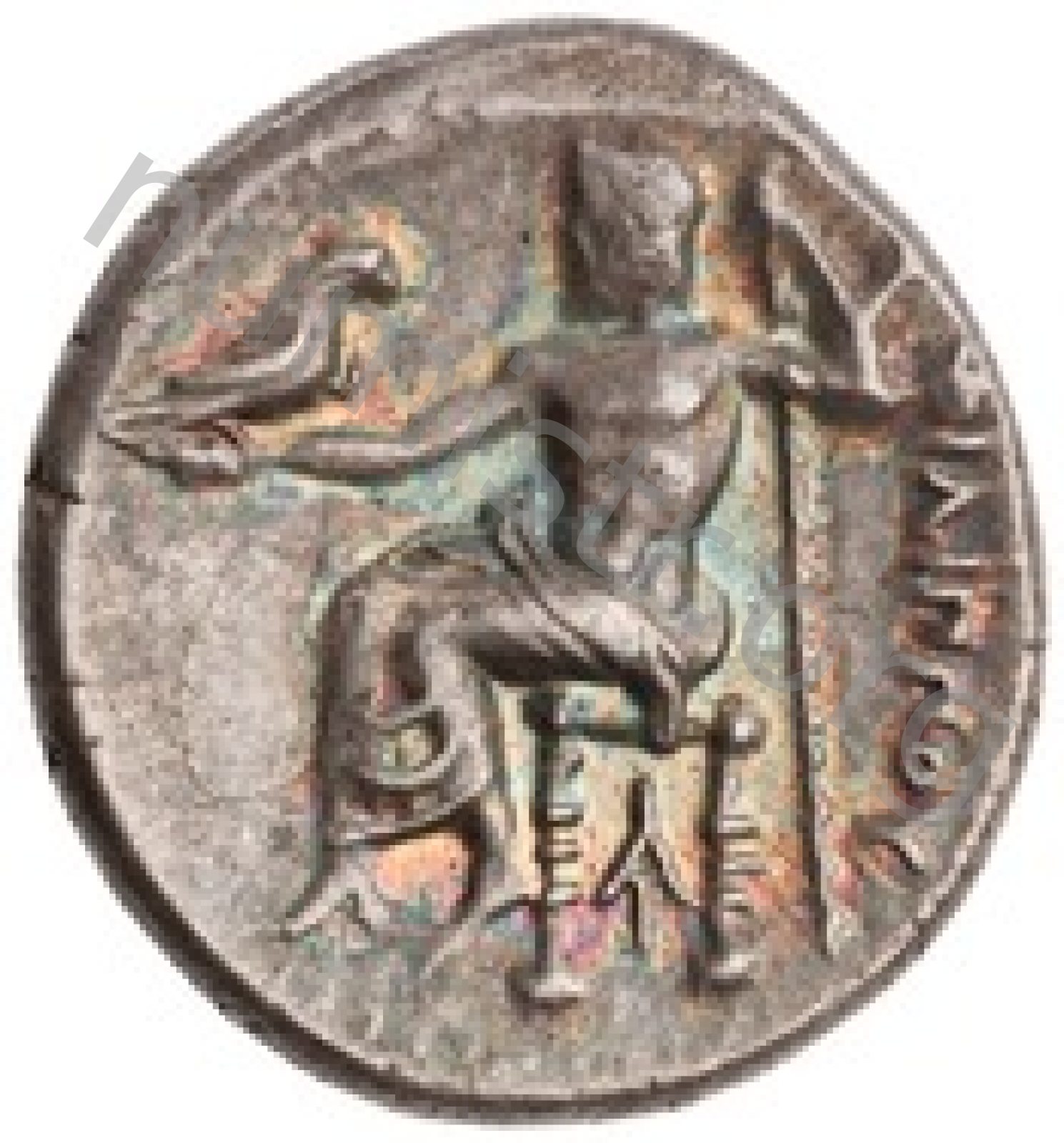Zeus tabure-tahtta oturuyor sol elinde kartal sağ elinde asa var.