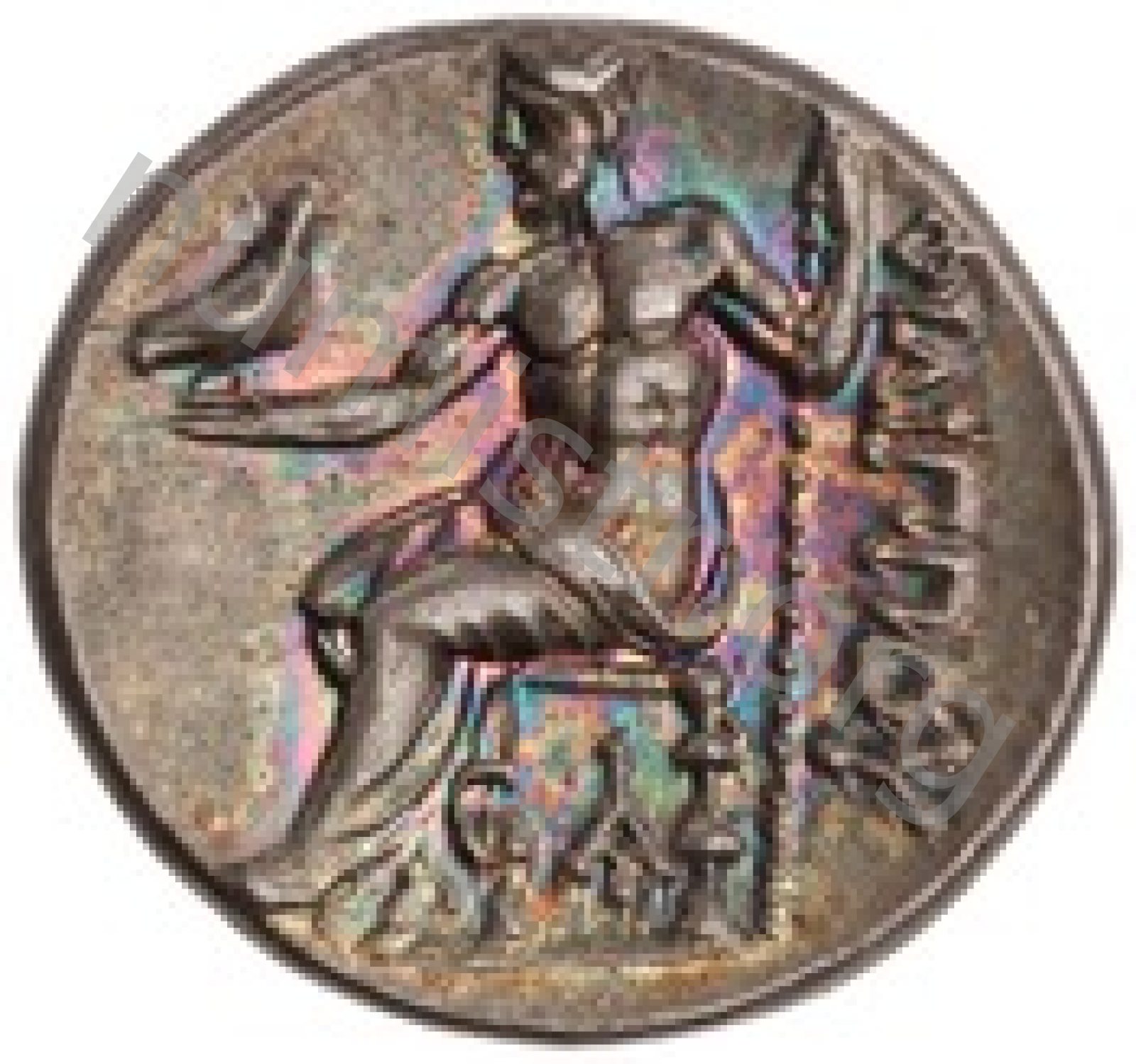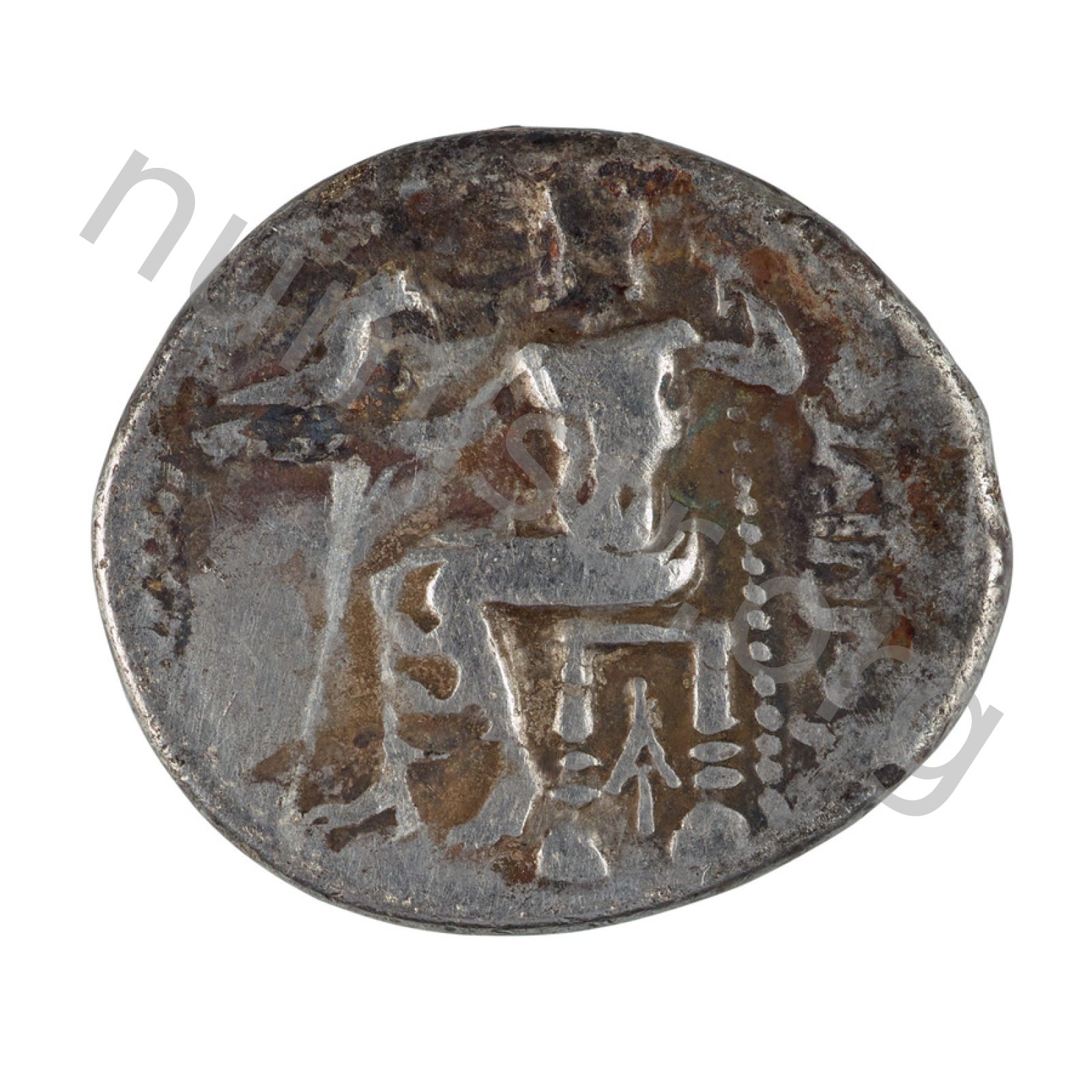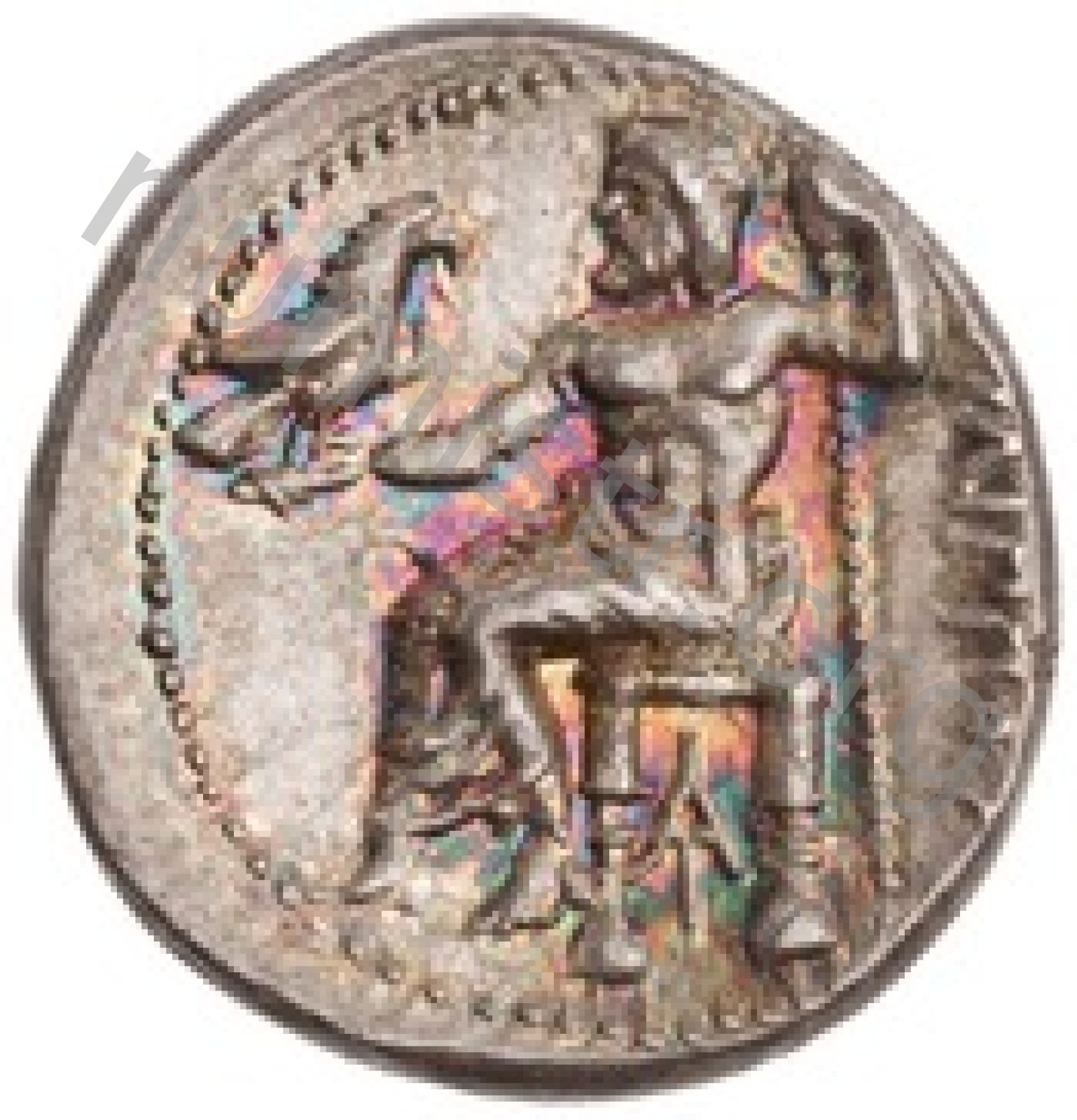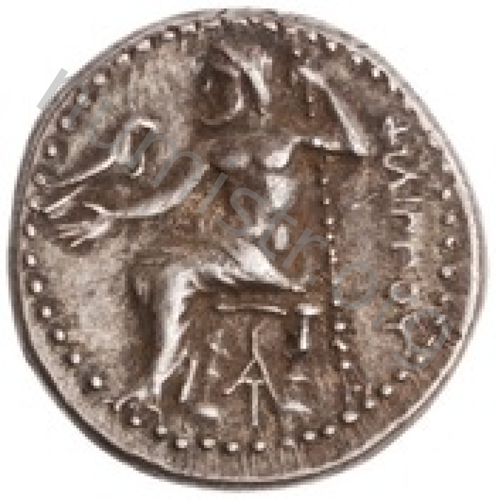 Zeus tabure-tahtta oturuyor sol elinde kartal sağ elinde asa var.