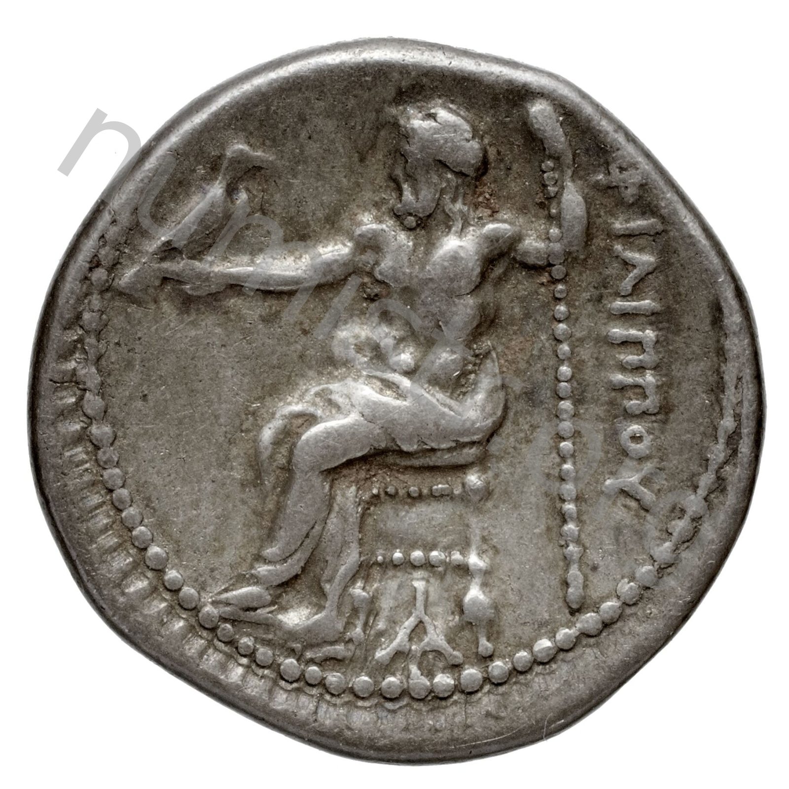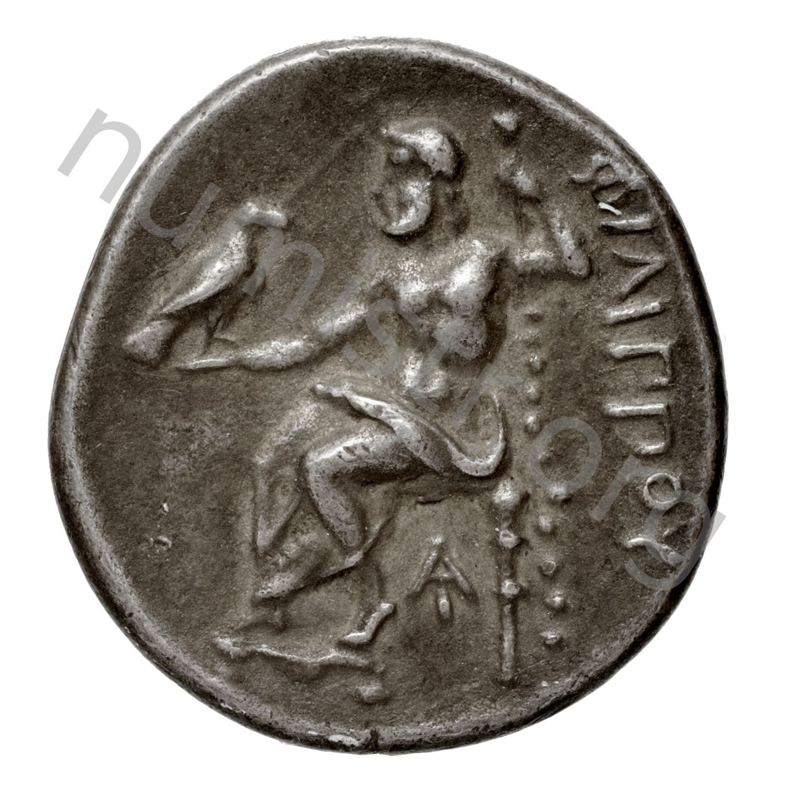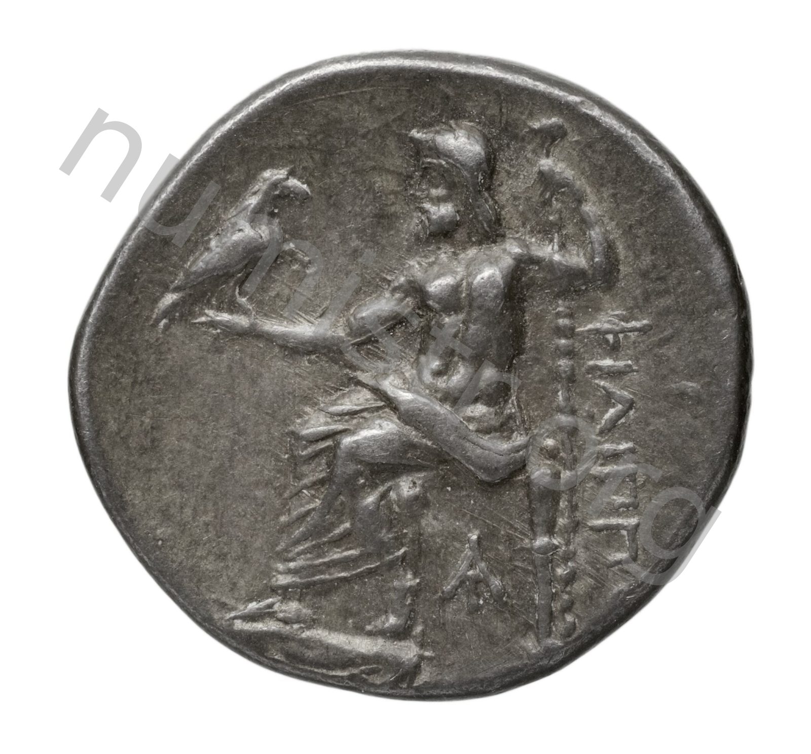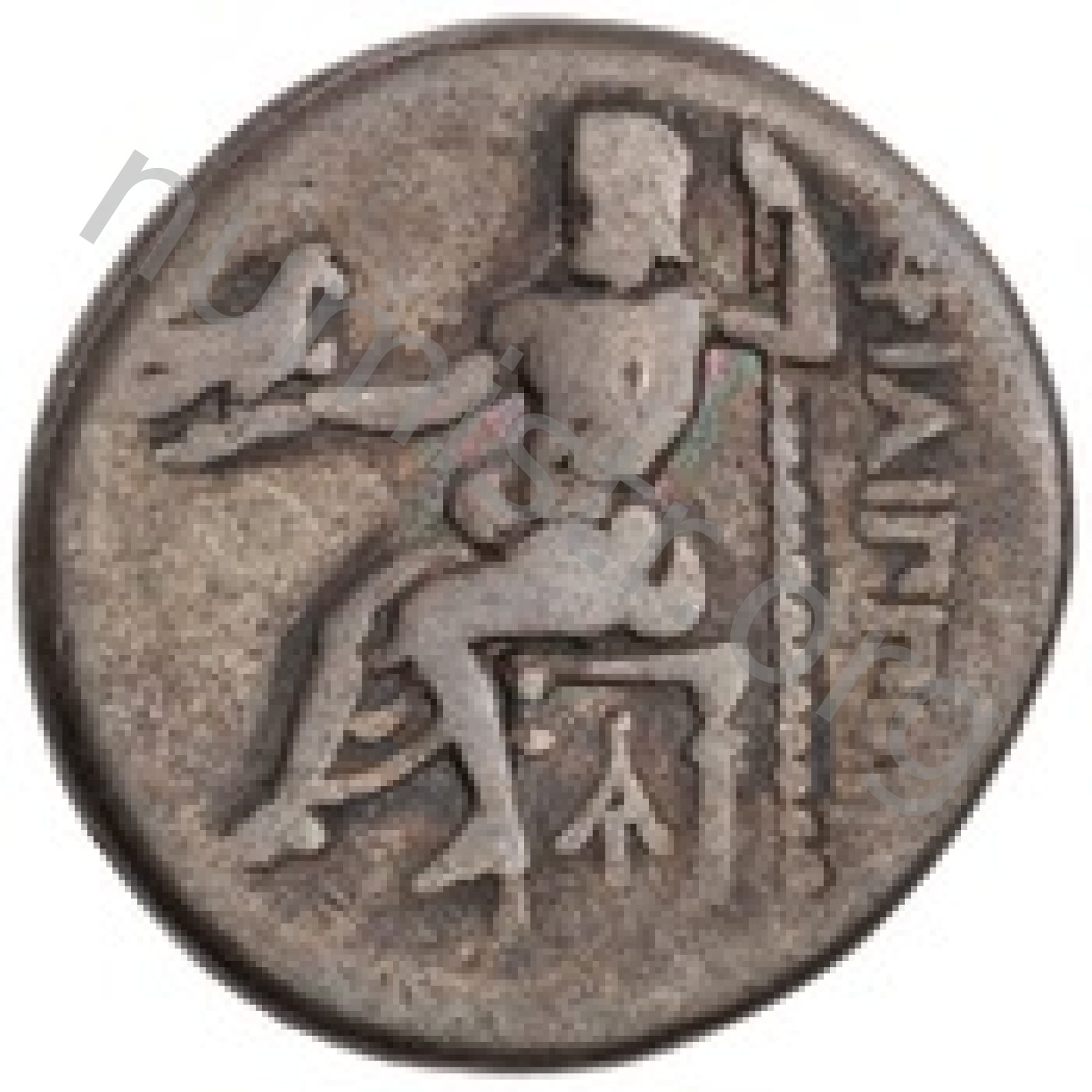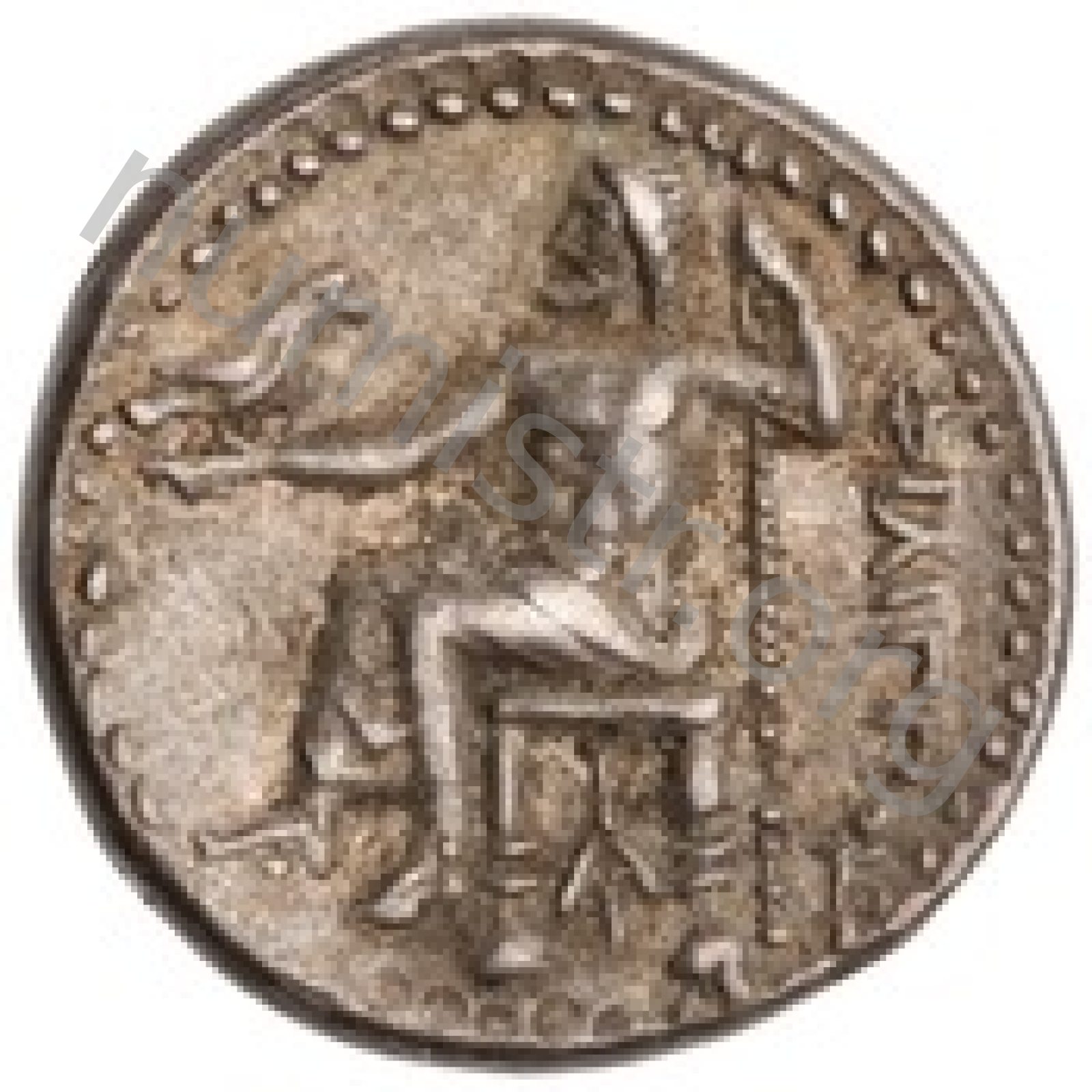 Zeus seated on stool-throne left eagle on outstretched right hand sceptre in left hand -[en]