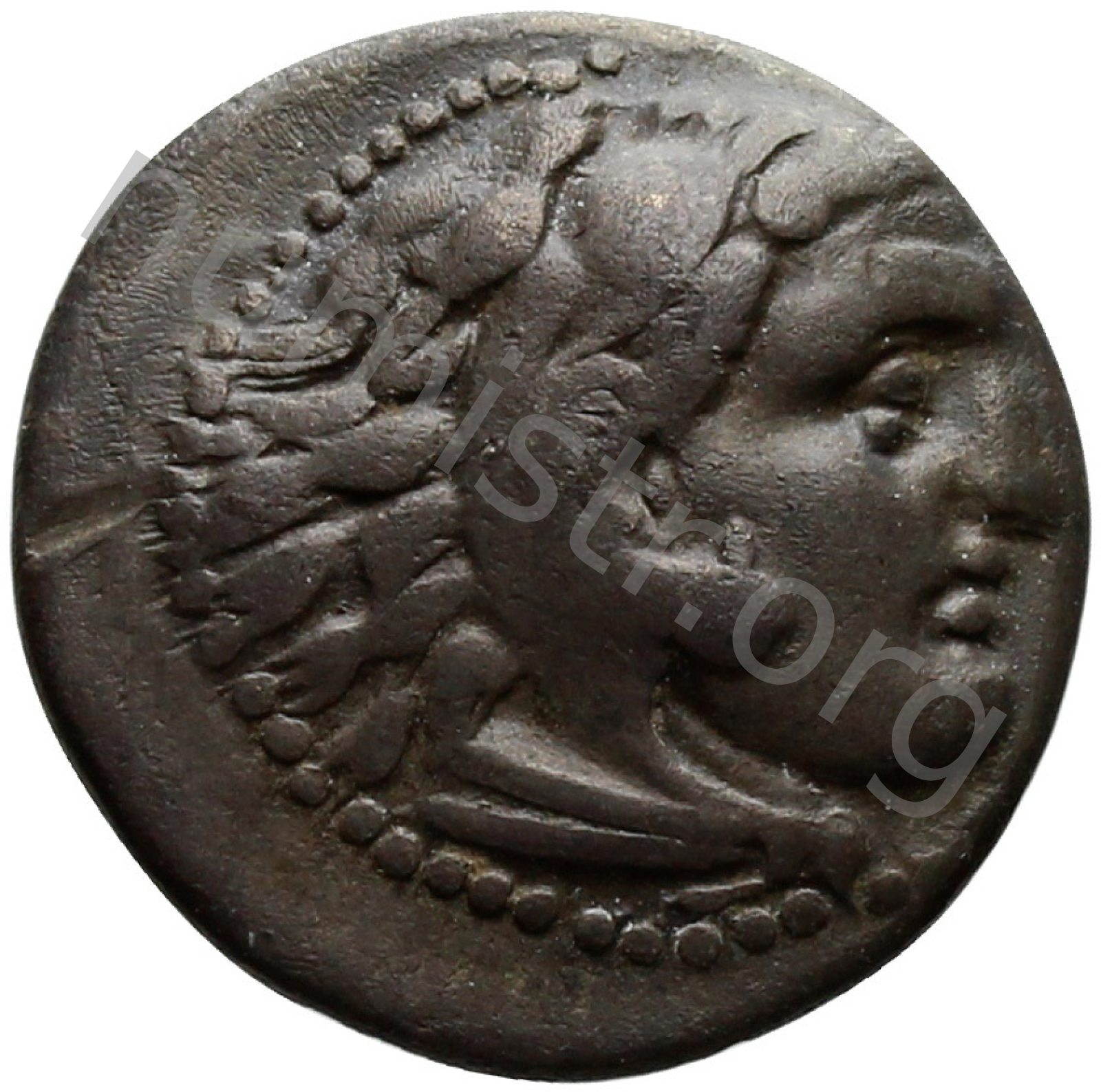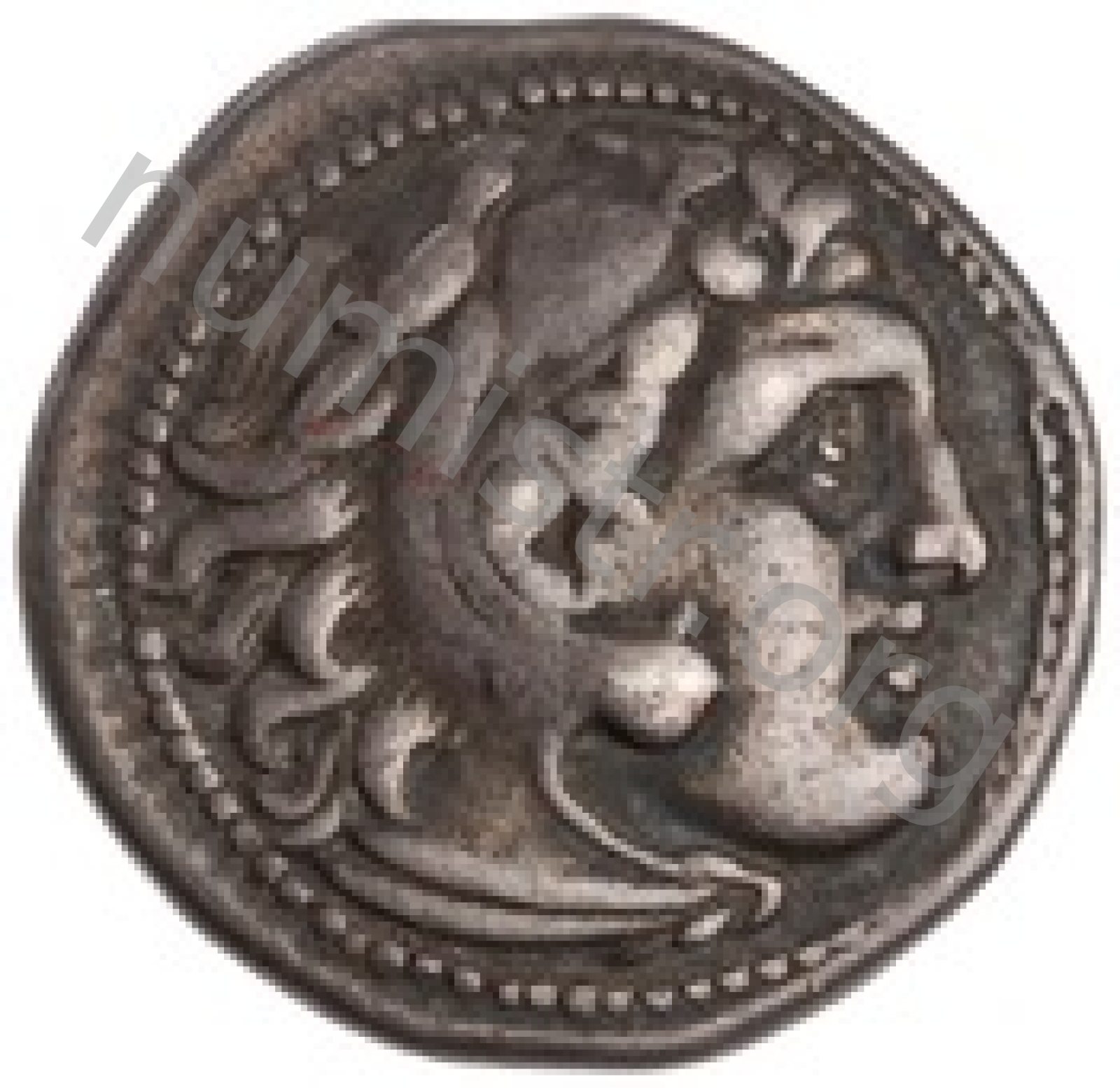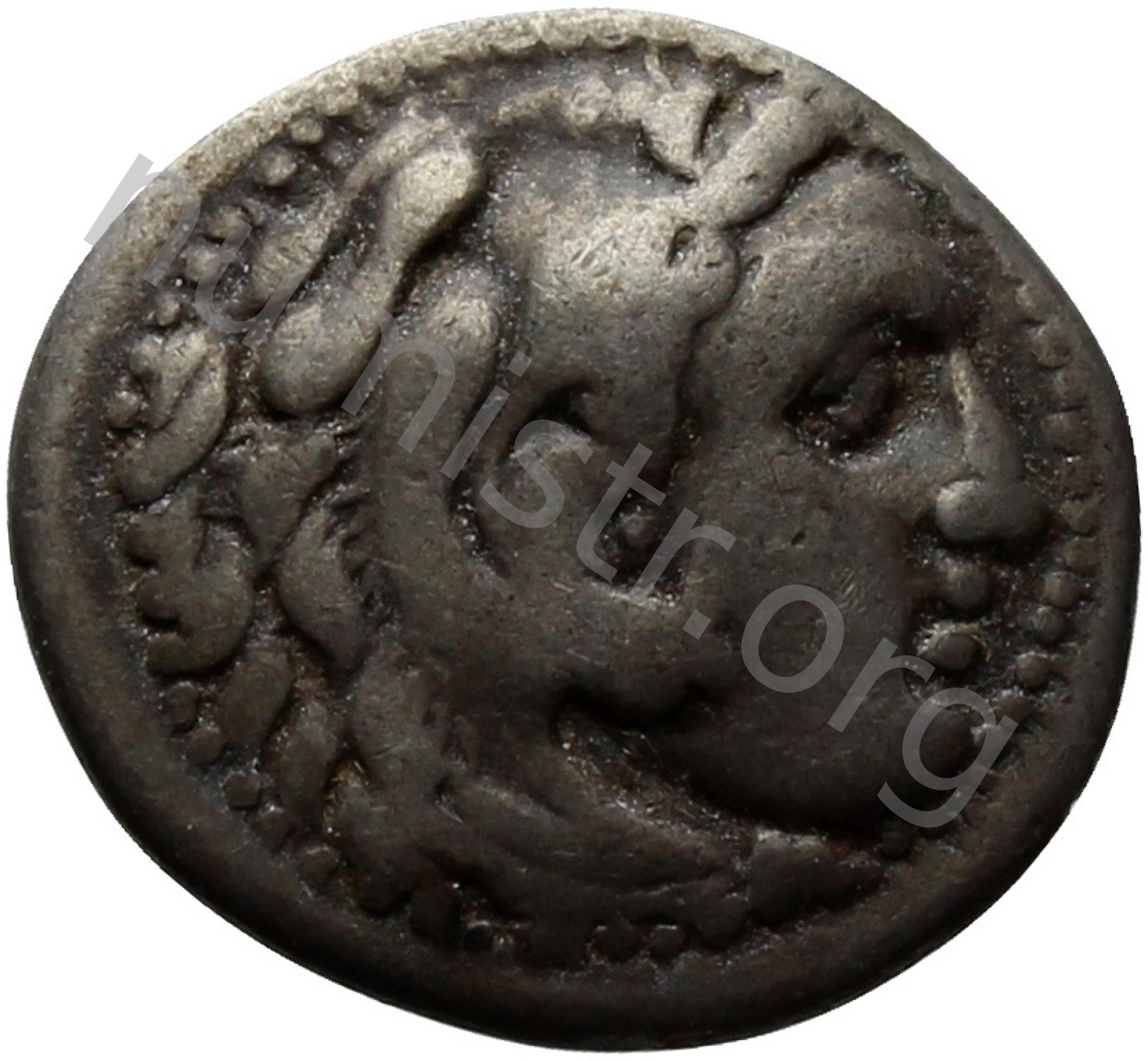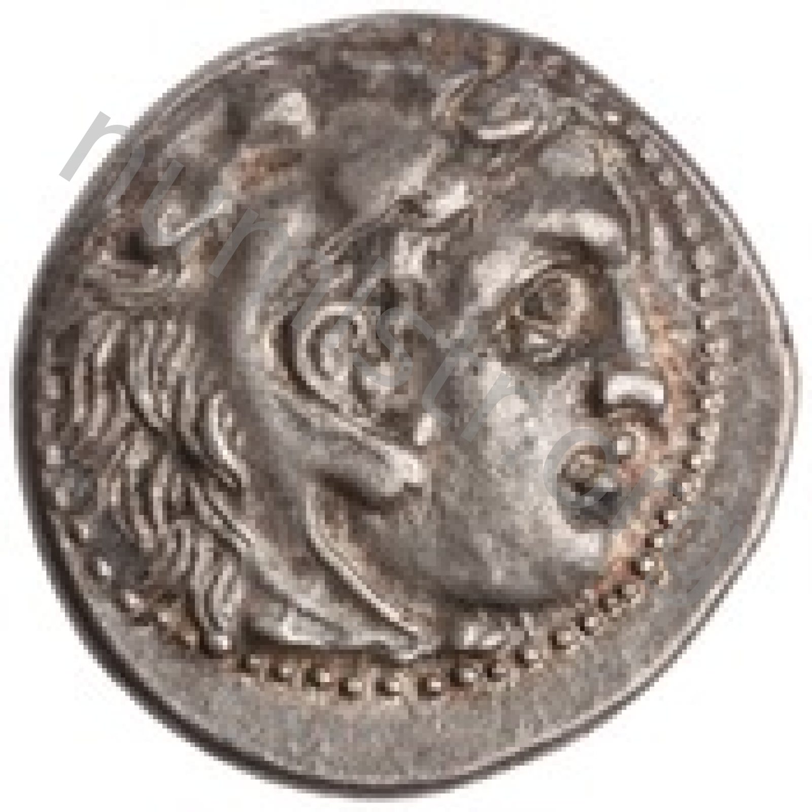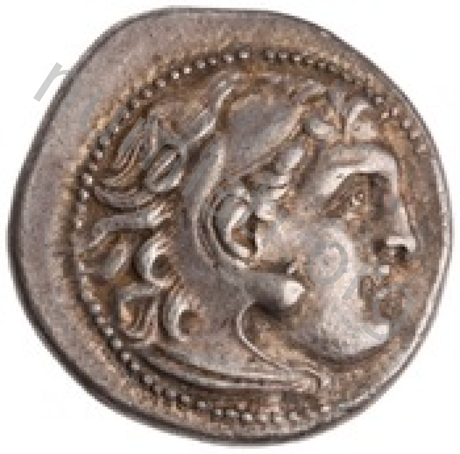 Head of beardless Heracles right wearing lion skin headdress -[en]