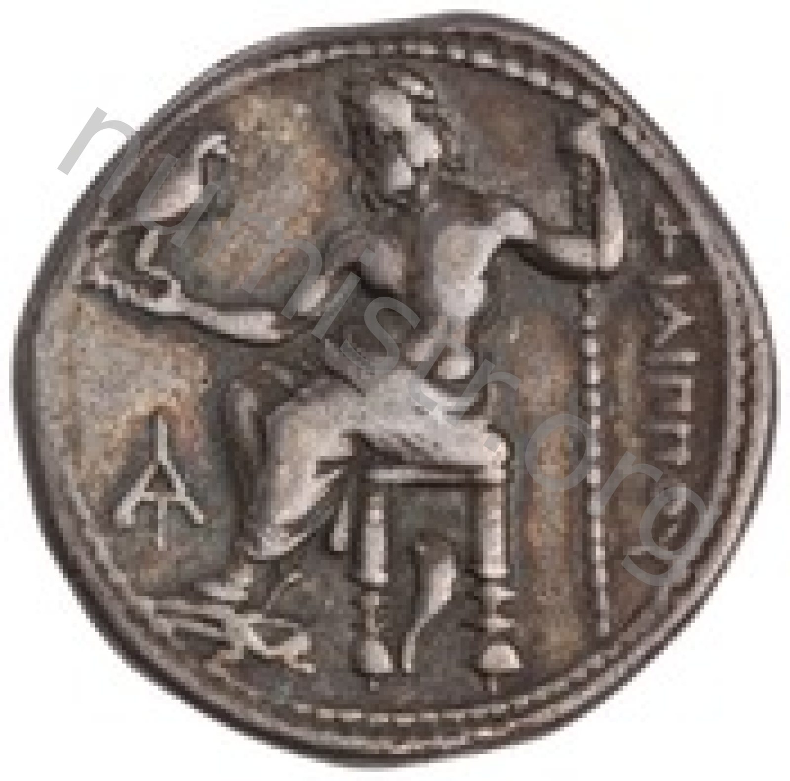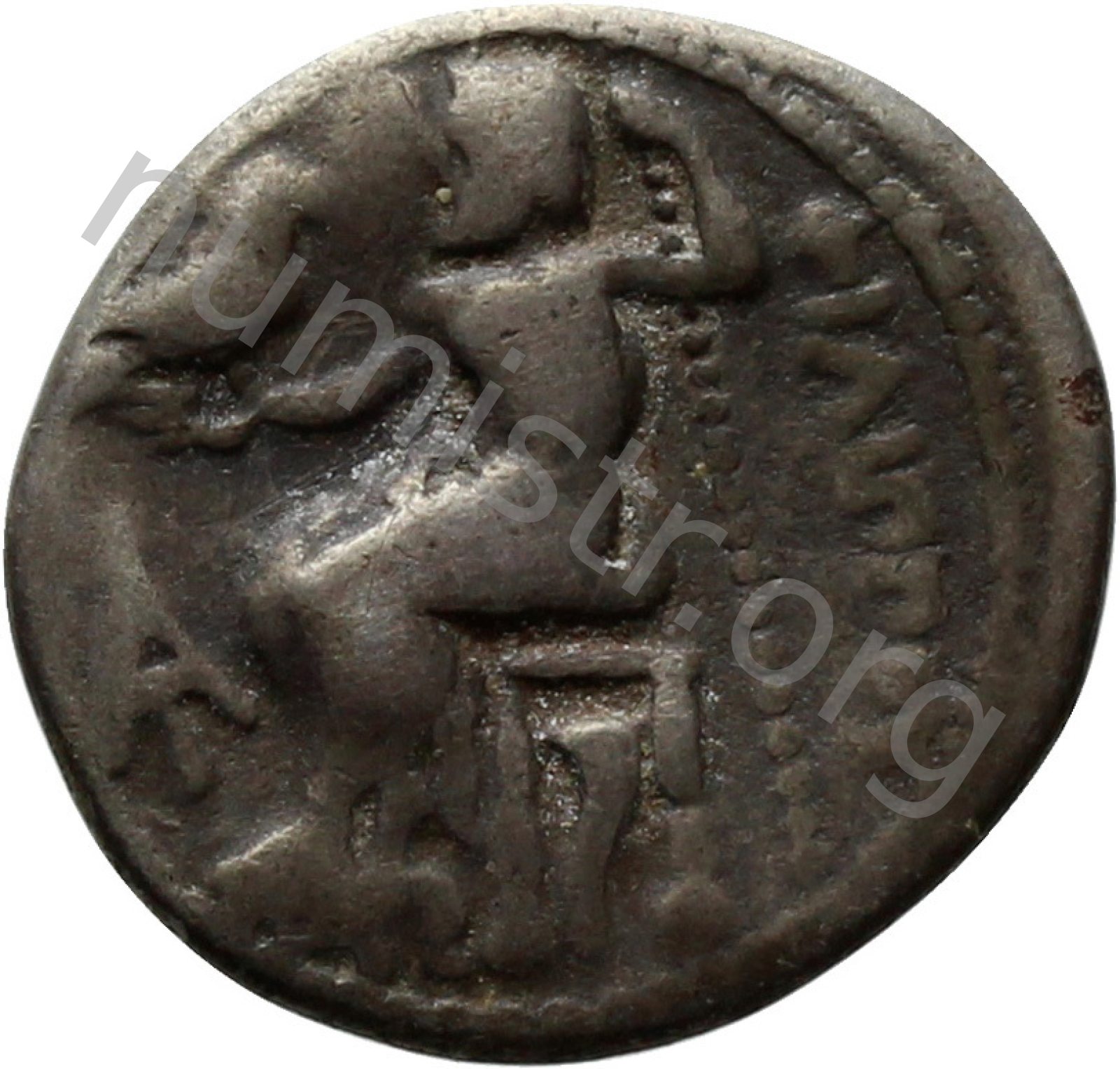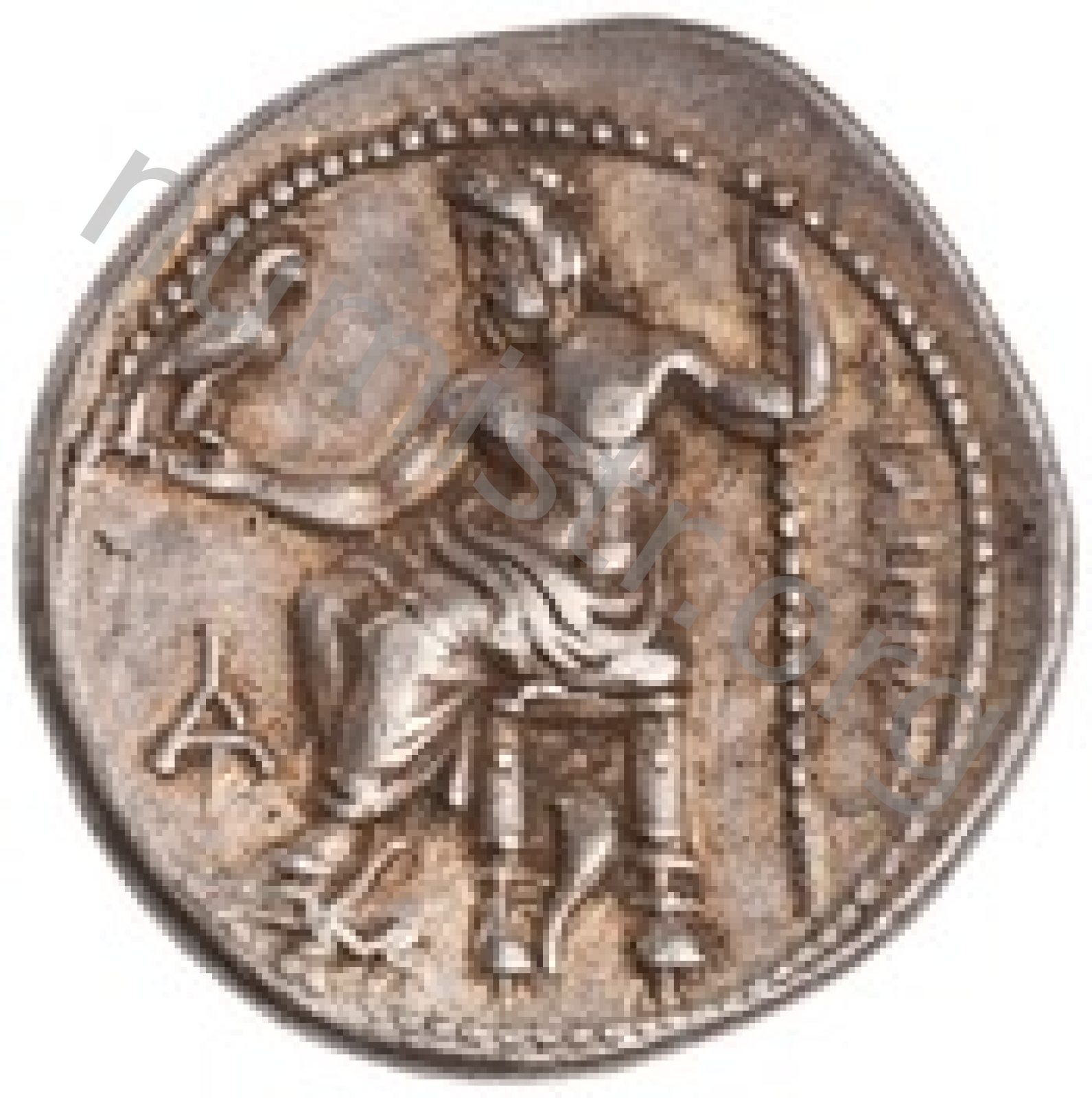 Zeus seated on stool-throne left eagle on outstretched right hand sceptre in left hand -[en]