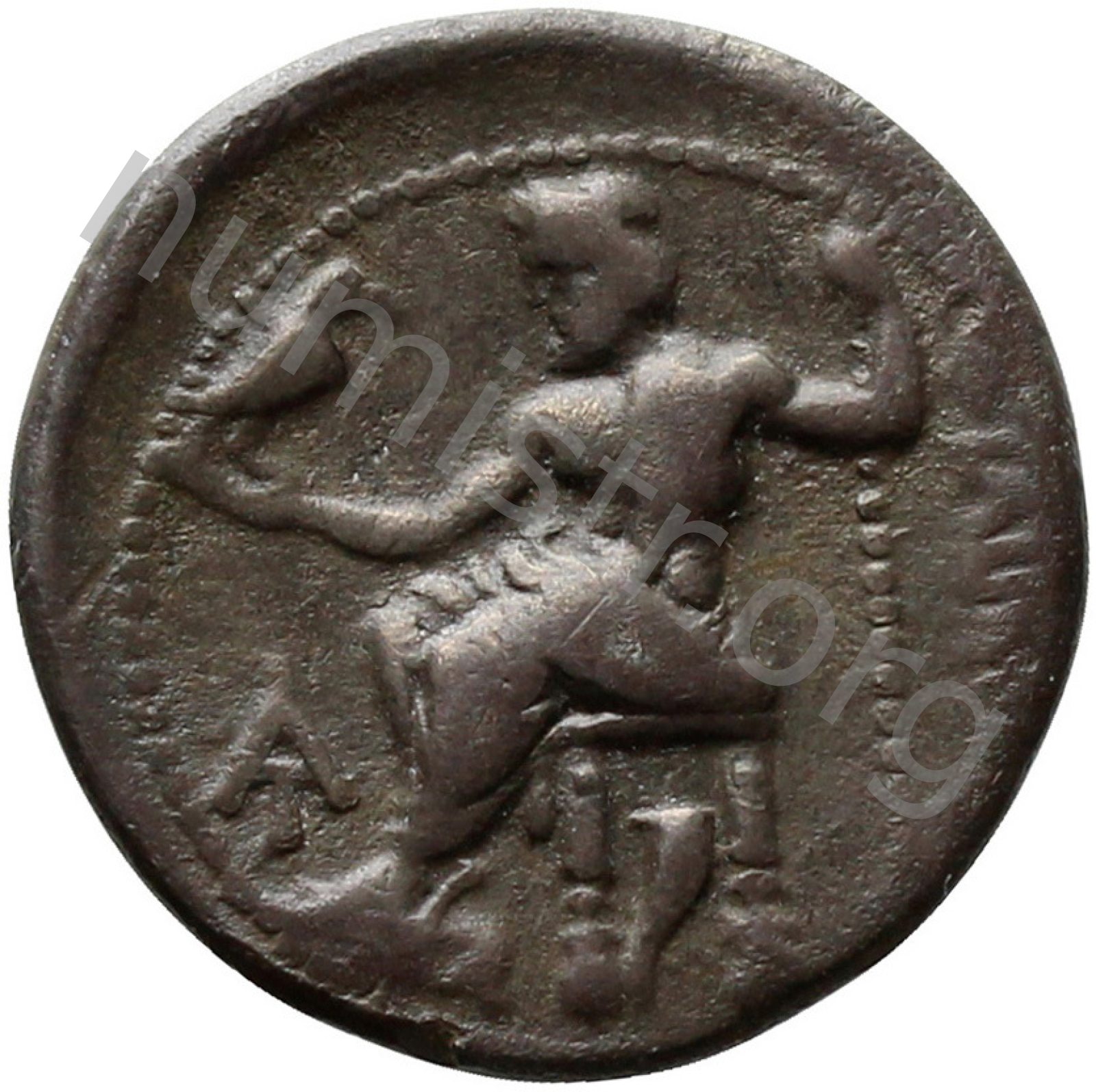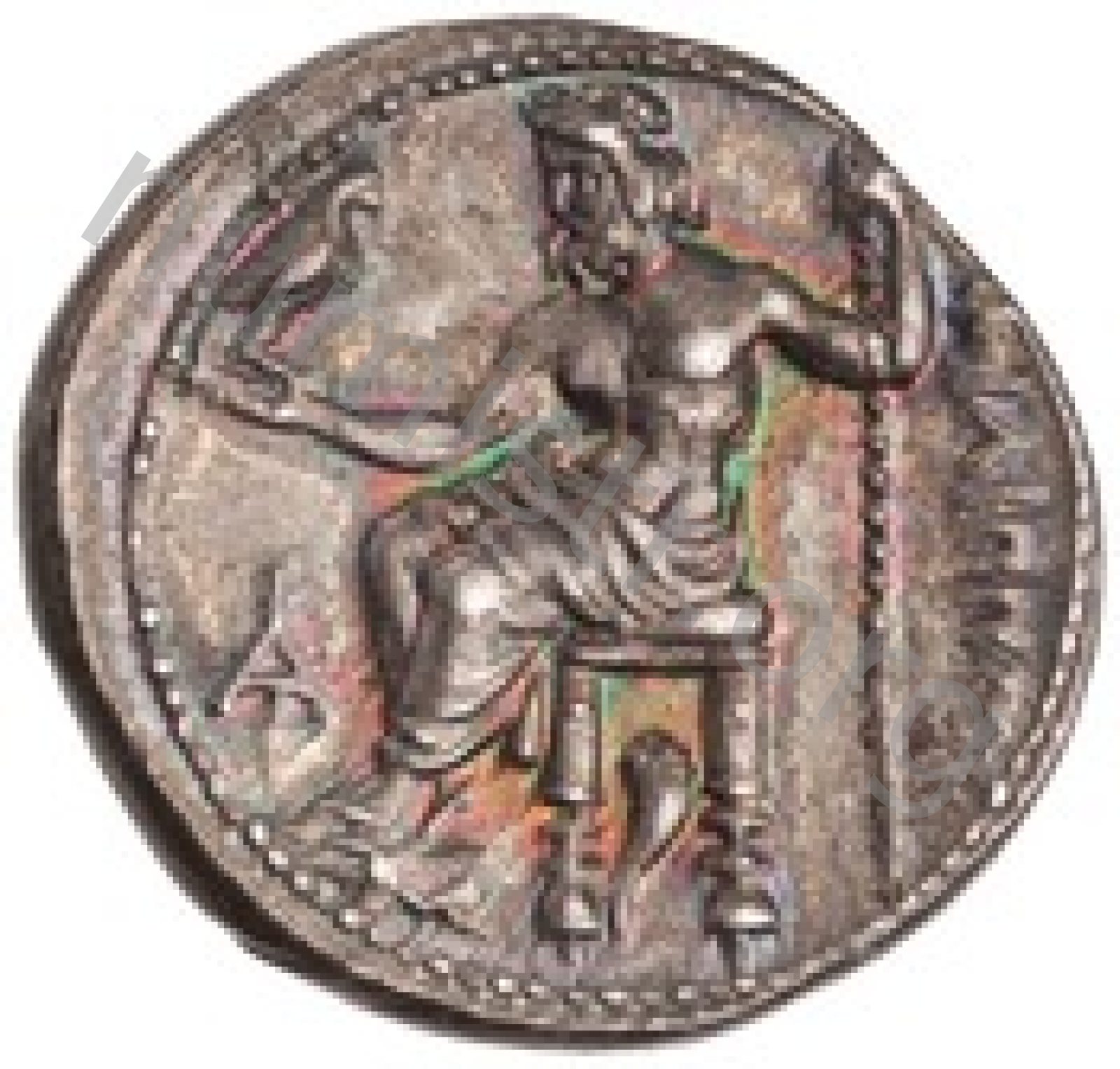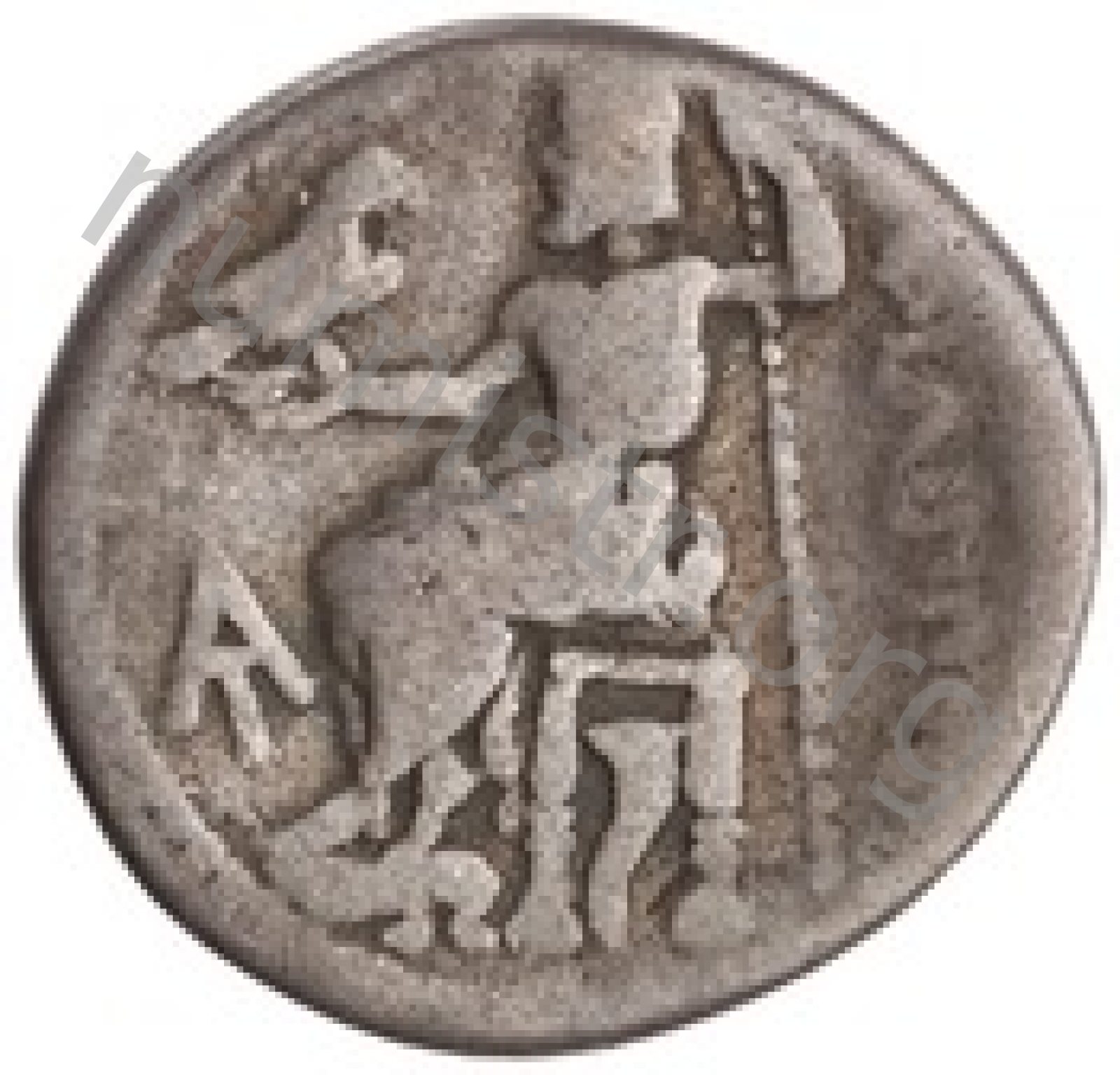 Zeus tabure-tahtta oturuyor sol elinde kartal sağ elinde asa var.