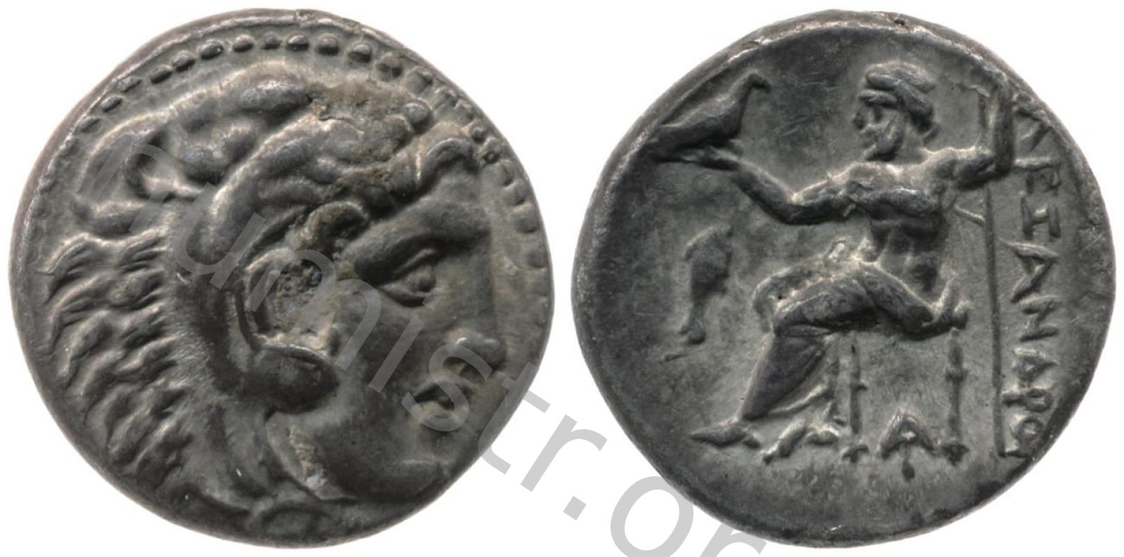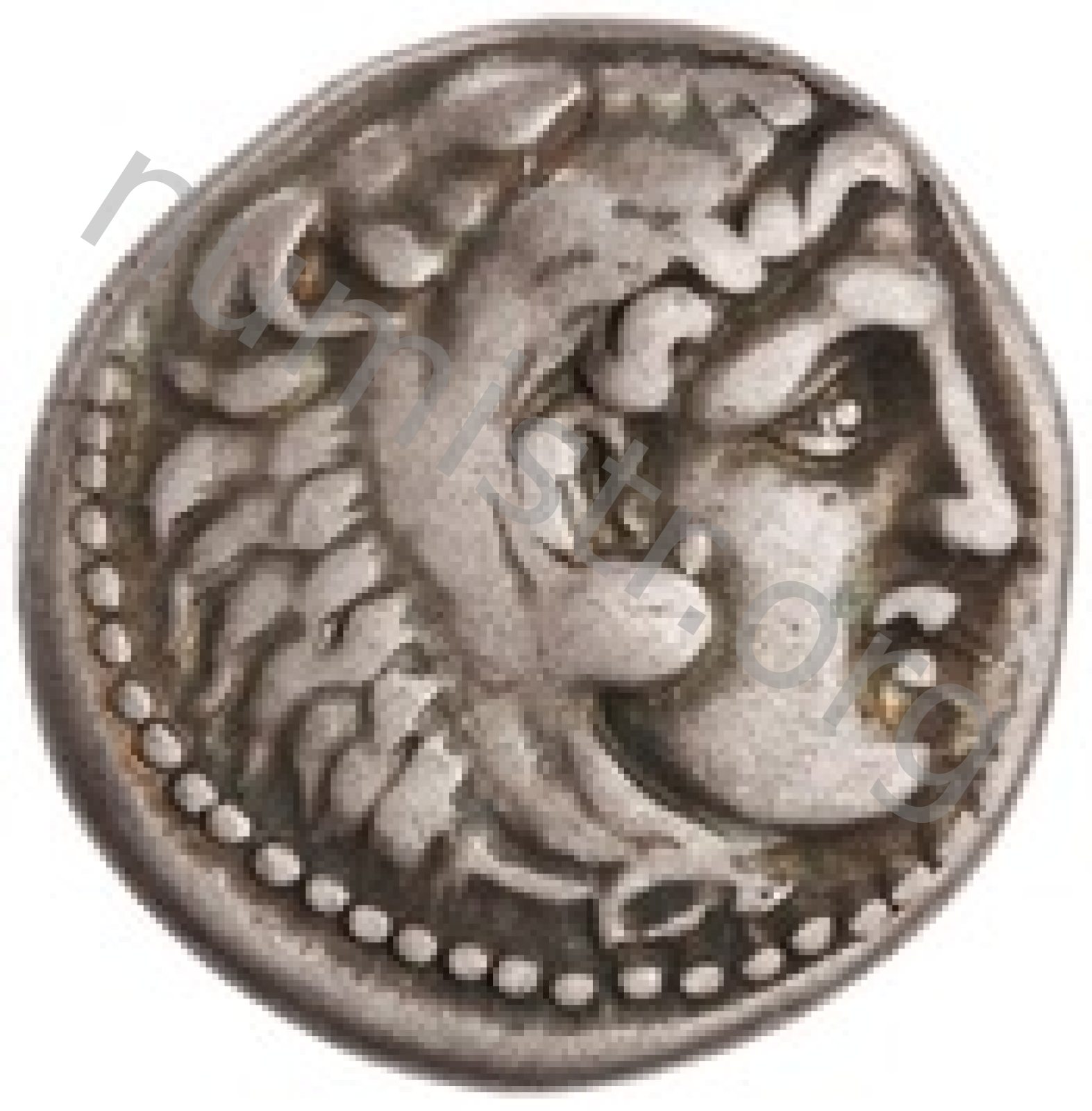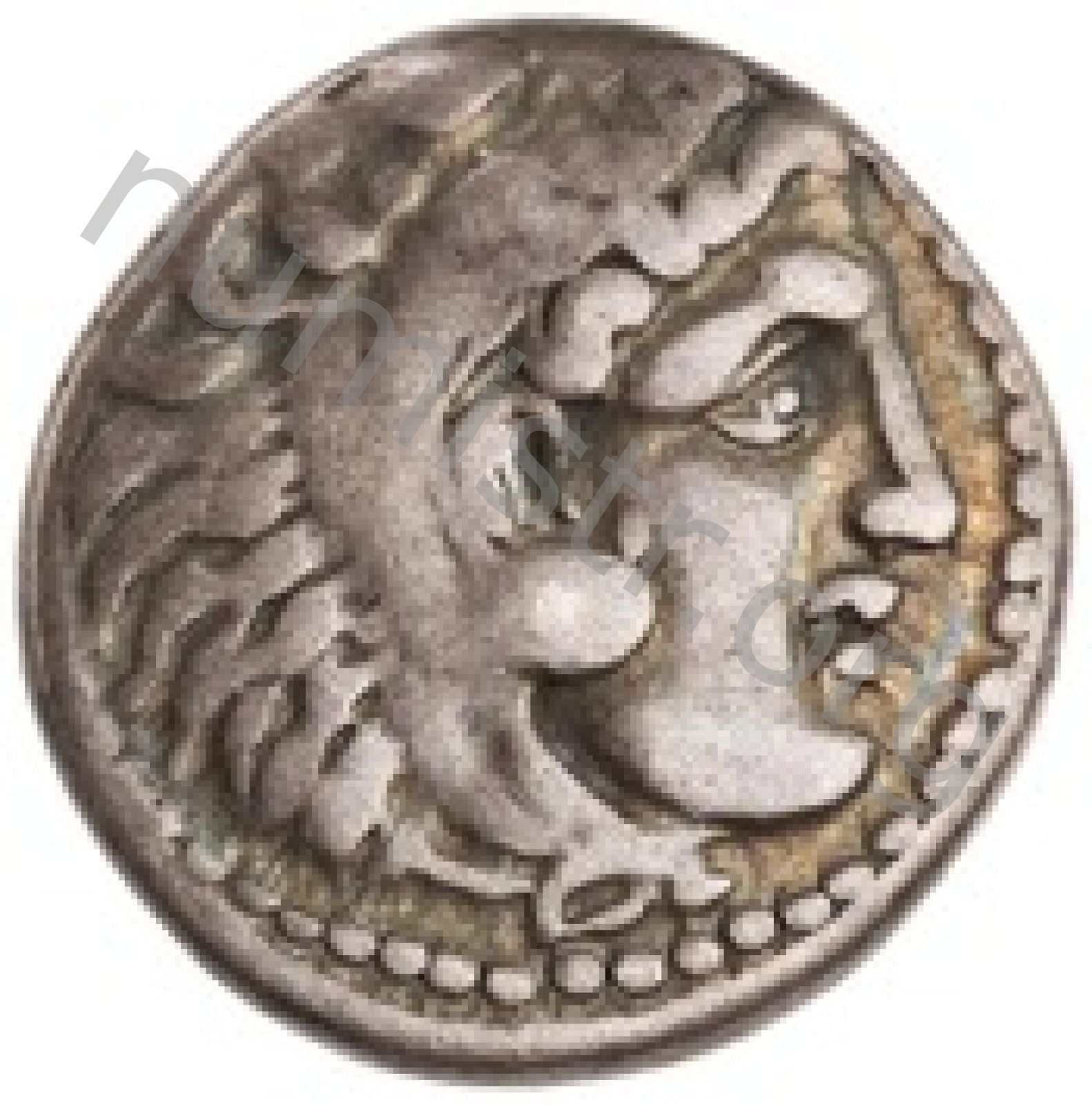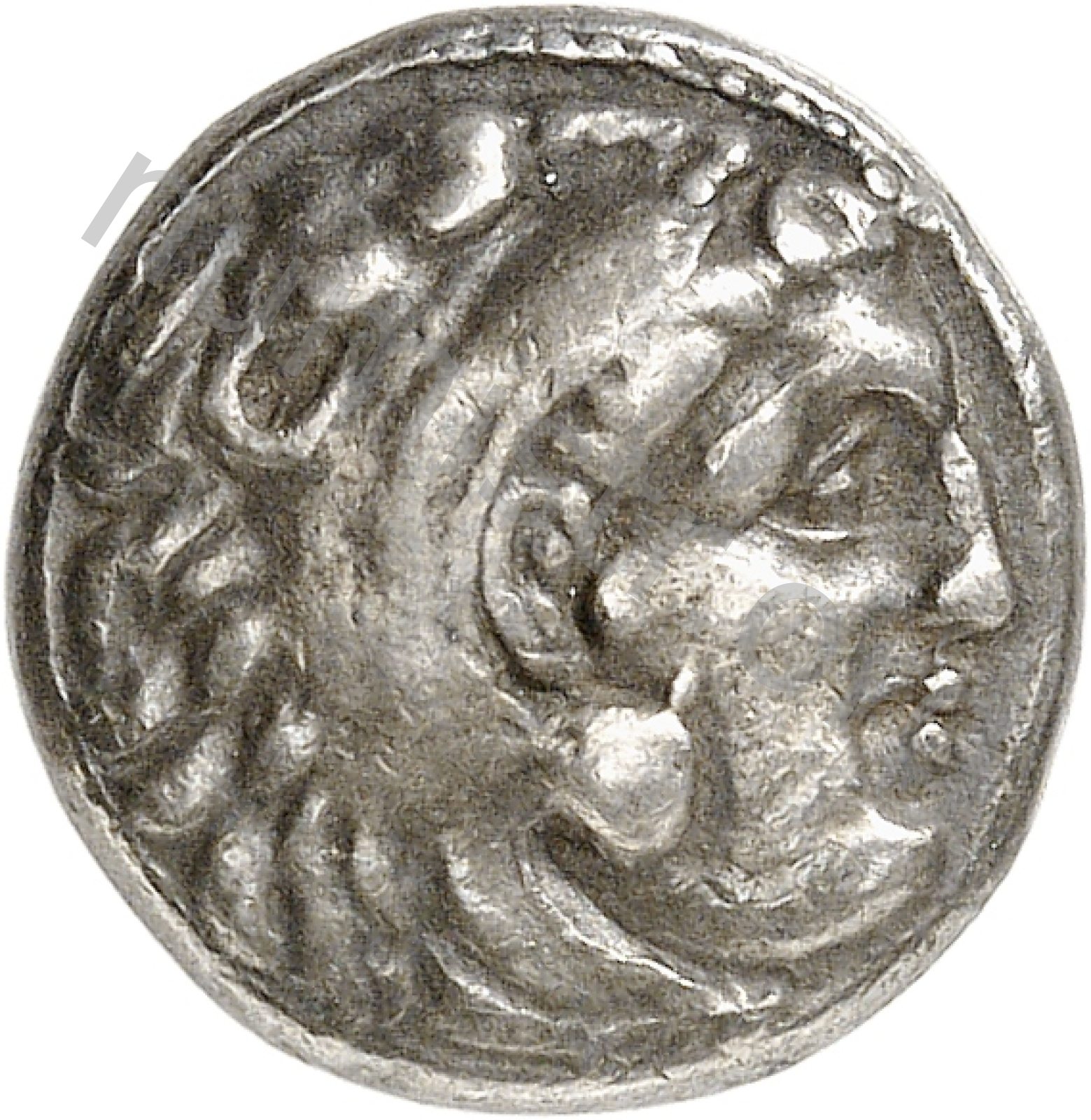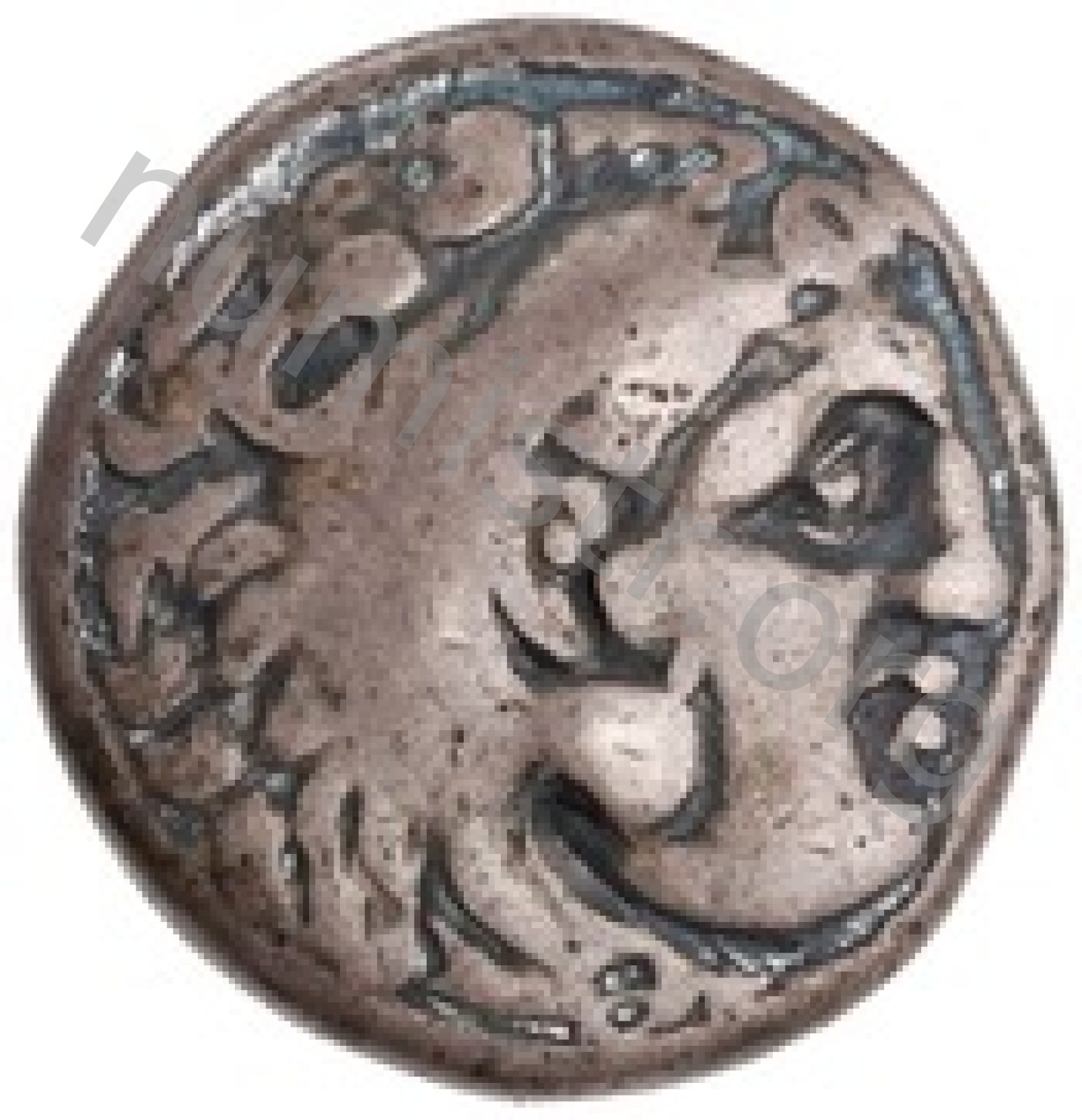 Head of beardless Heracles right wearing lion skin headdress -[en]