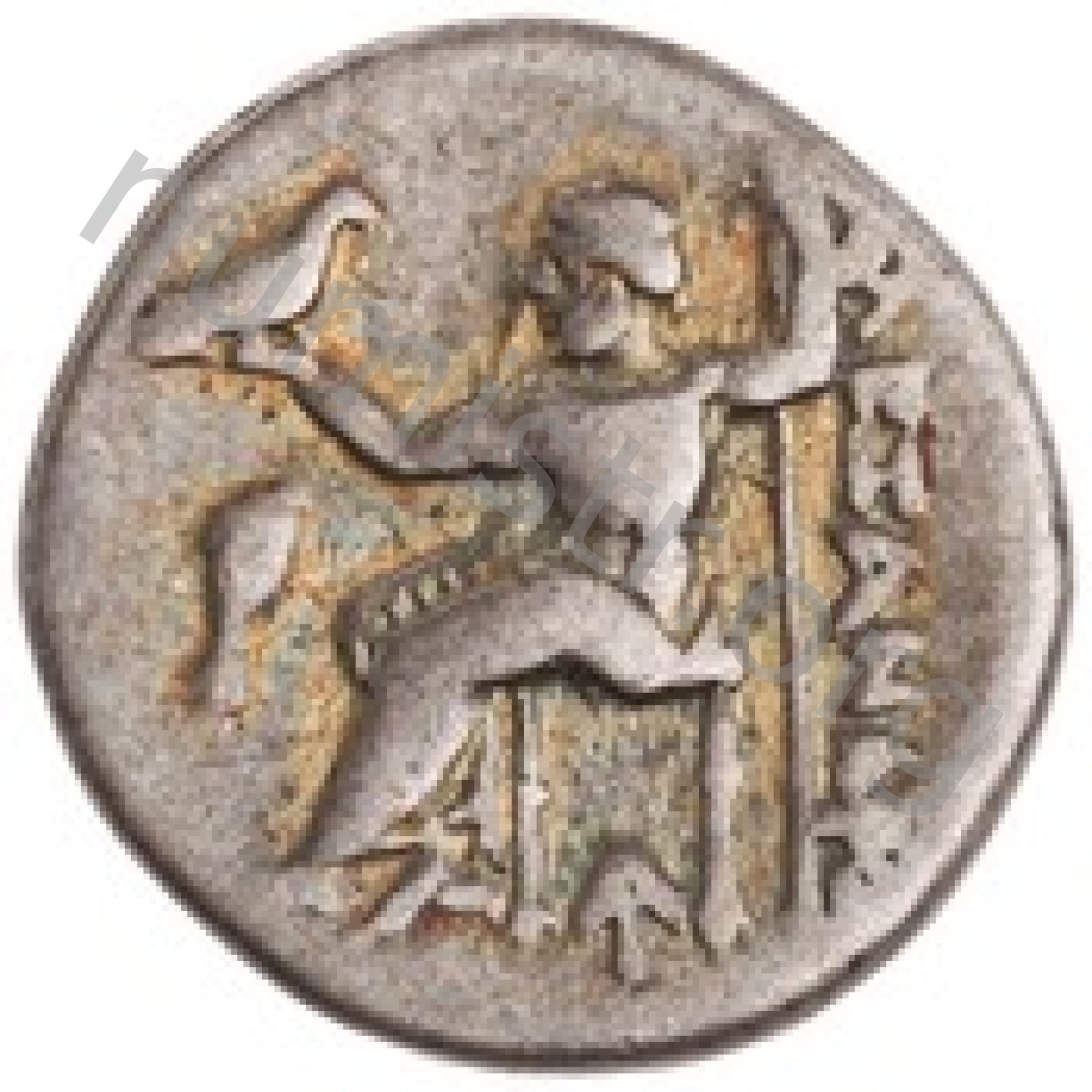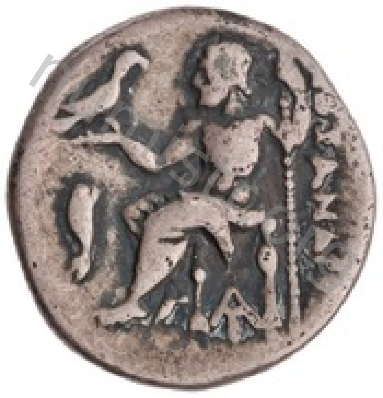 Zeus tabure-tahtta oturuyor sol elinde kartal sağ elinde asa var.
