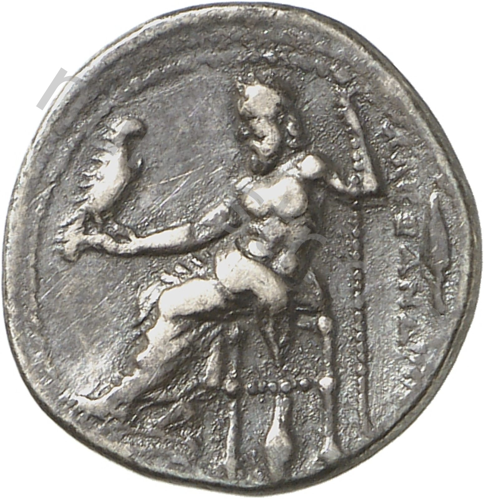 Zeus seated on stool-throne left eagle on outstretched right hand sceptre in left hand -[en]