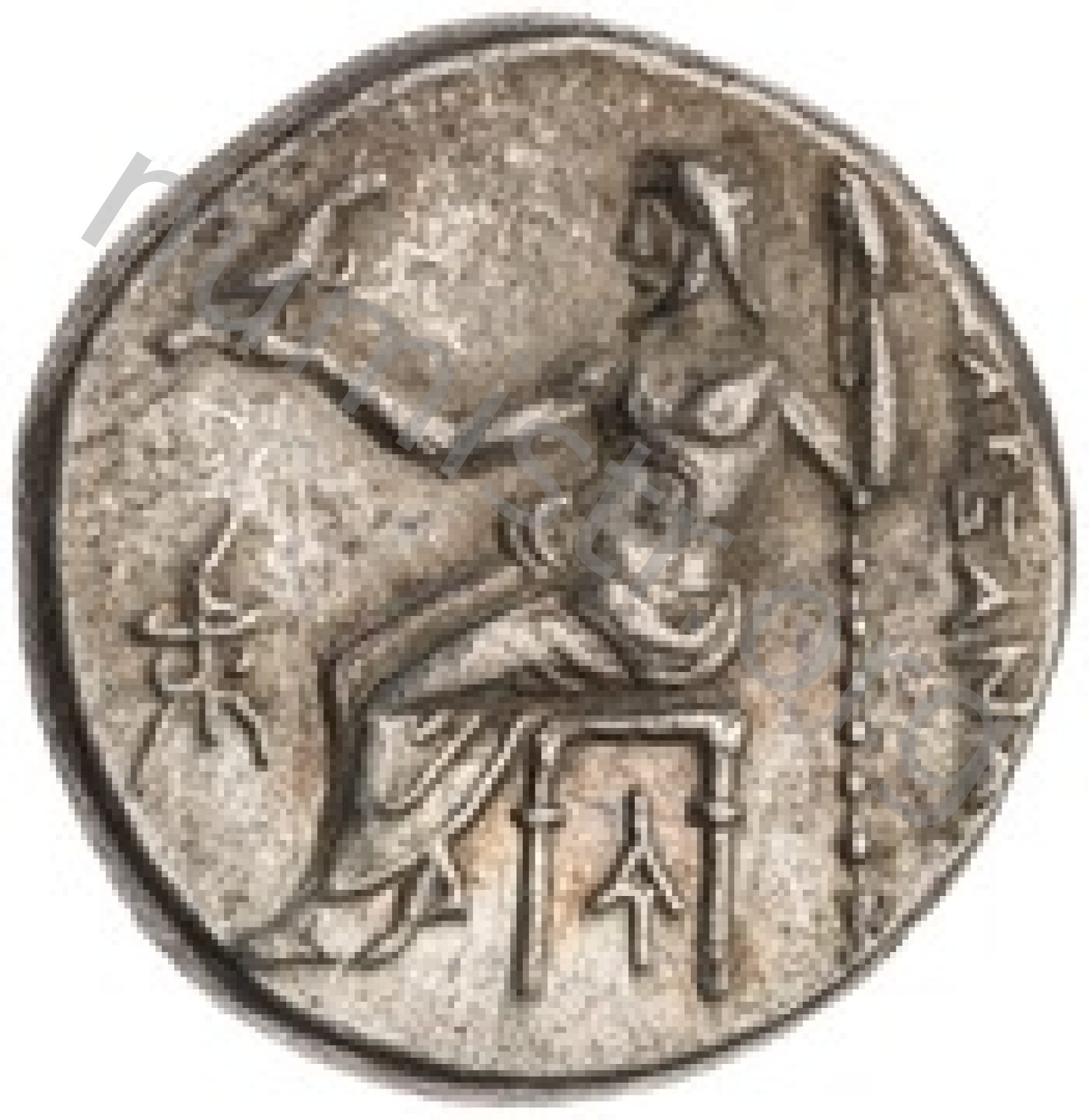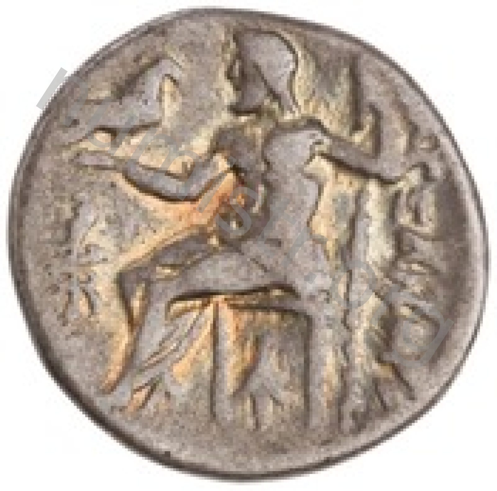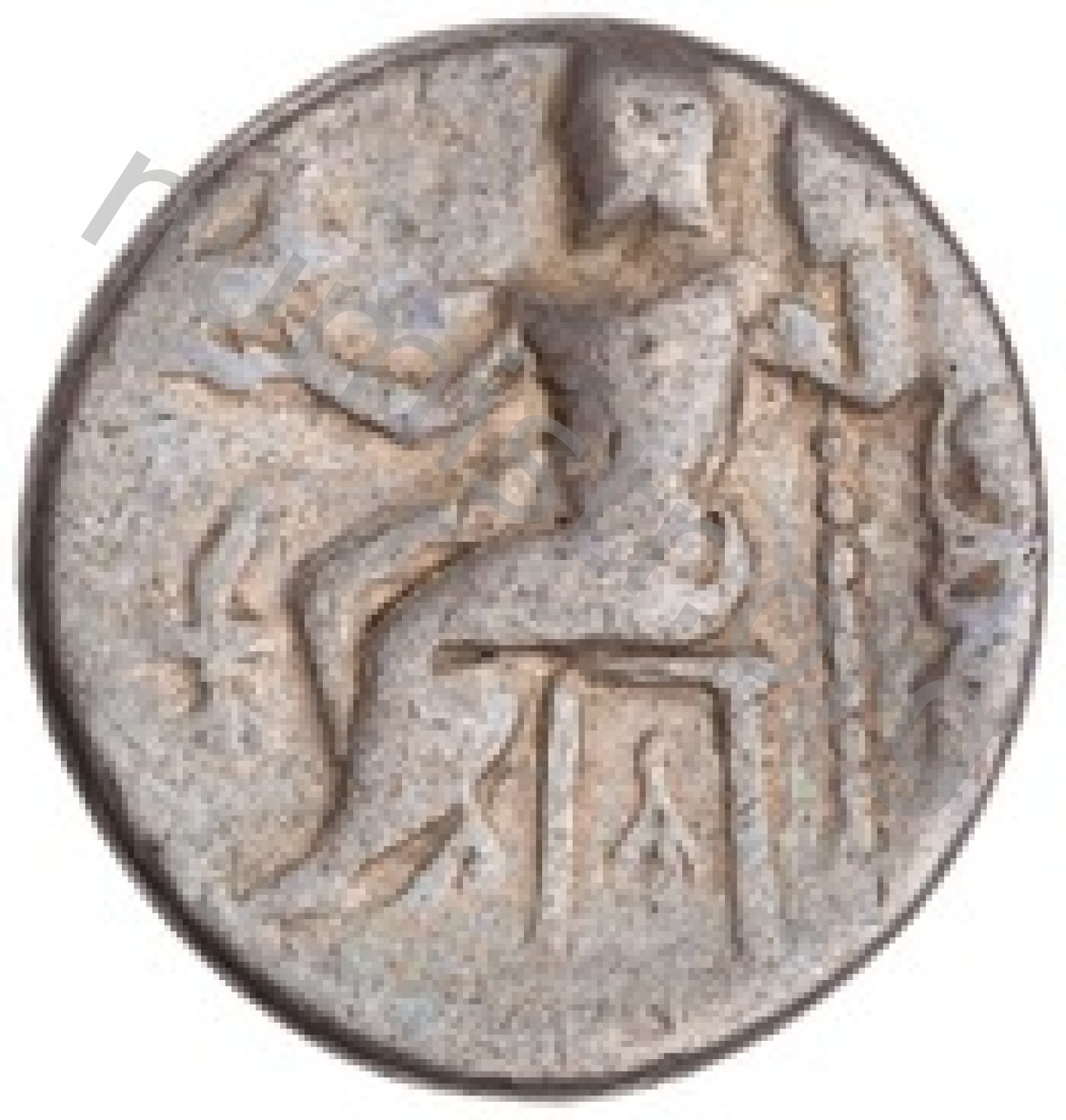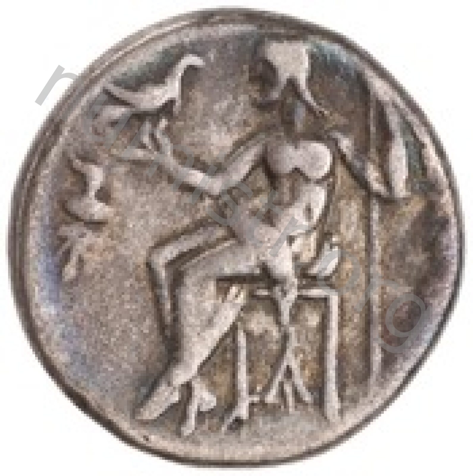 Zeus tabure-tahtta oturuyor sol elinde kartal sağ elinde asa var.