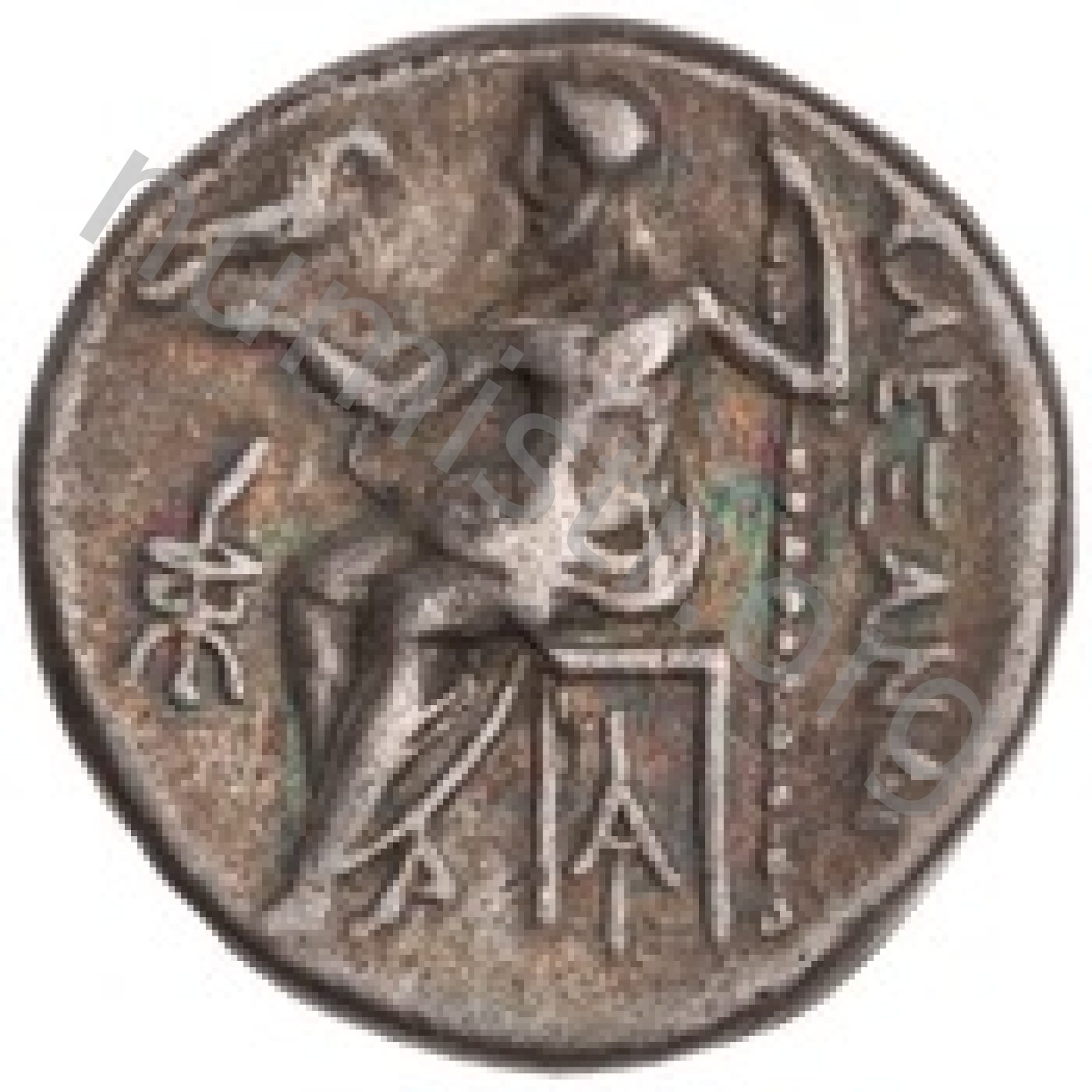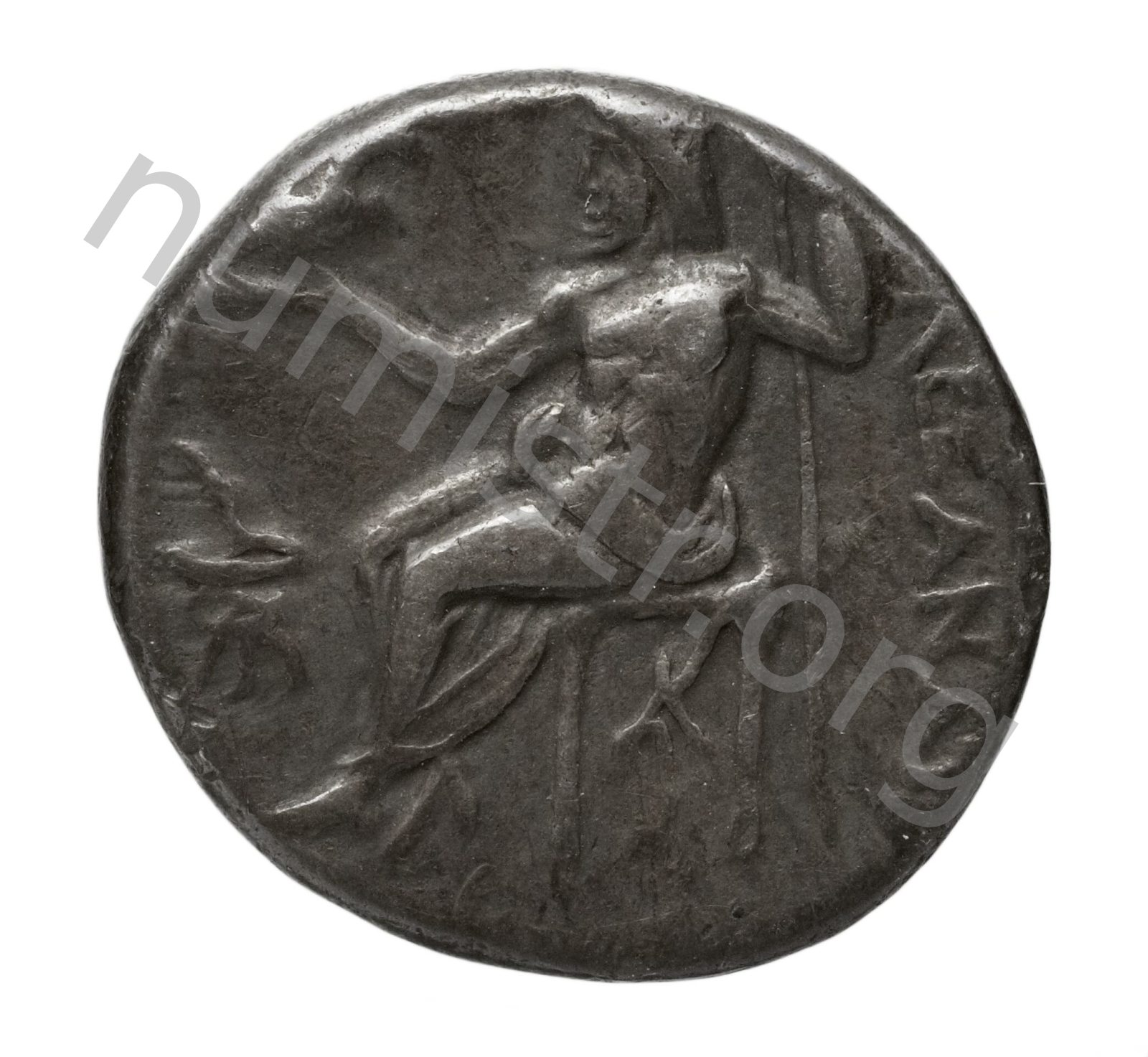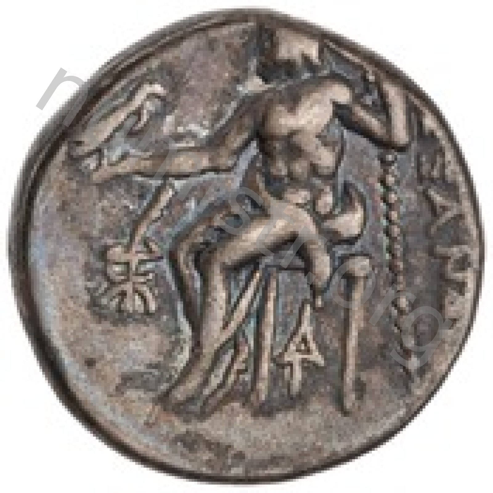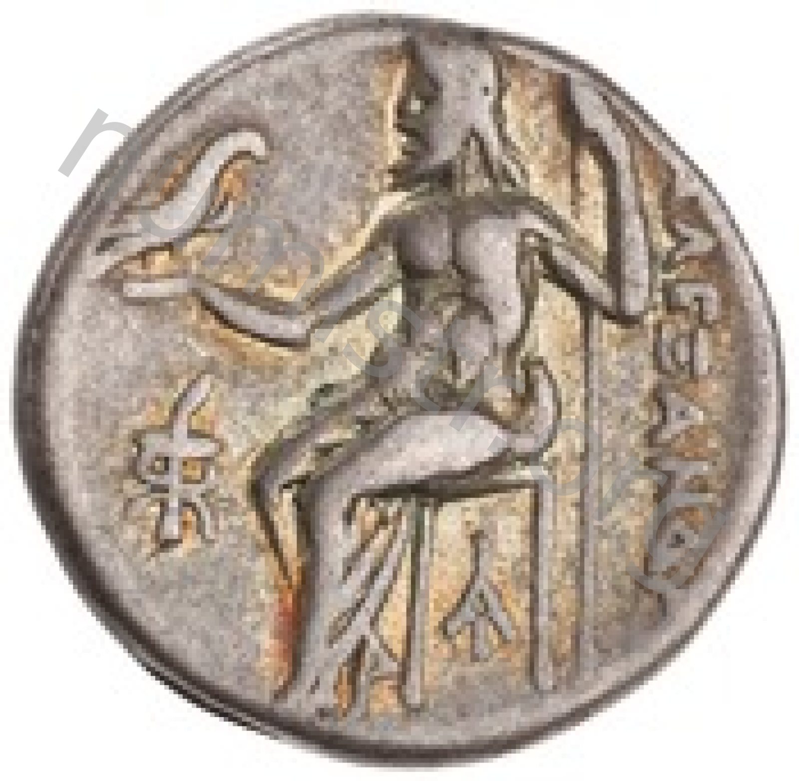 Zeus tabure-tahtta oturuyor sol elinde kartal sağ elinde asa var.