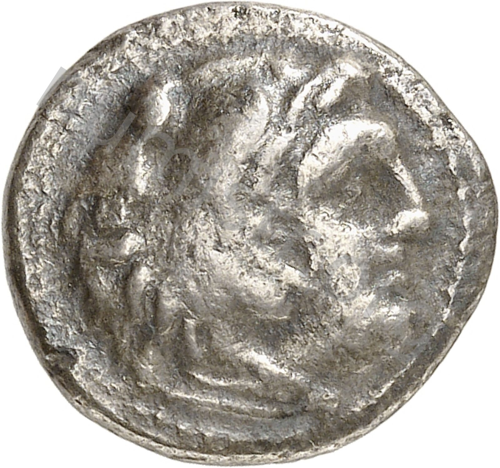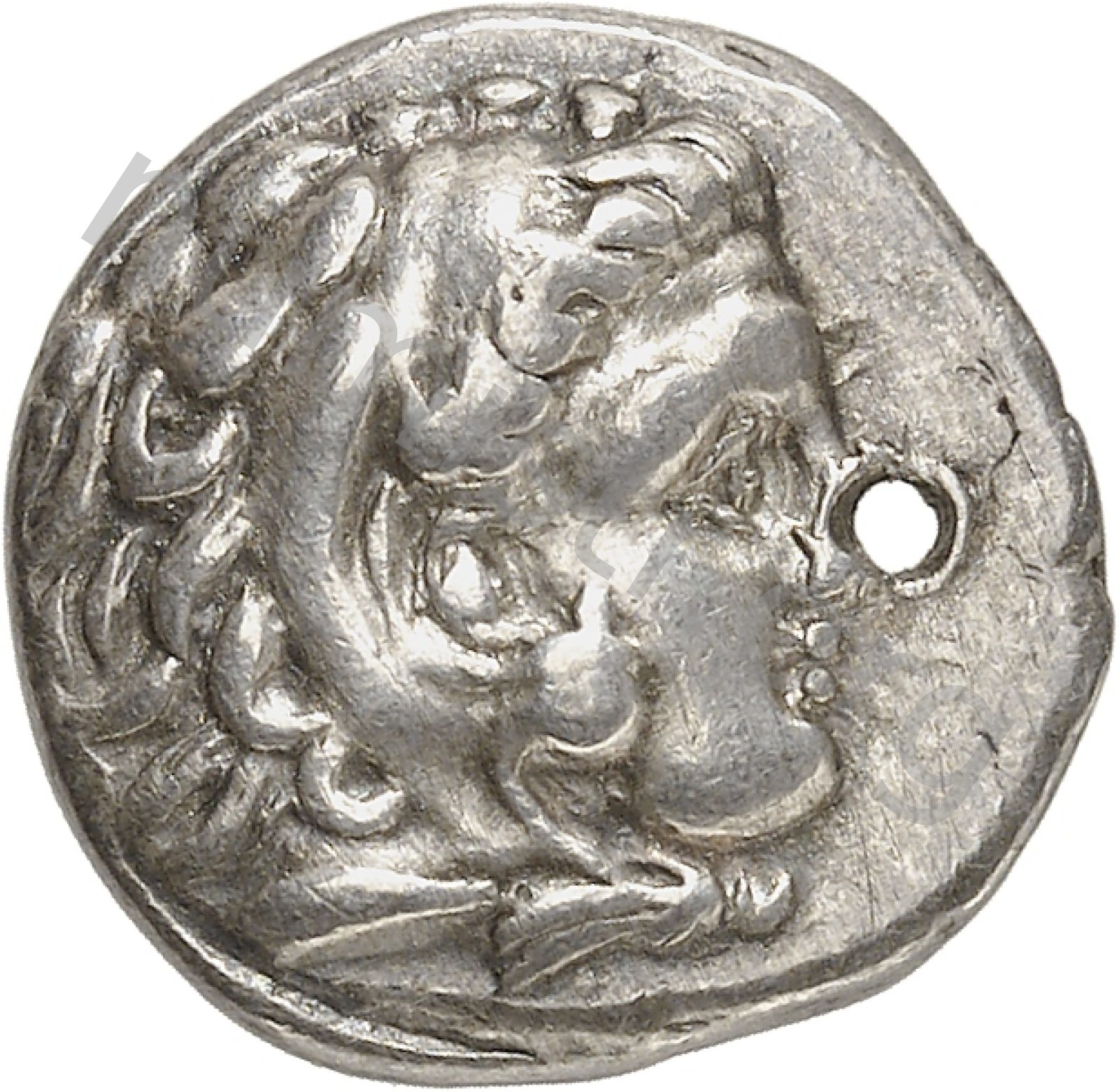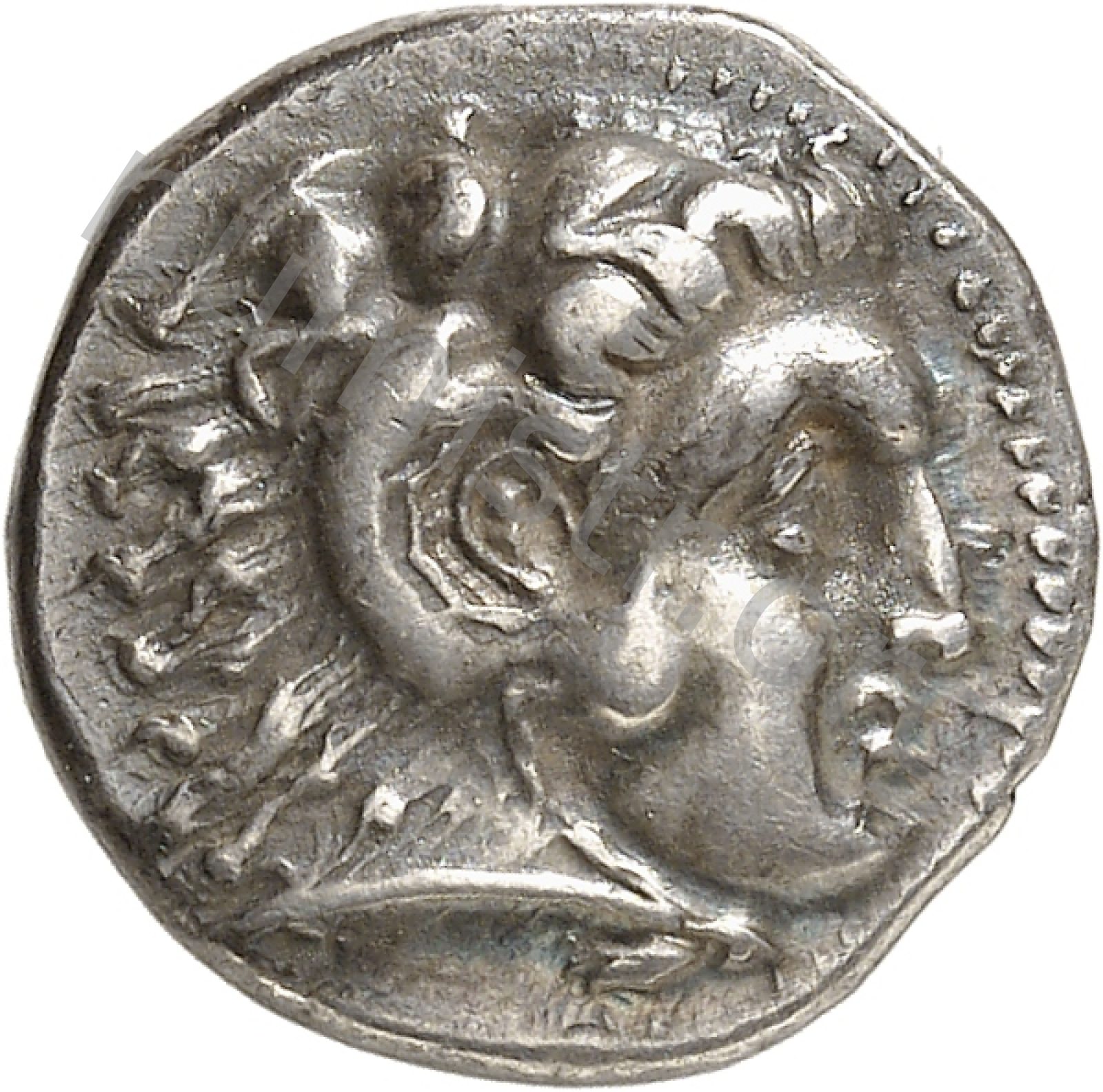 Head of beardless Heracles right wearing lion skin headdress -[en]