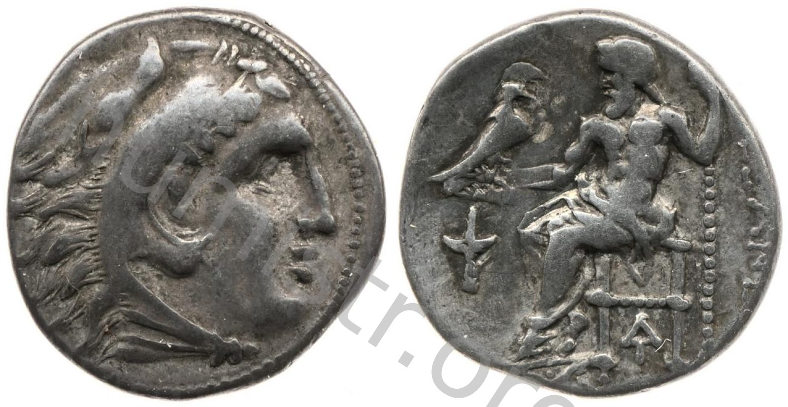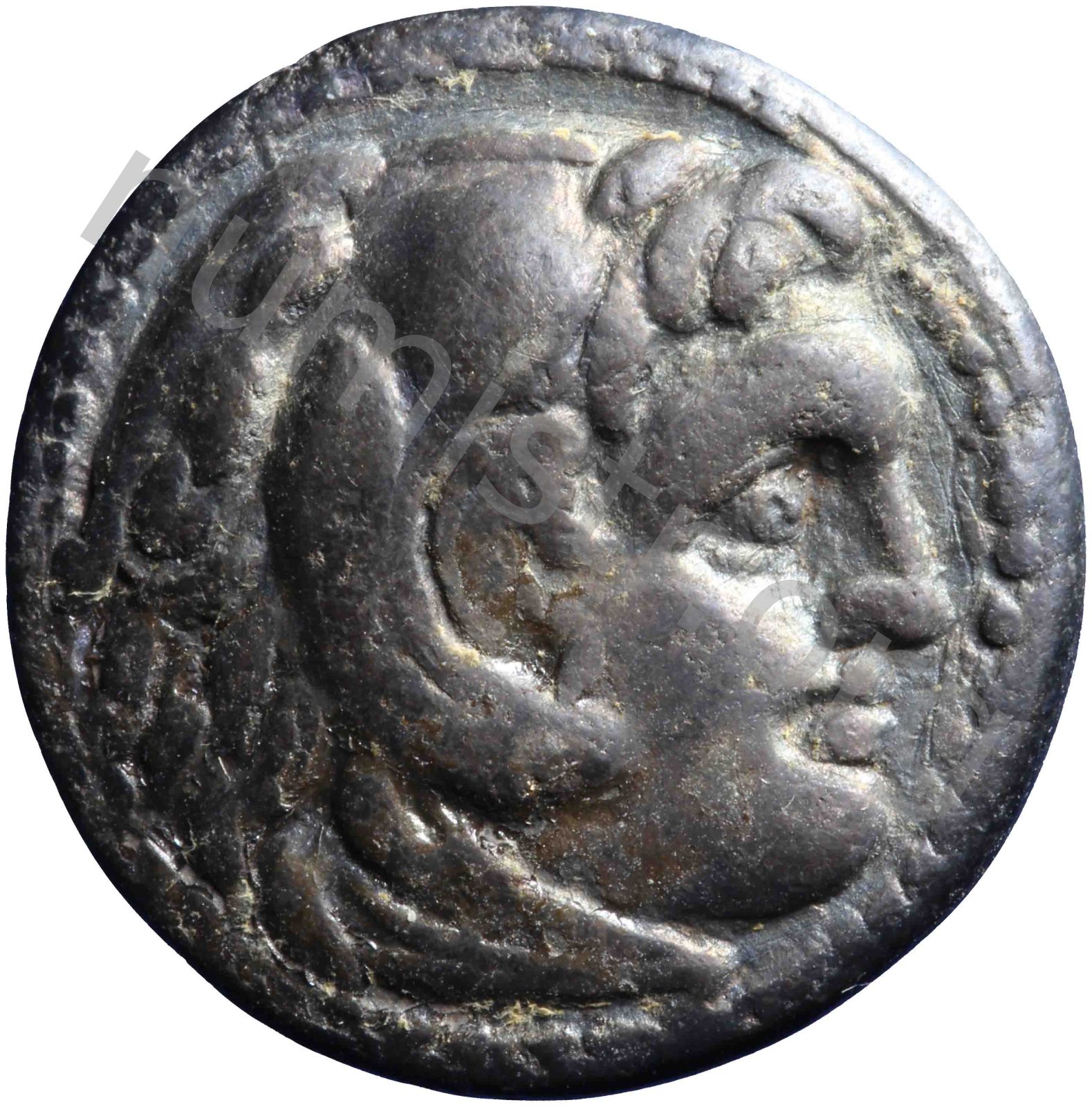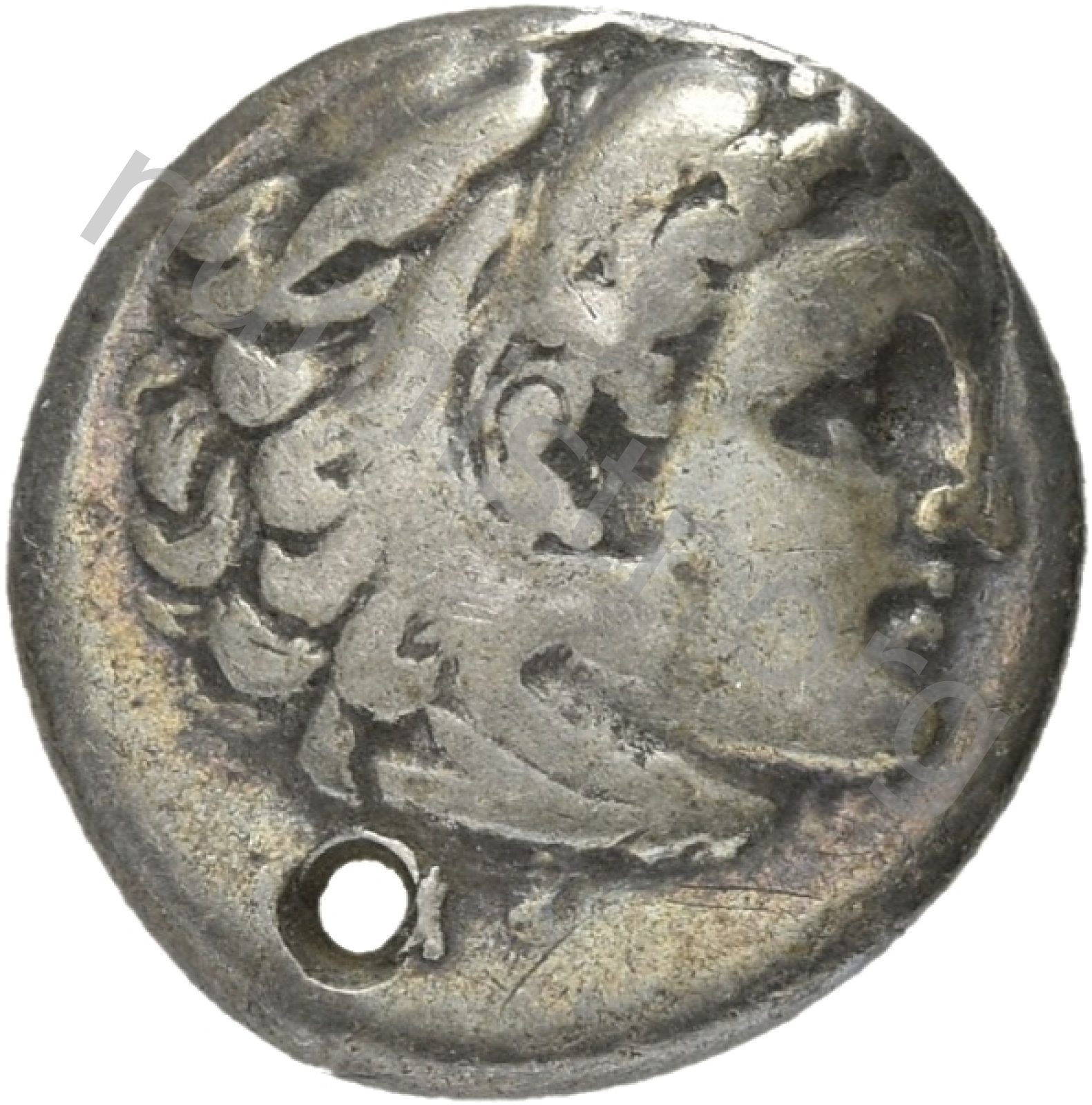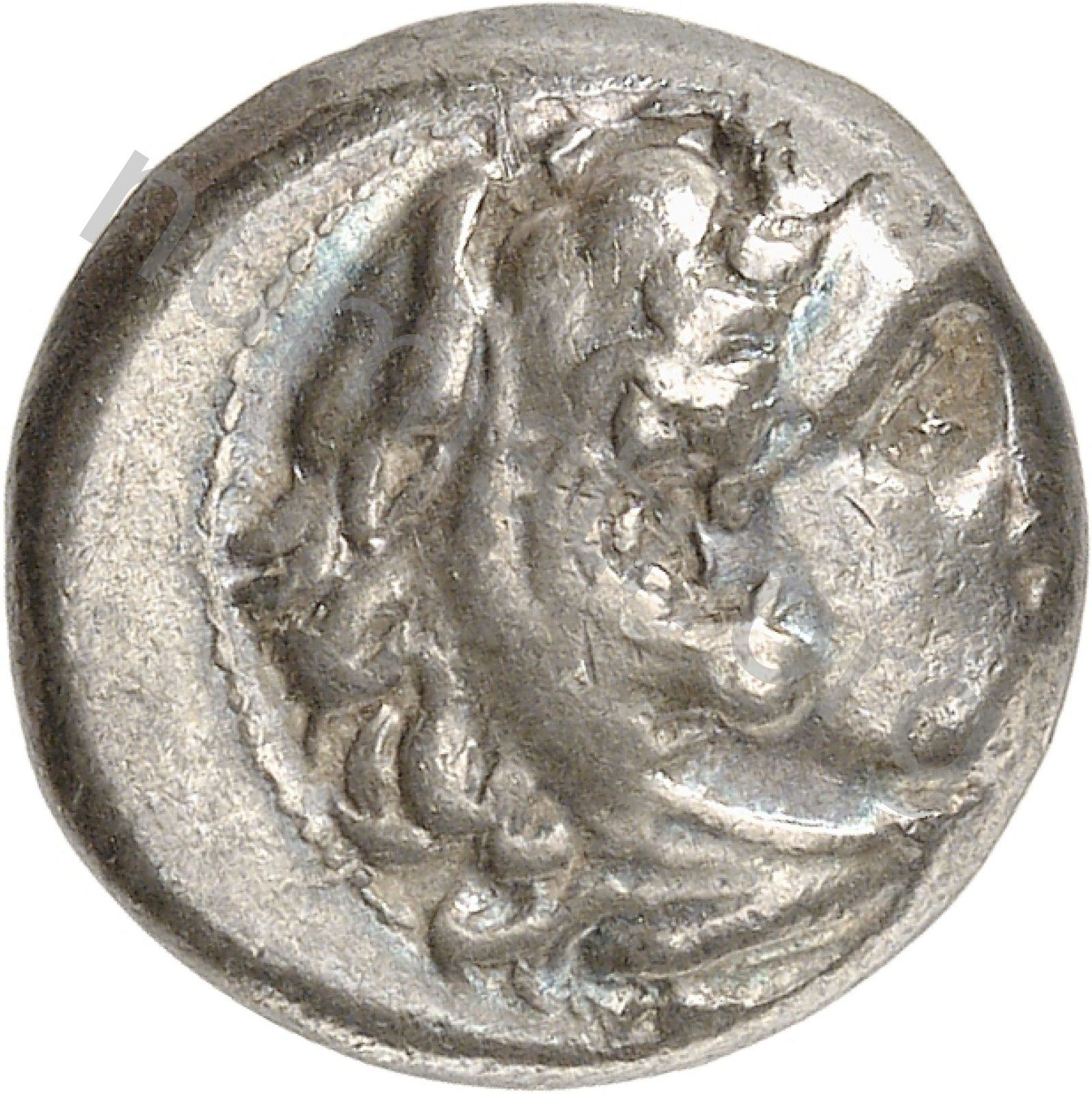 Head of beardless Heracles right wearing lion skin headdress -[en]