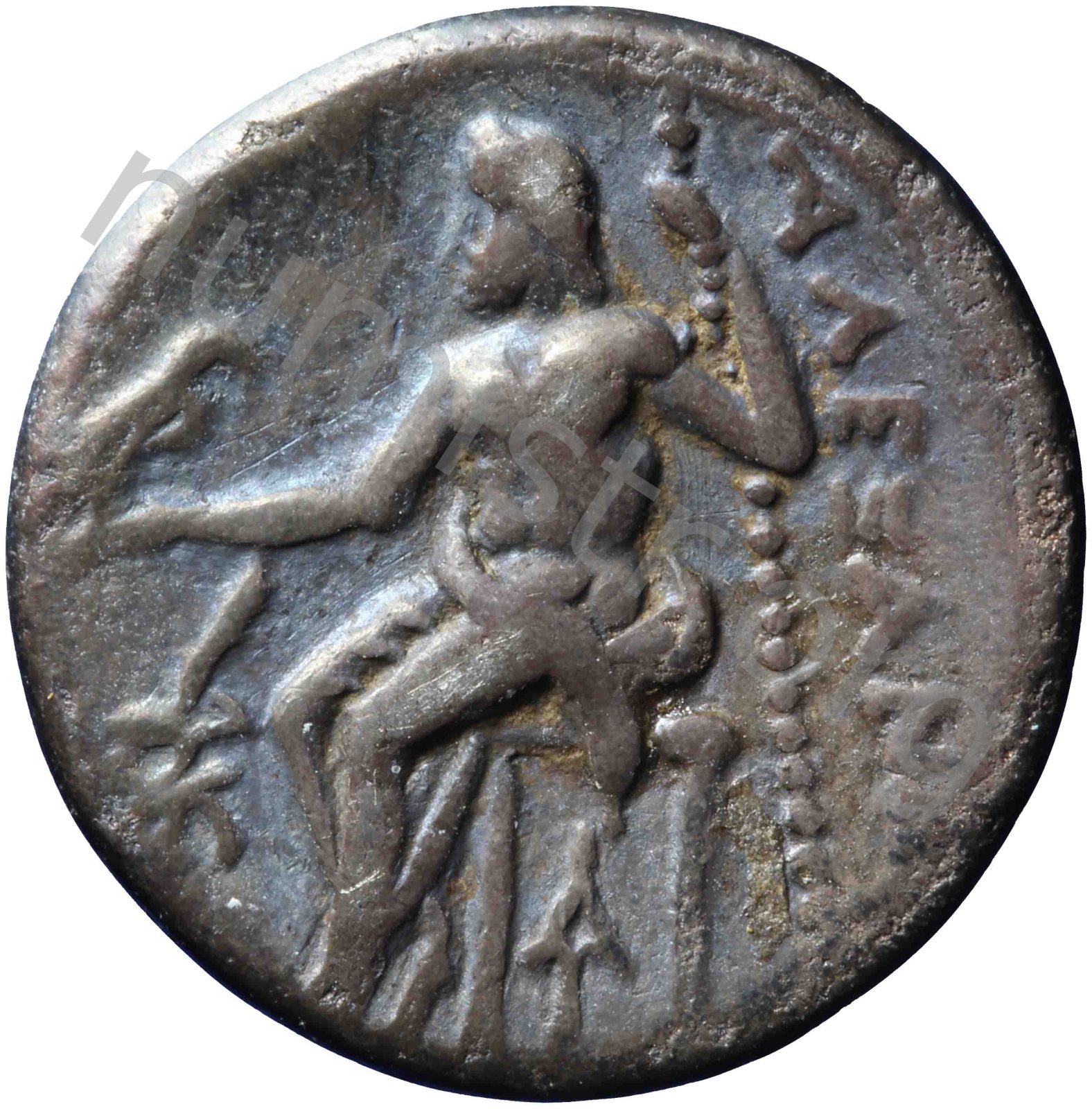 Zeus tabure-tahtta oturuyor sol elinde kartal sağ elinde asa var.