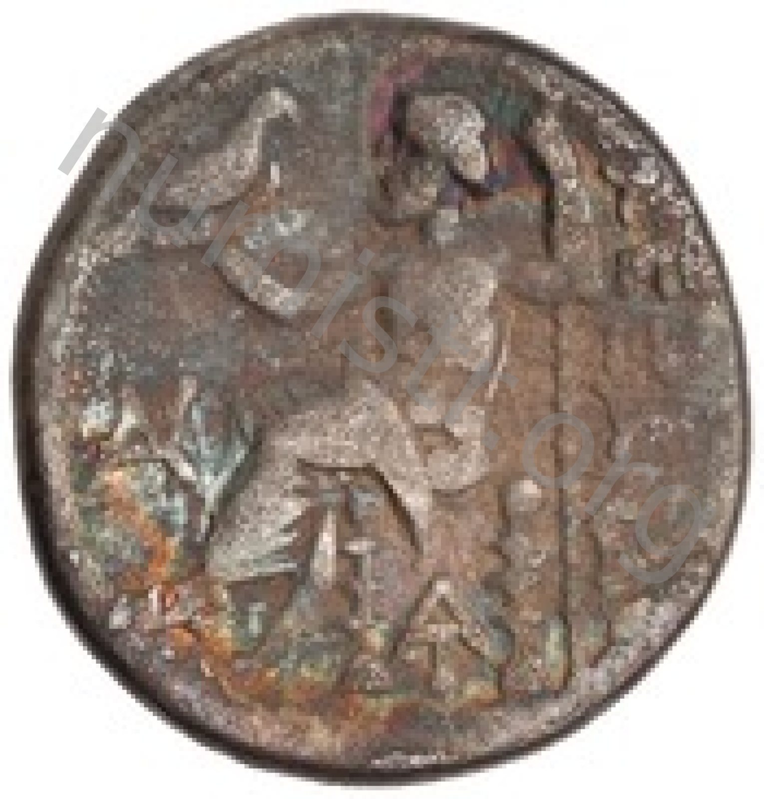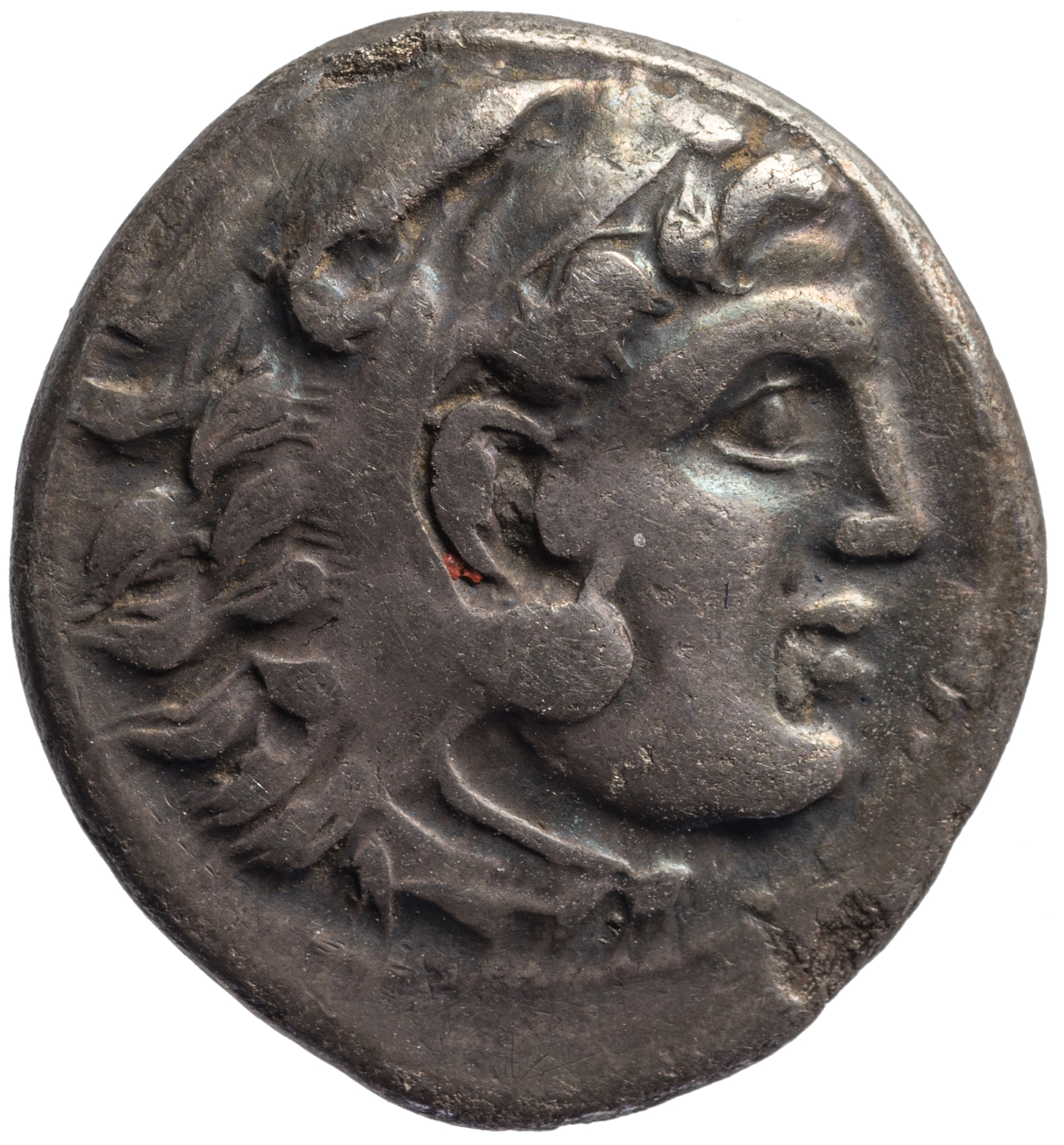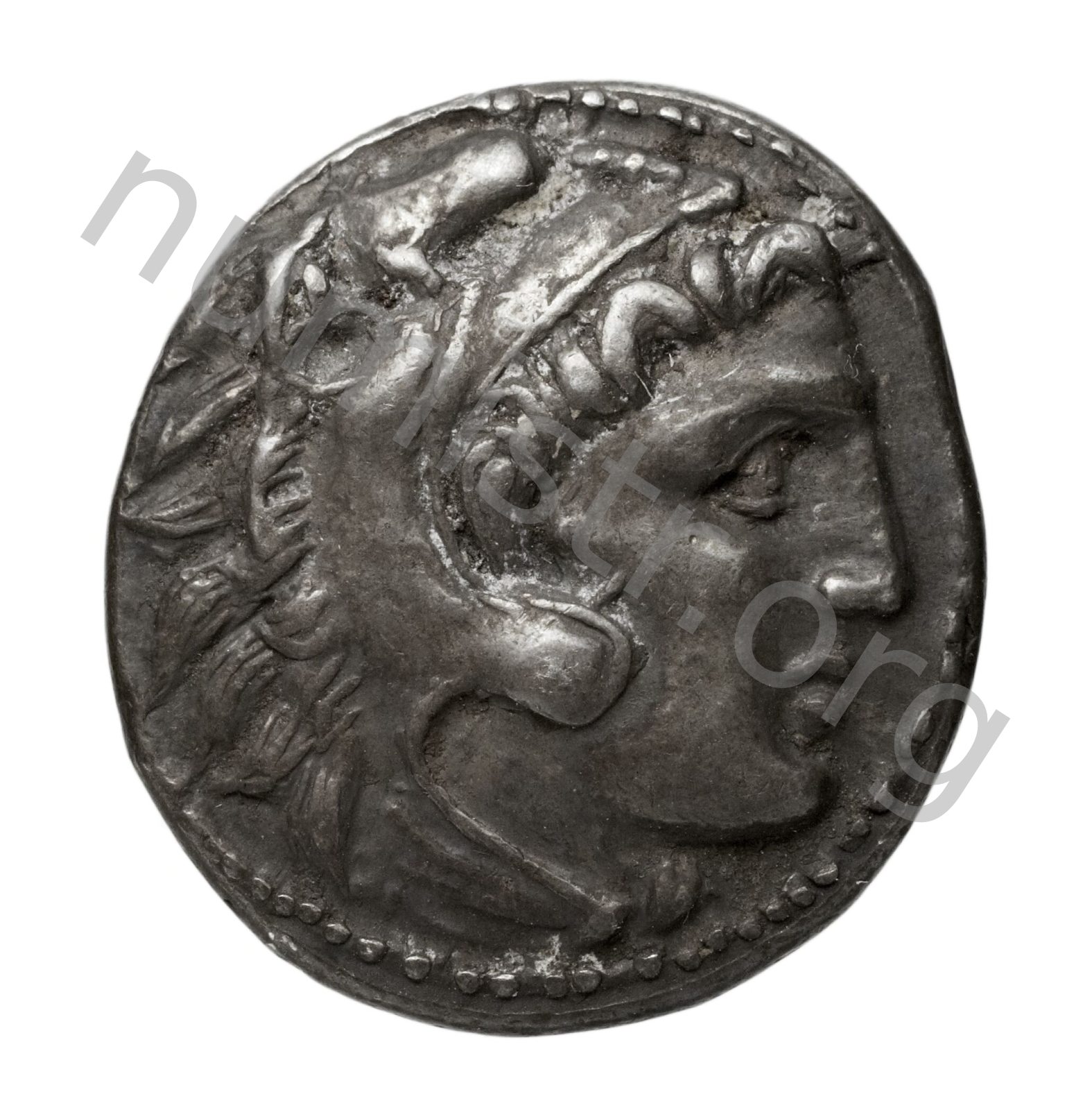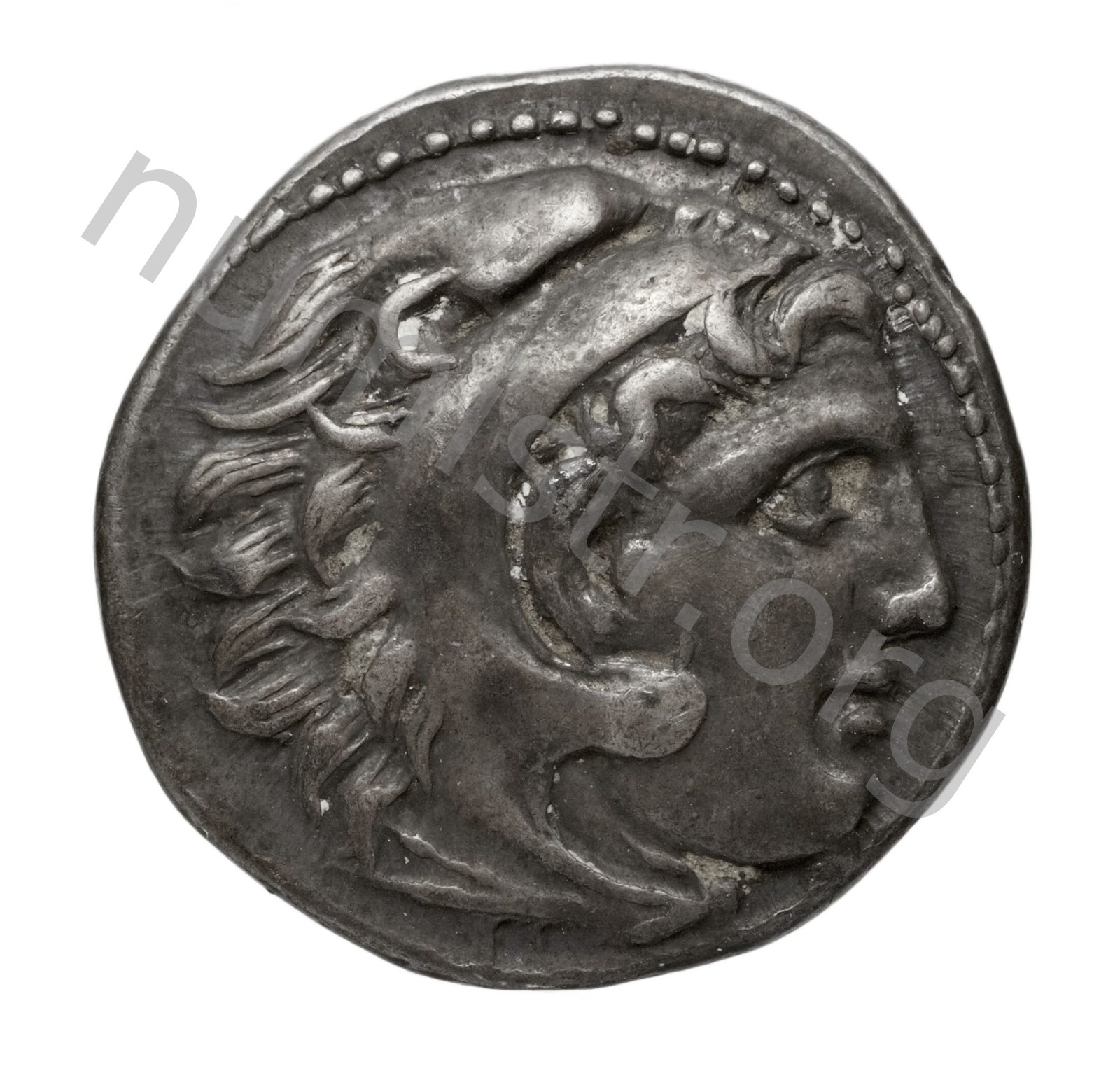 Head of beardless Heracles right wearing lion skin headdress -[en]