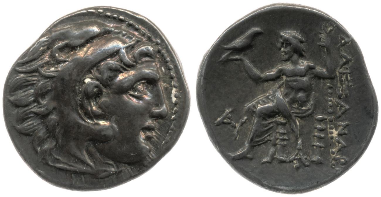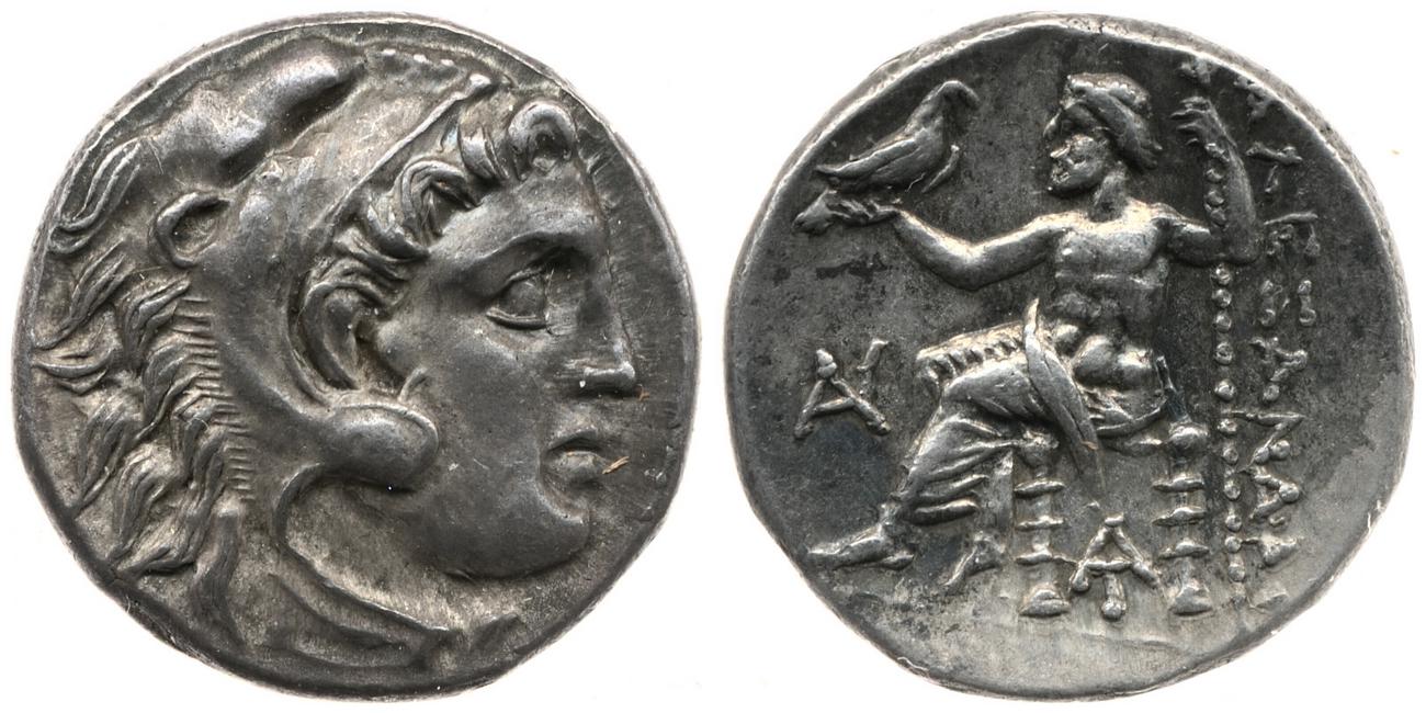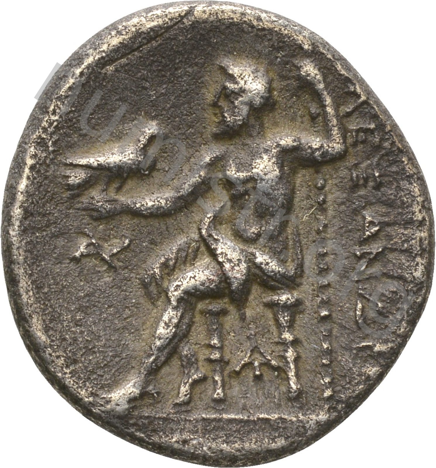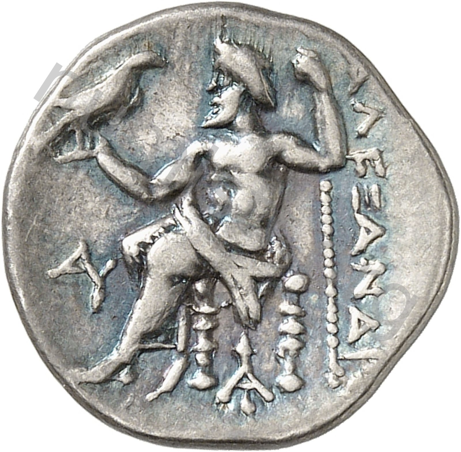 Head of beardless Heracles right wearing lion skin headdress -[en]