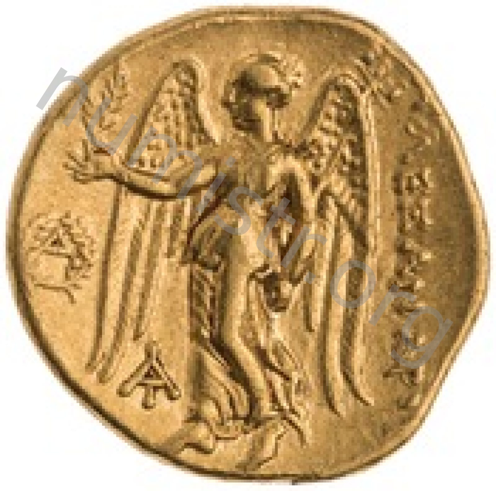 Nike standing left holding wreath in right hand and stylis in her left hand -[en]
