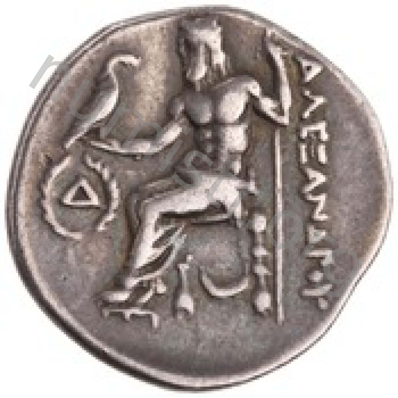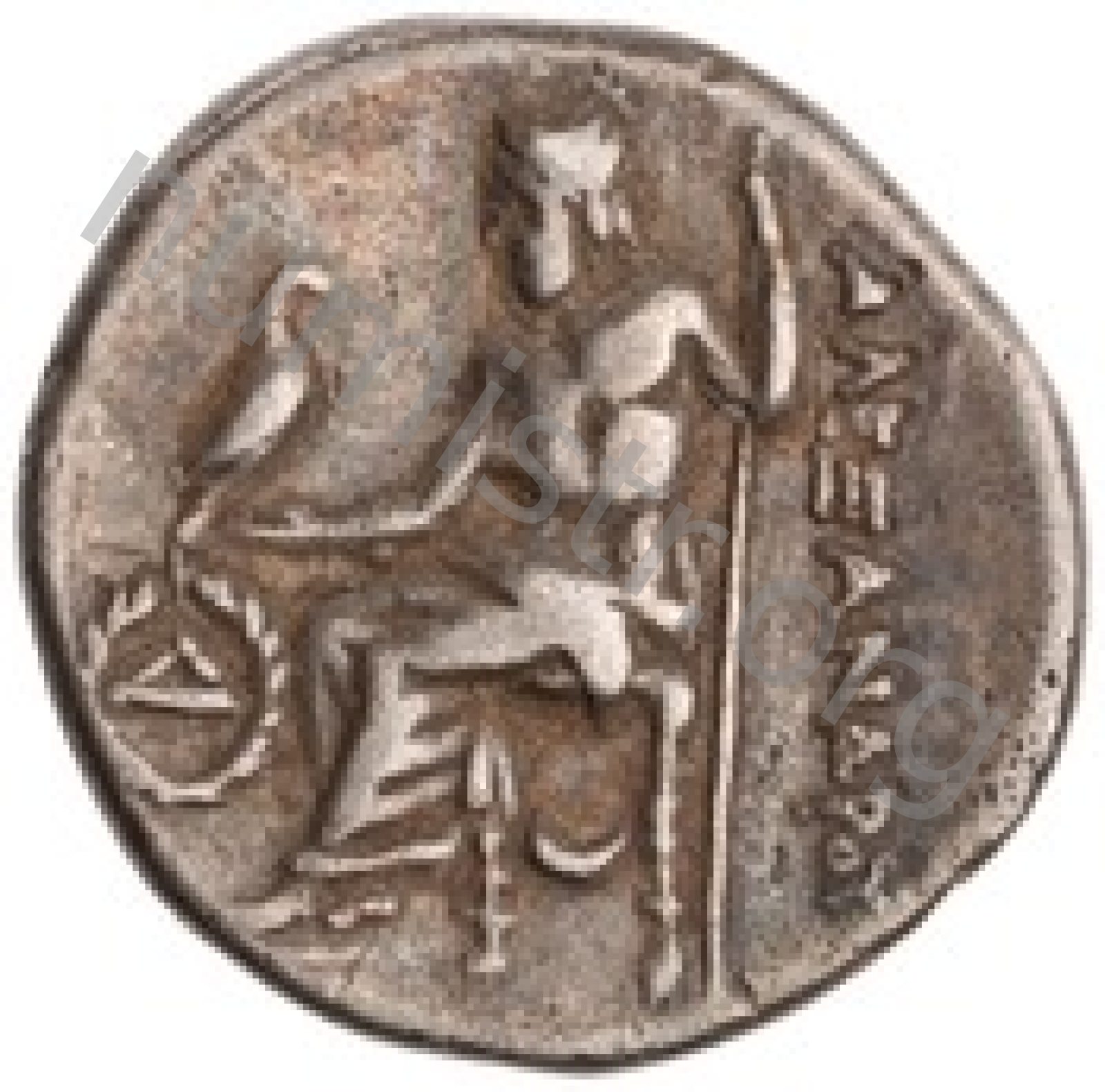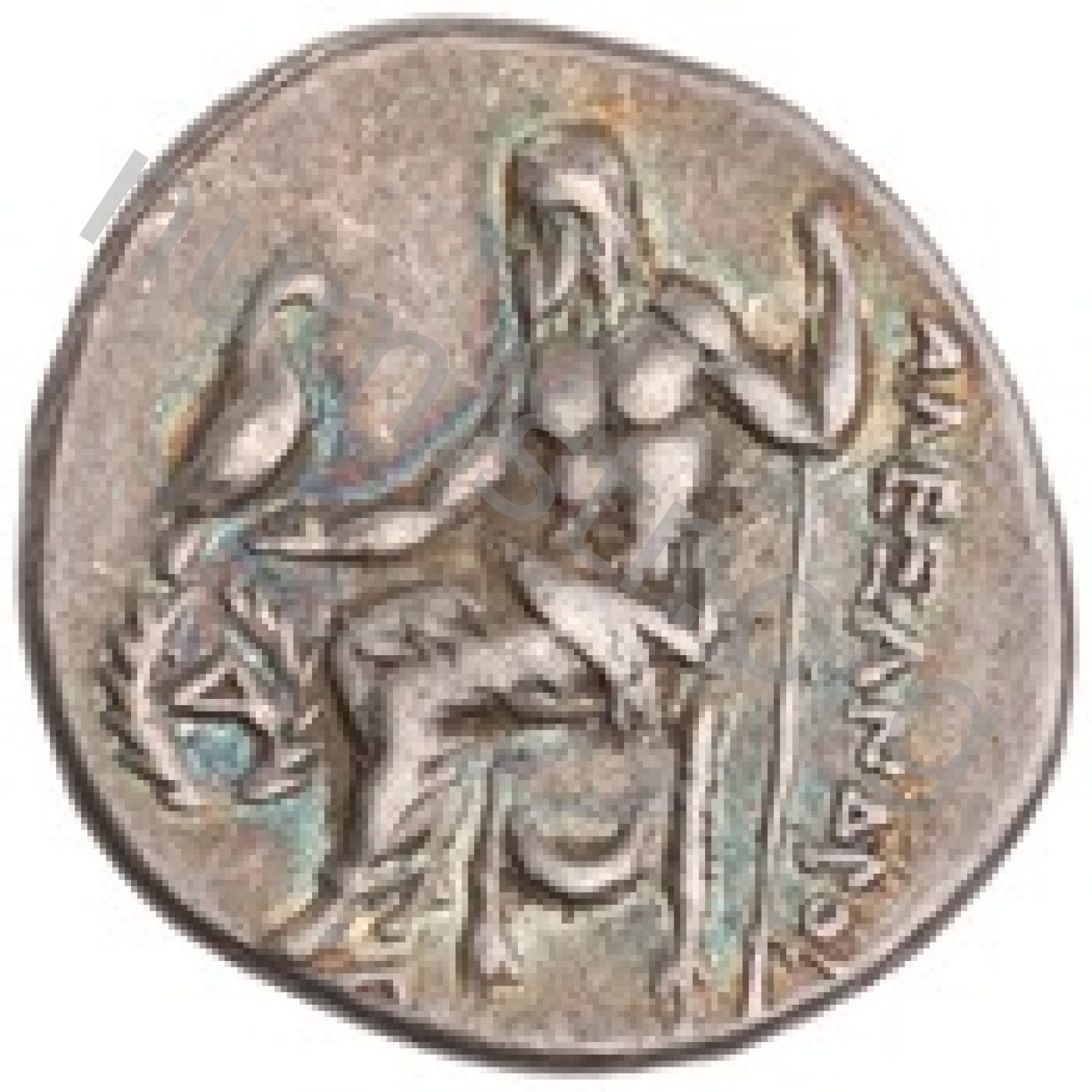 Zeus tabure-tahtta oturuyor sol elinde kartal sağ elinde asa var.