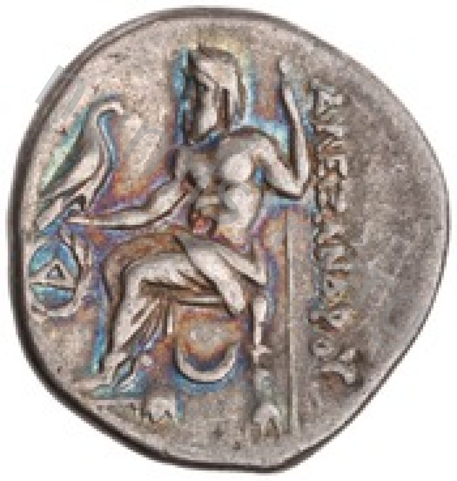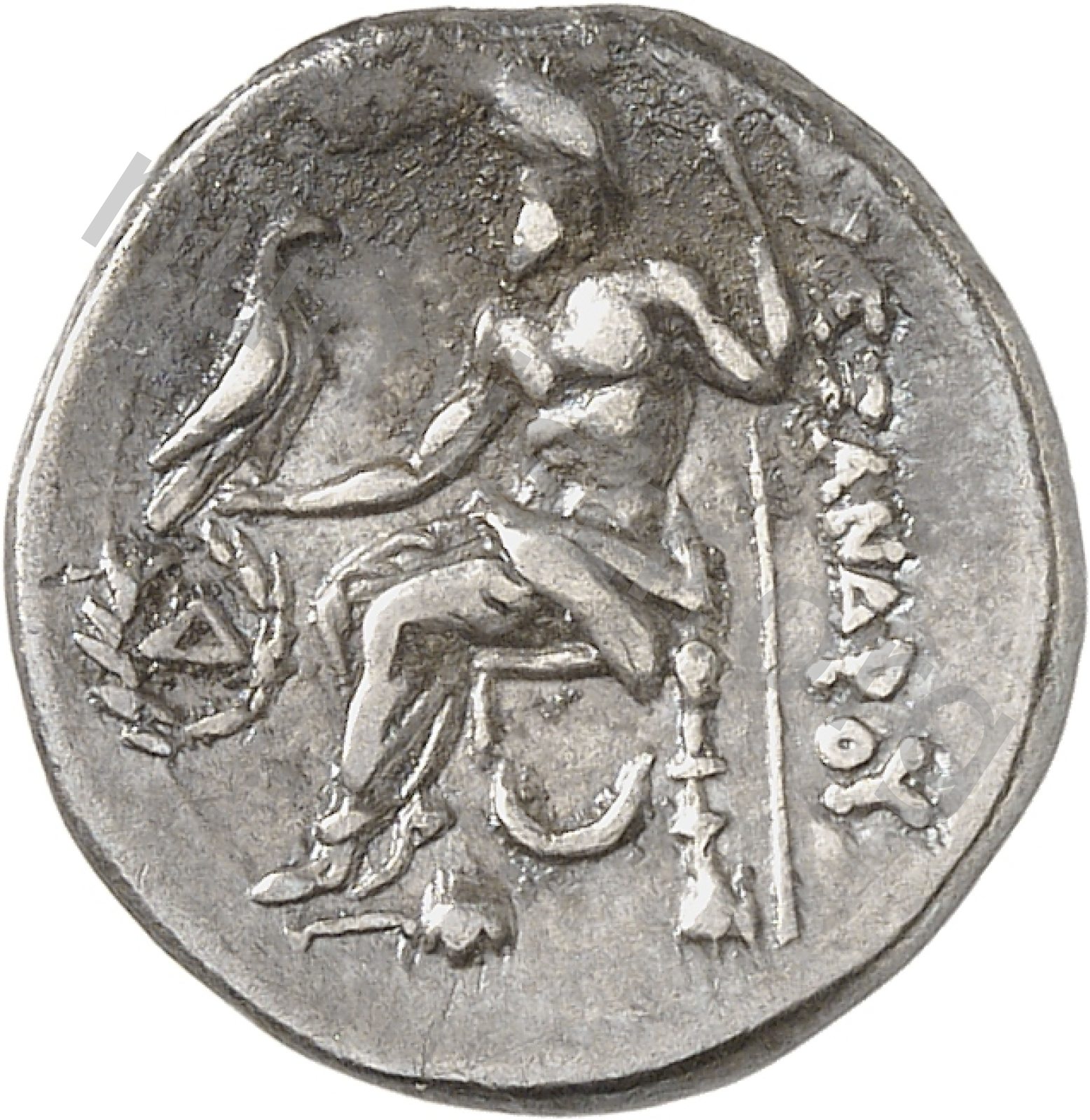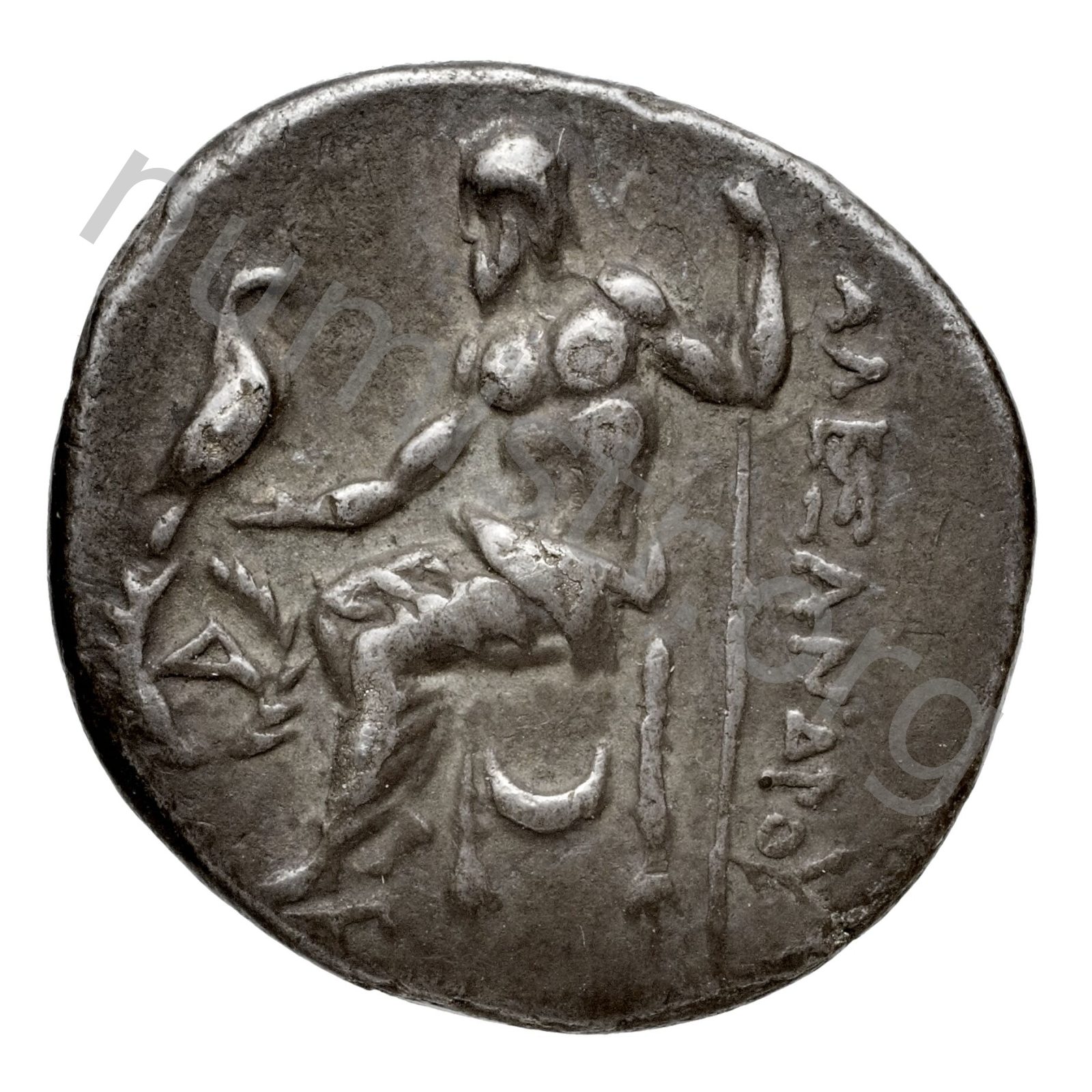 Zeus tabure-tahtta oturuyor sol elinde kartal sağ elinde asa var.