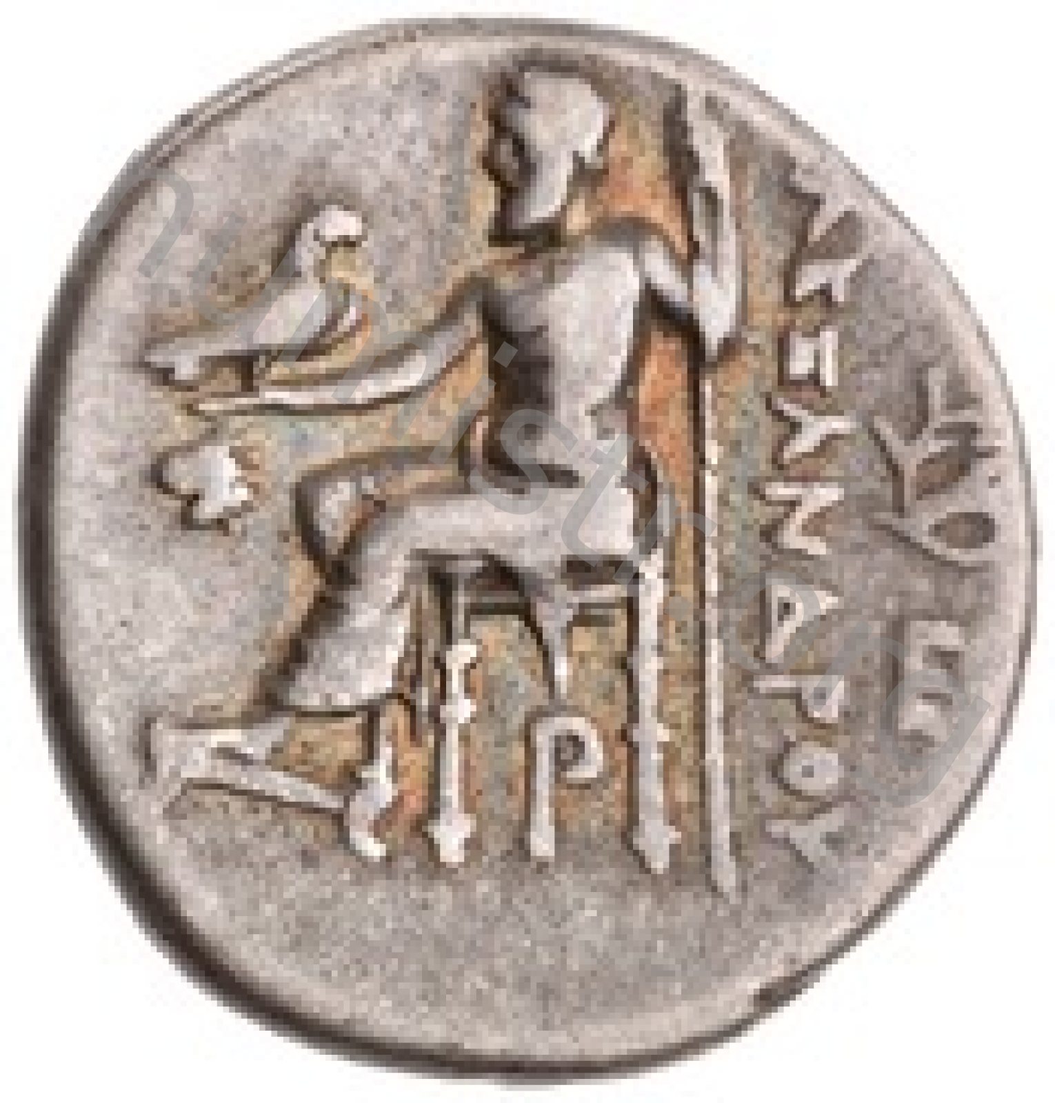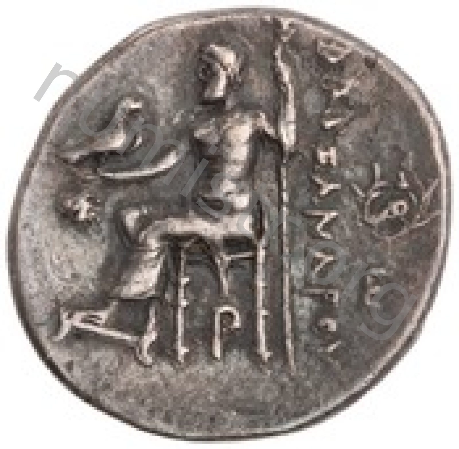 Zeus tabure-tahtta oturuyor sol elinde kartal sağ elinde asa var.