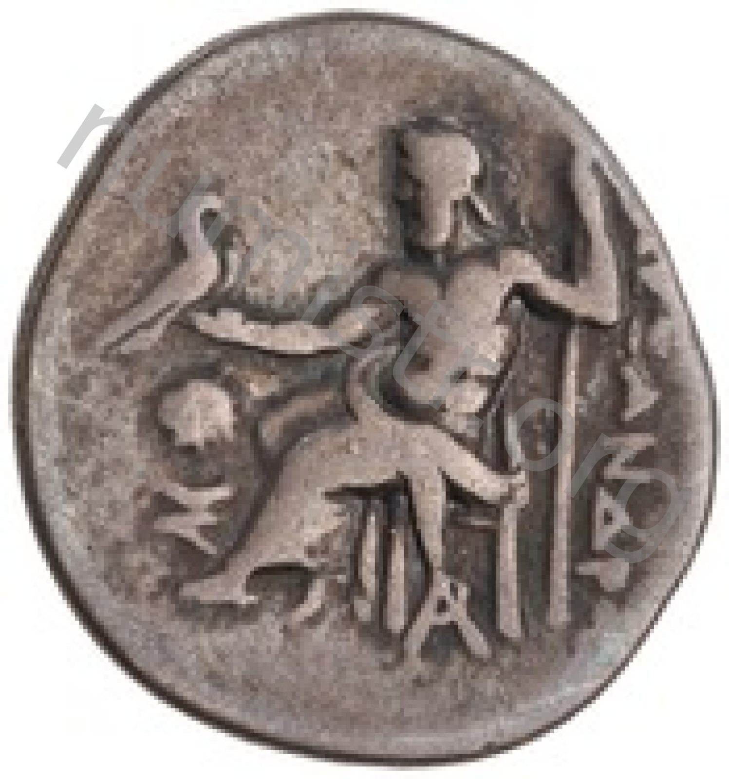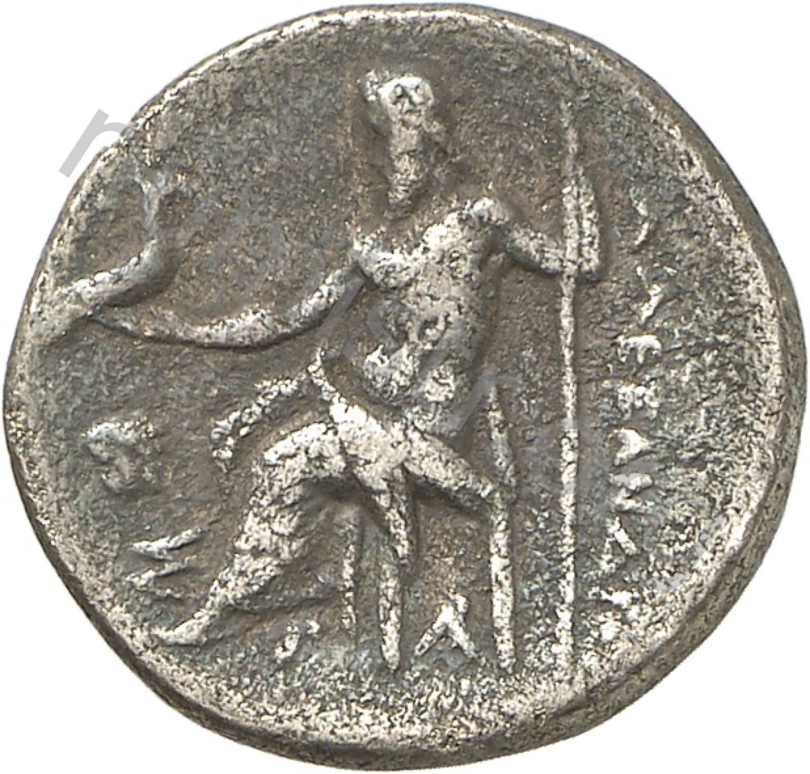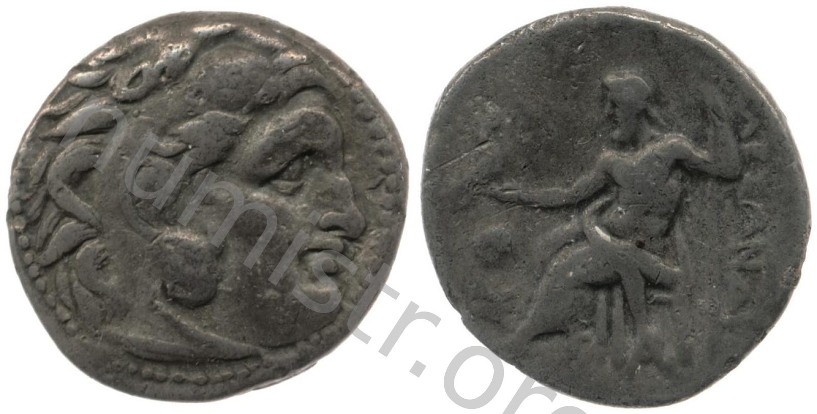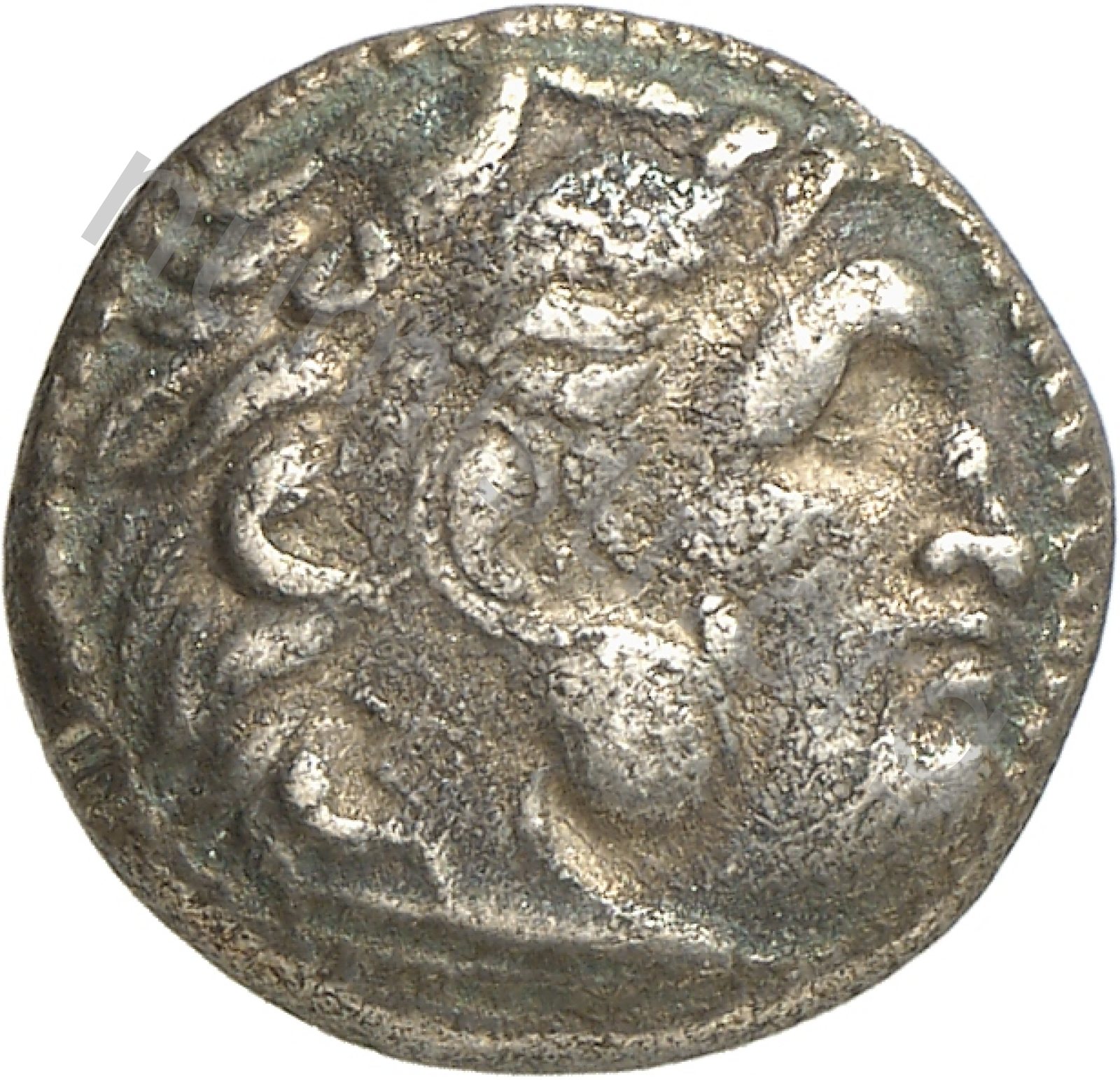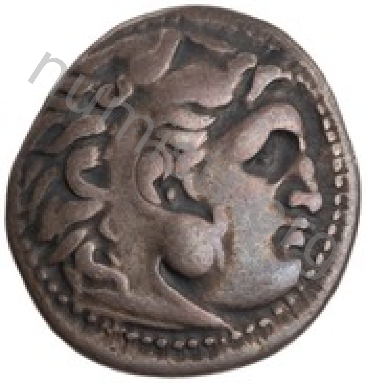 Head of beardless Heracles right wearing lion skin headdress -[en]