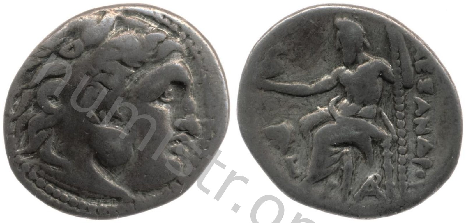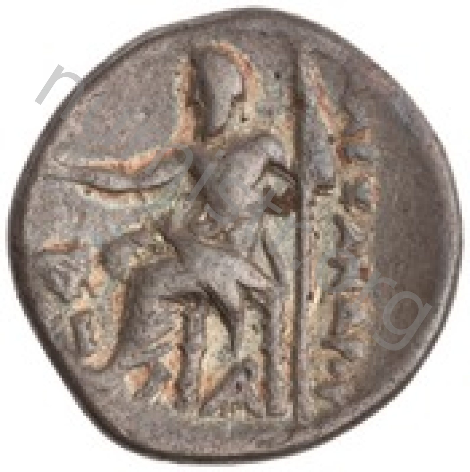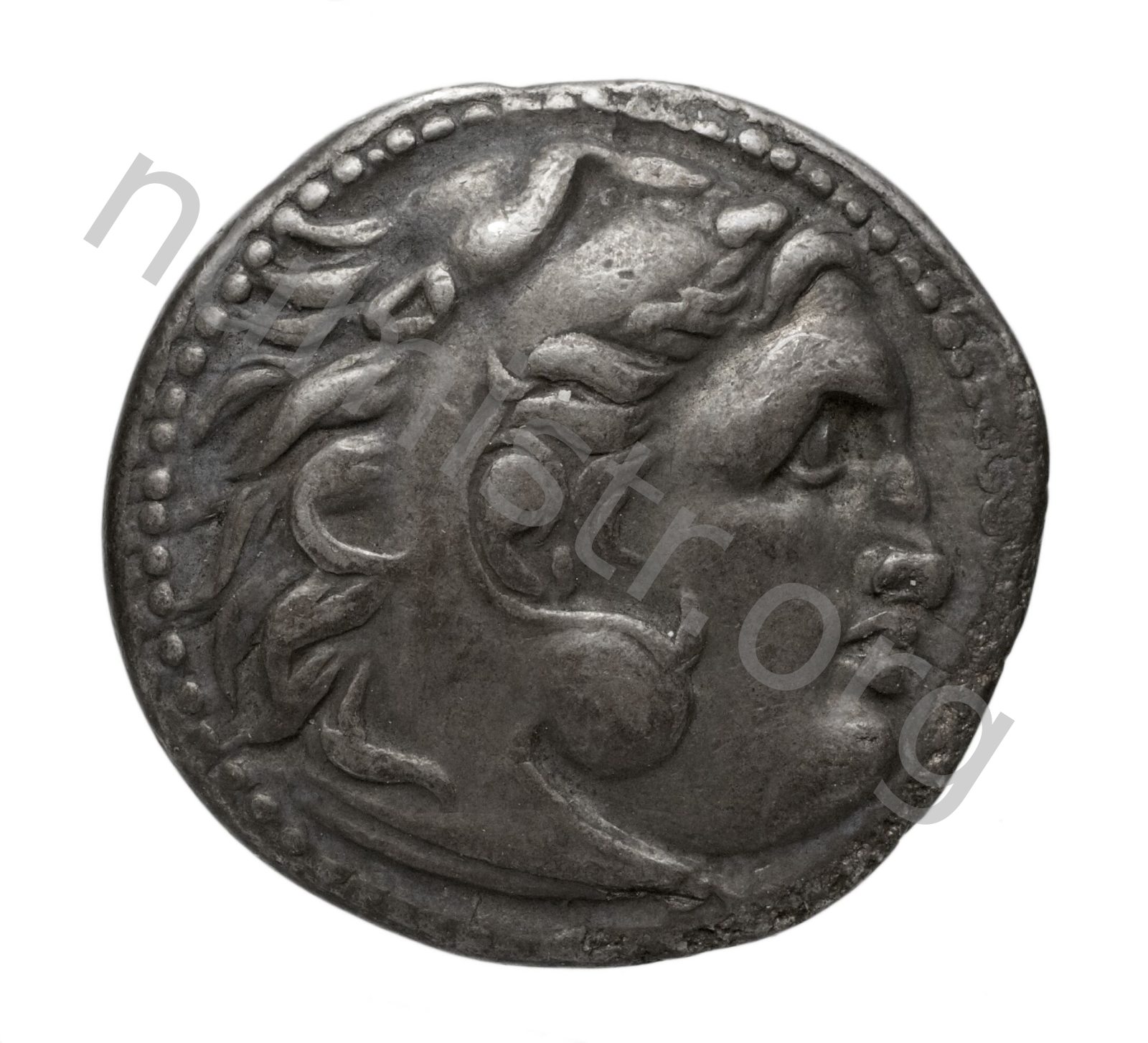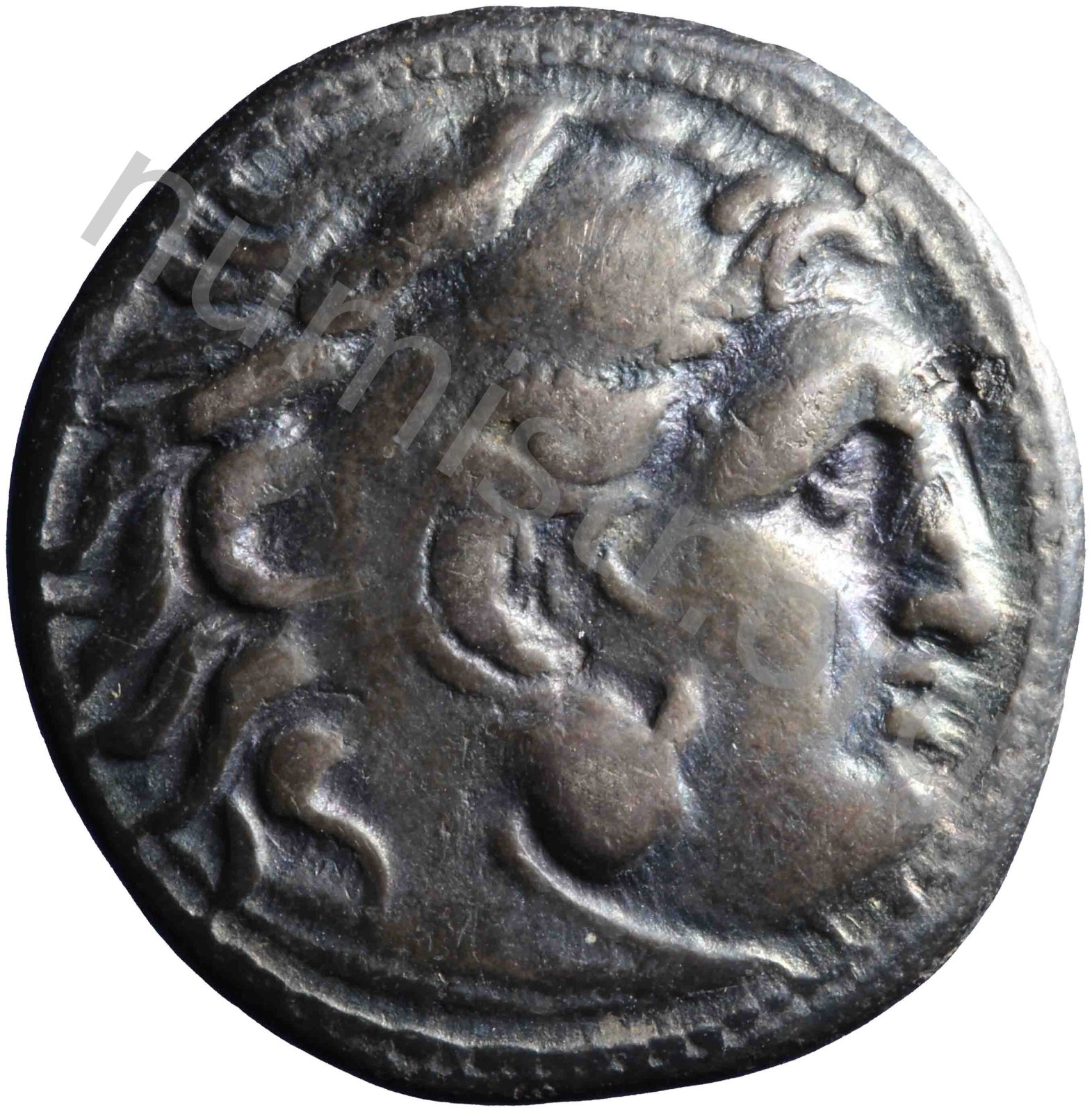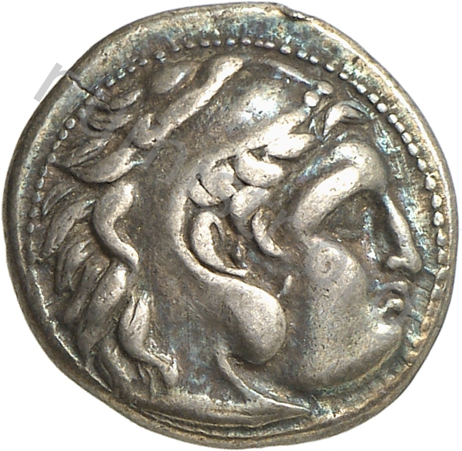 Head of beardless Heracles right wearing lion skin headdress -[en]