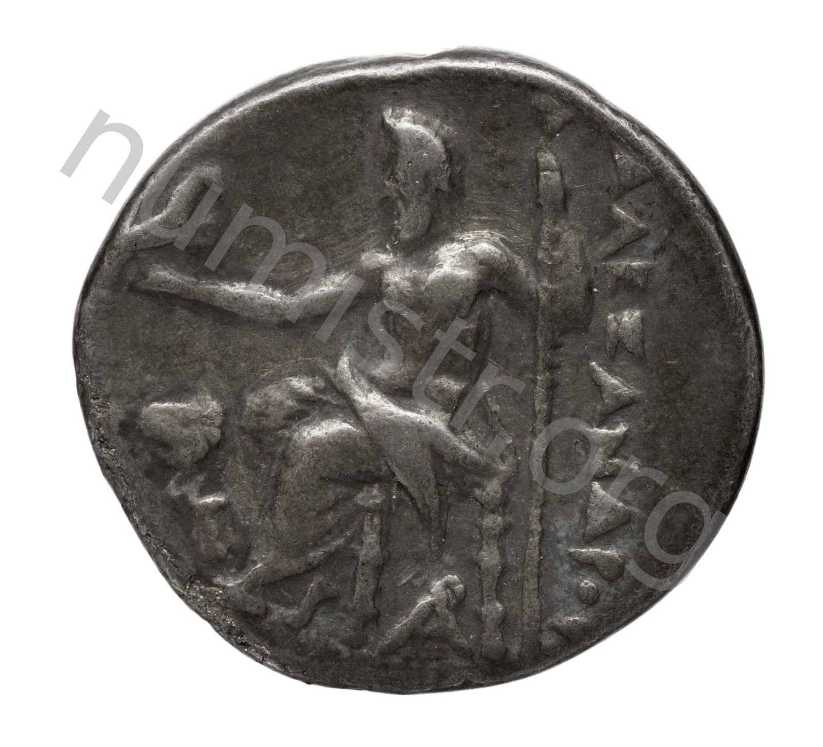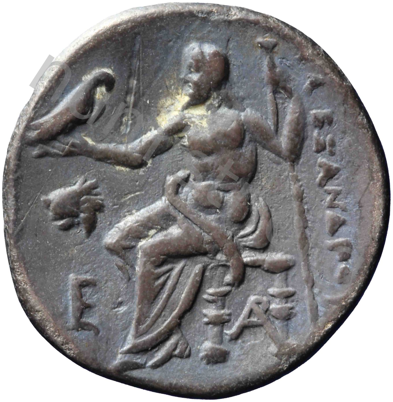 Zeus tabure-tahtta oturuyor sol elinde kartal sağ elinde asa var