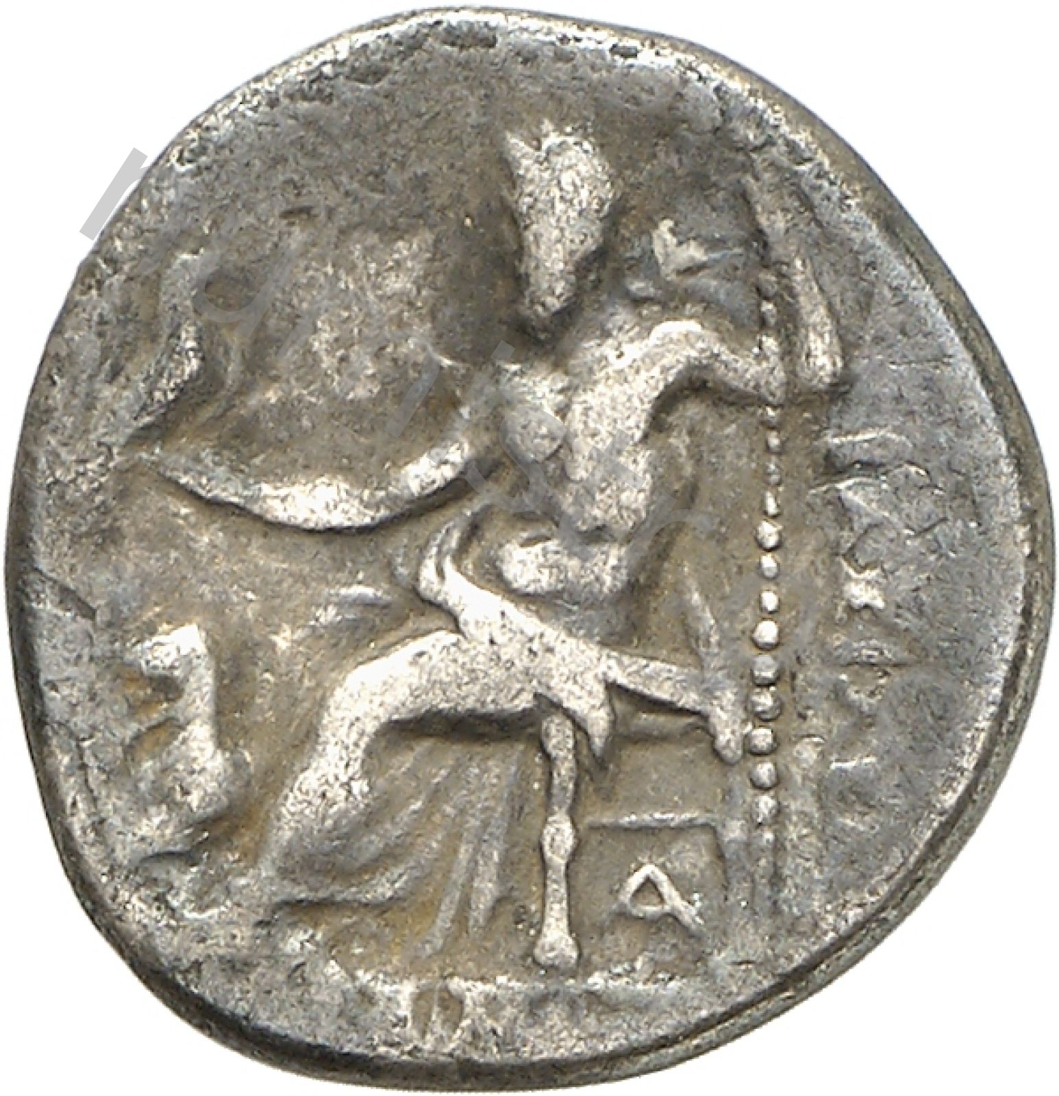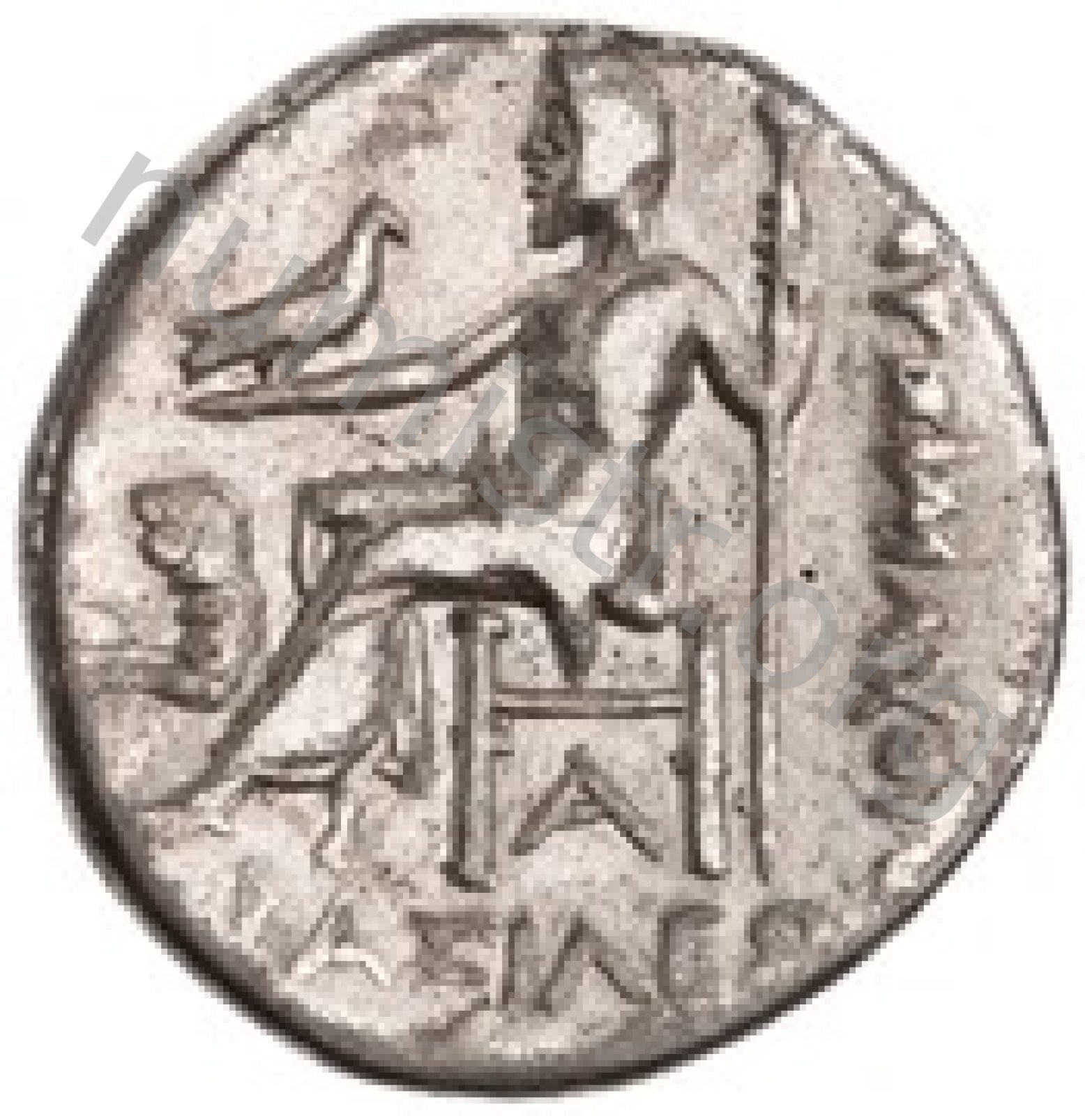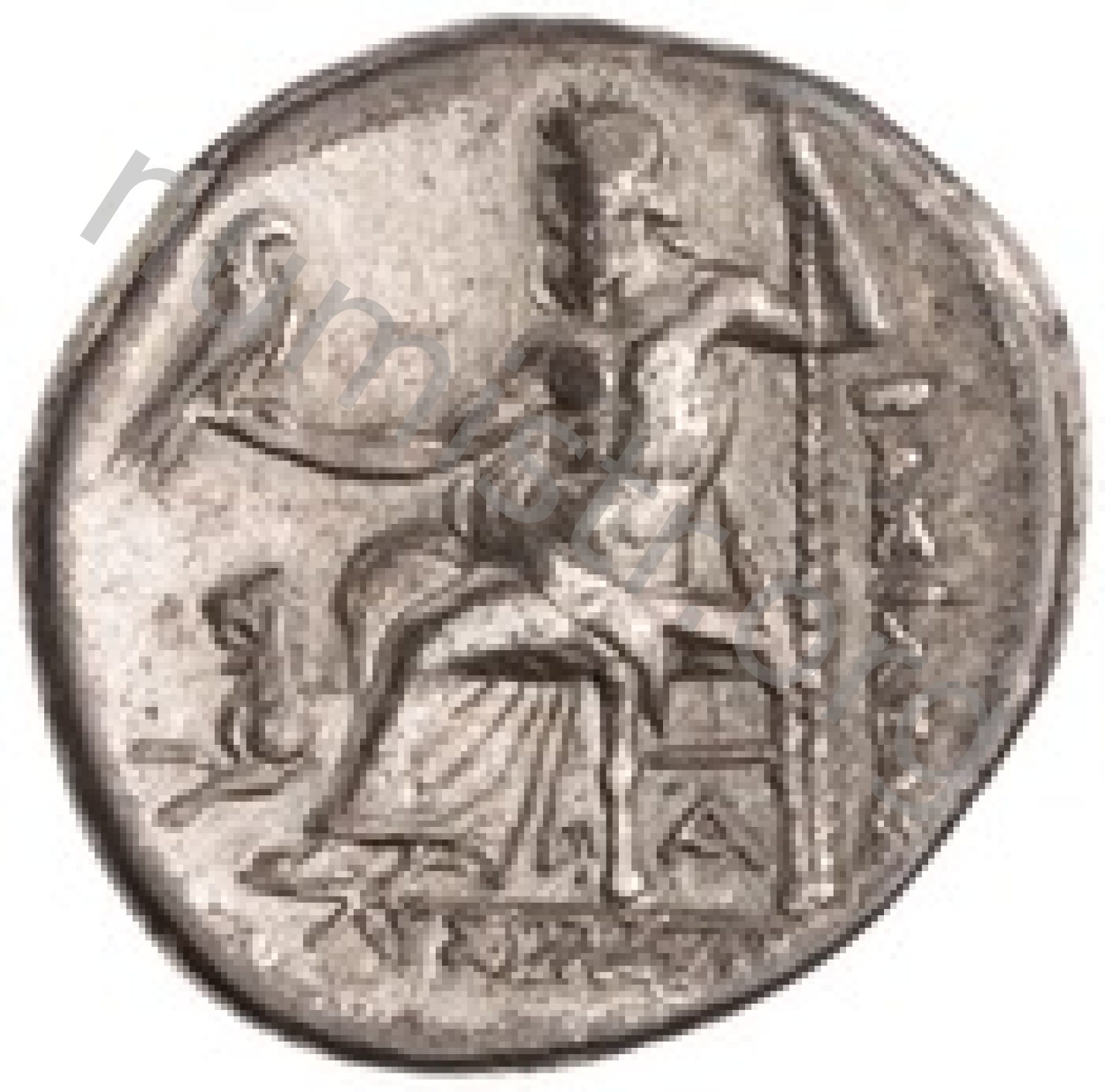 Zeus tabure-tahtta oturuyor sol elinde kartal sağ elinde asa var.
