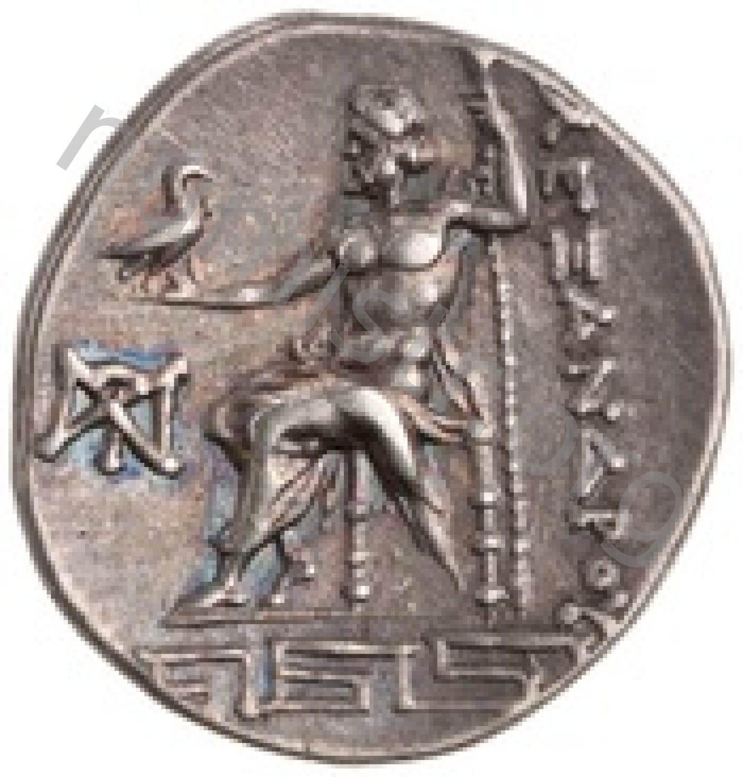 Zeus tabure-tahtta oturuyor sol elinde kartal sağ elinde asa var