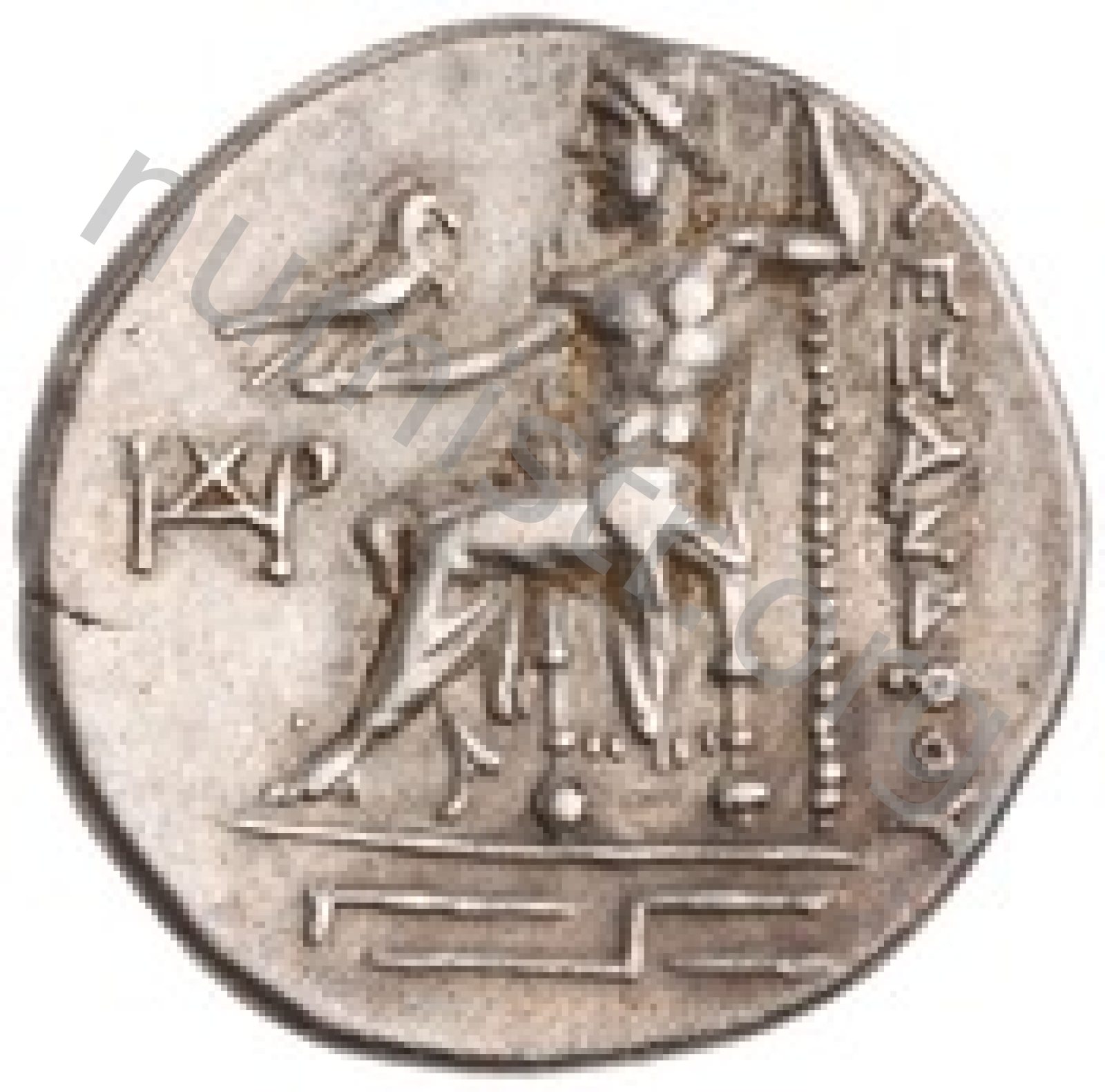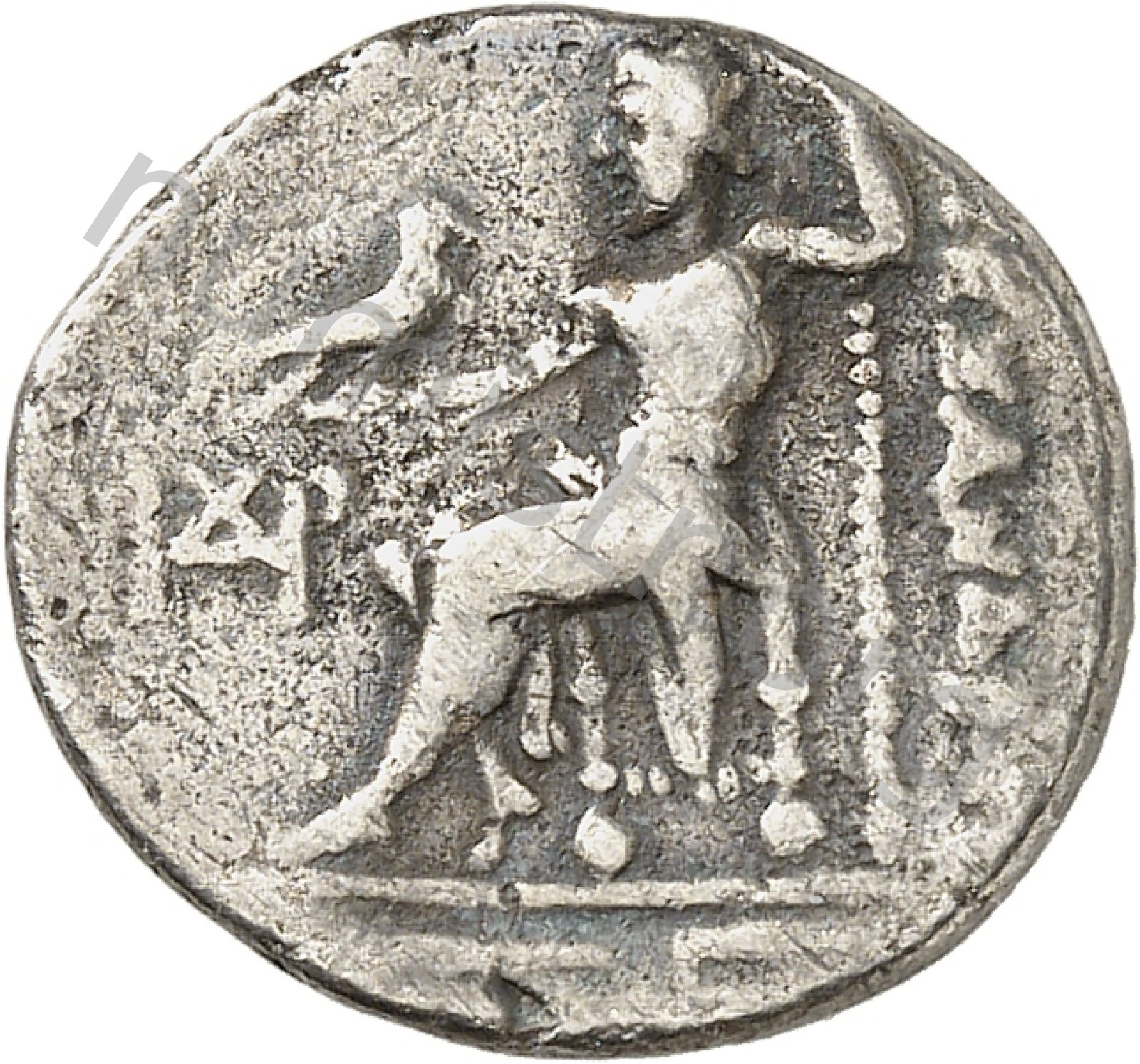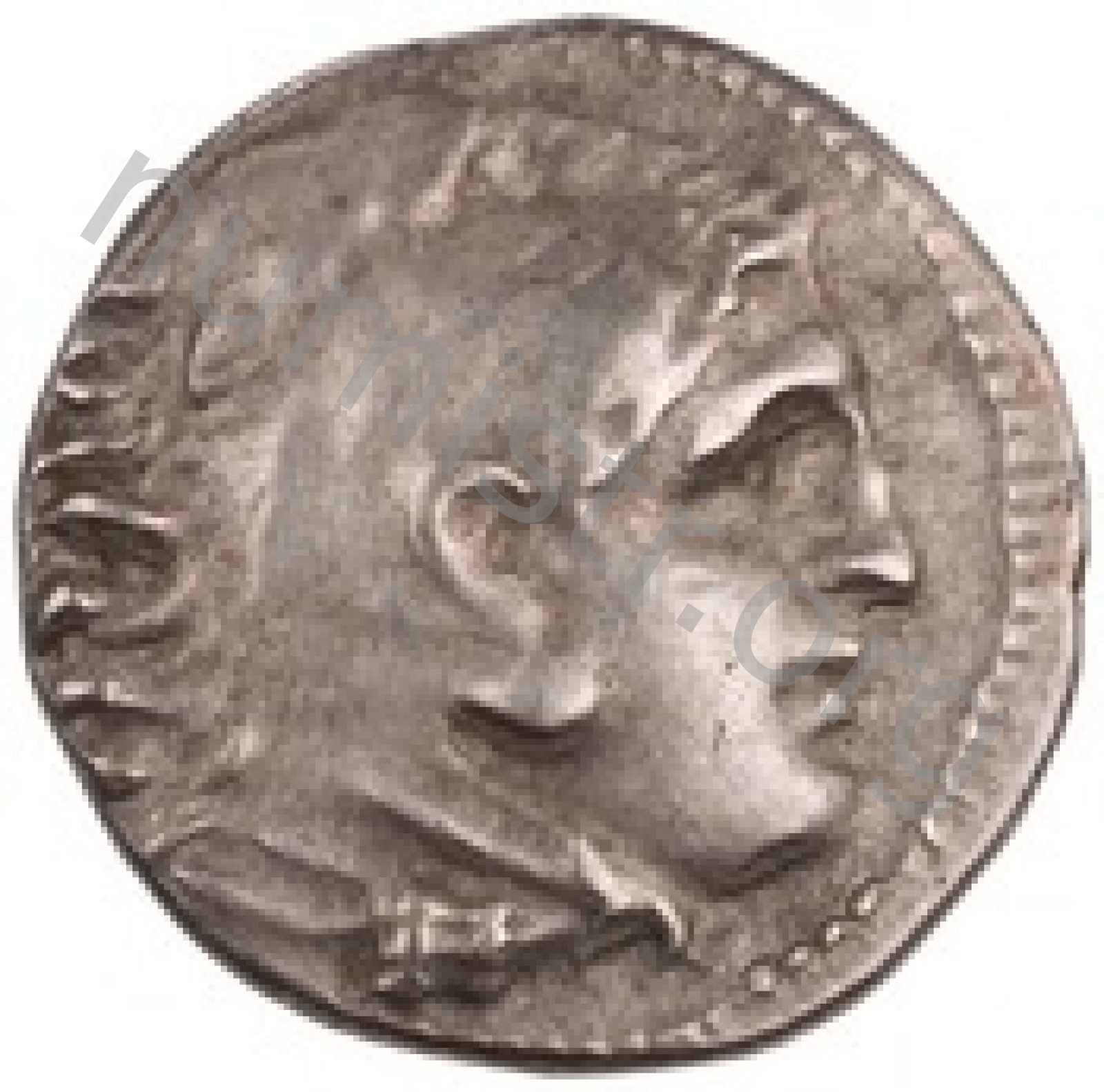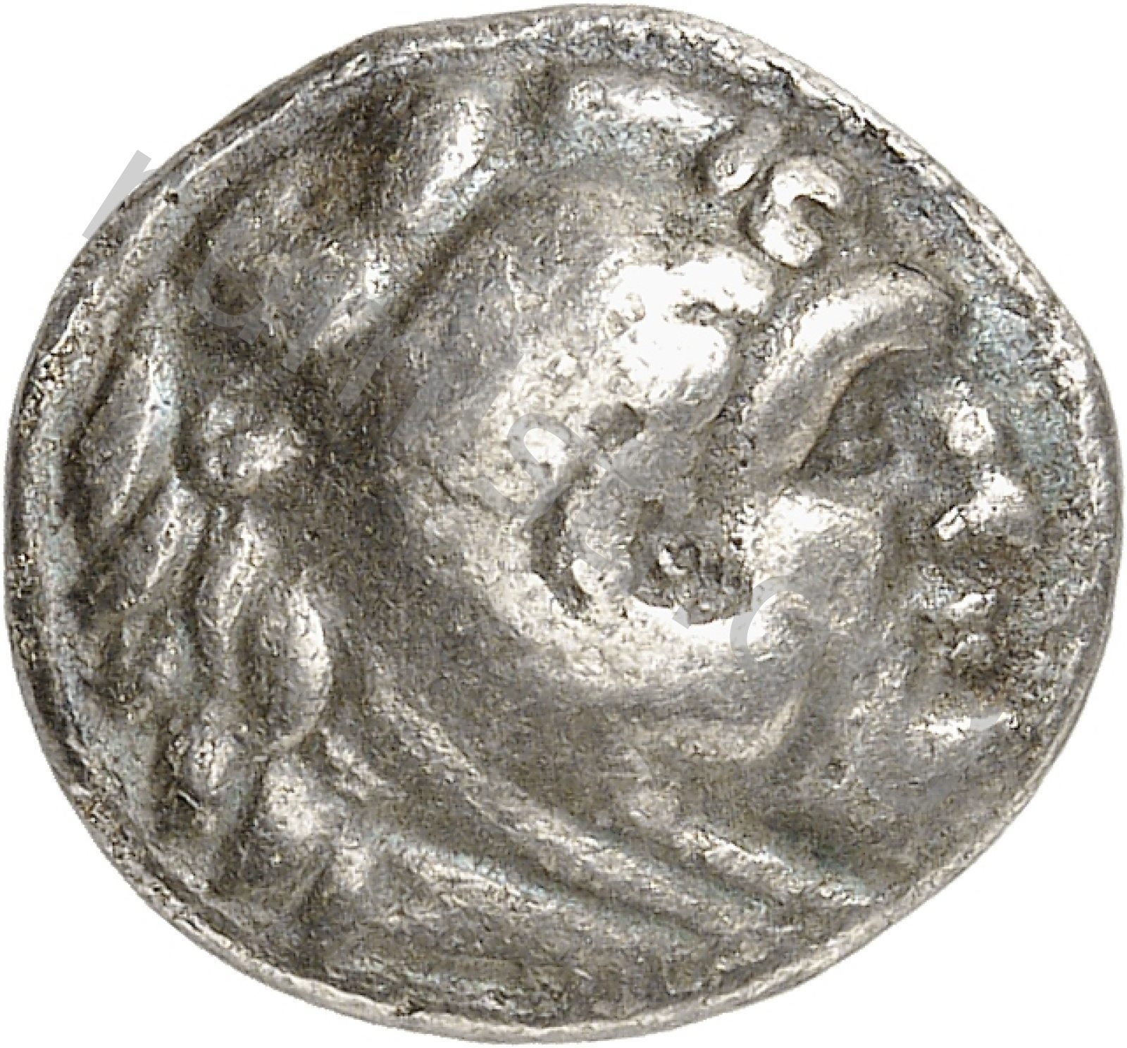 Head of beardless Heracles right wearing lion skin headdress -[en]