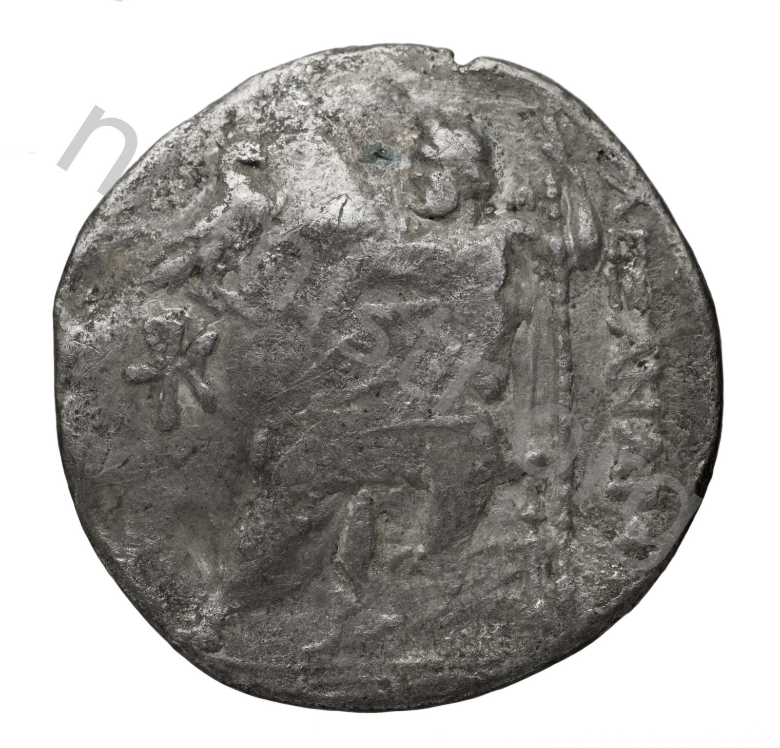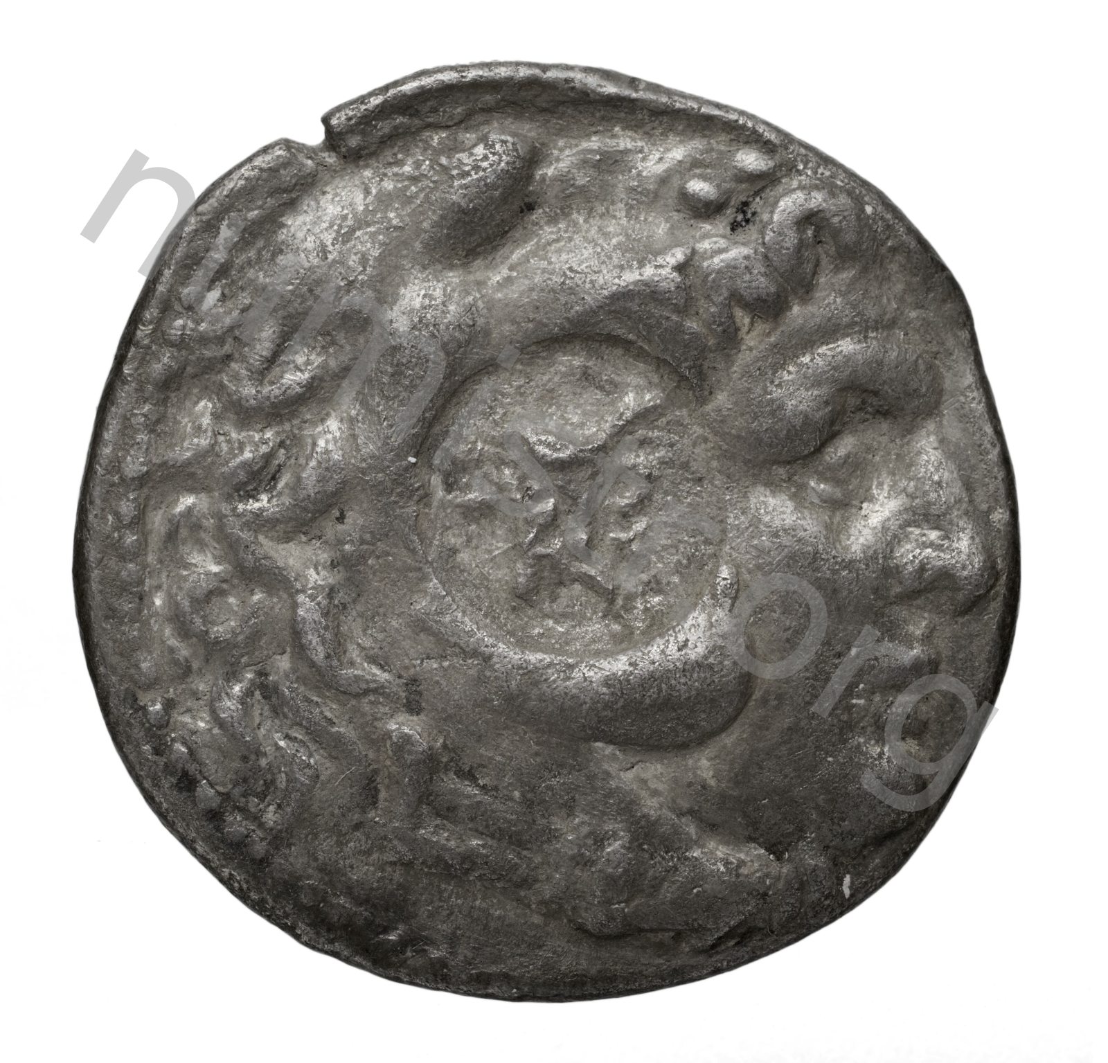 Head of beardless Heracles right wearing lion skin headdress -[en]