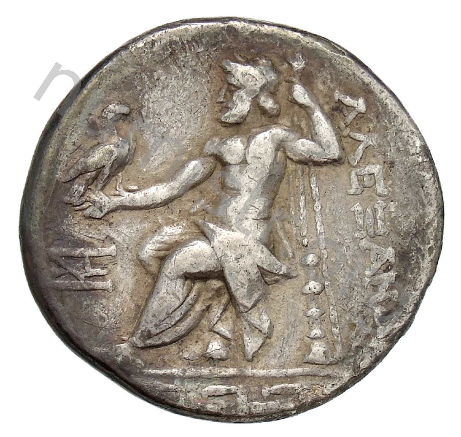 Zeus tabure-tahtta oturuyor sol elinde kartal sağ elinde asa var.